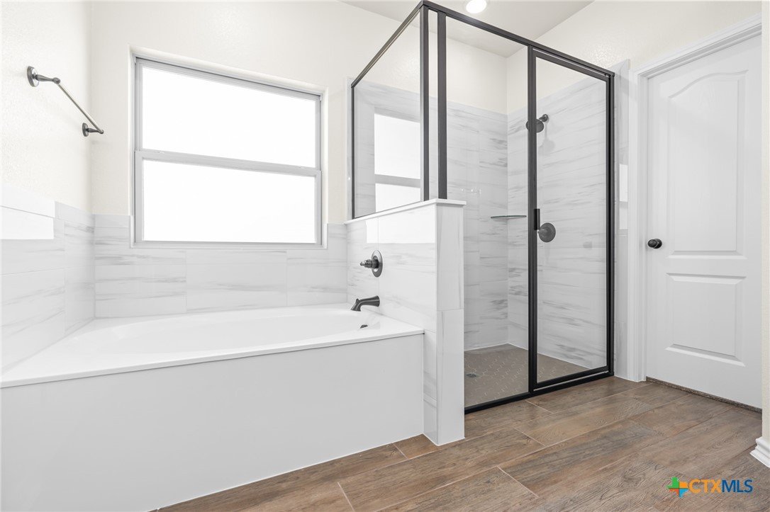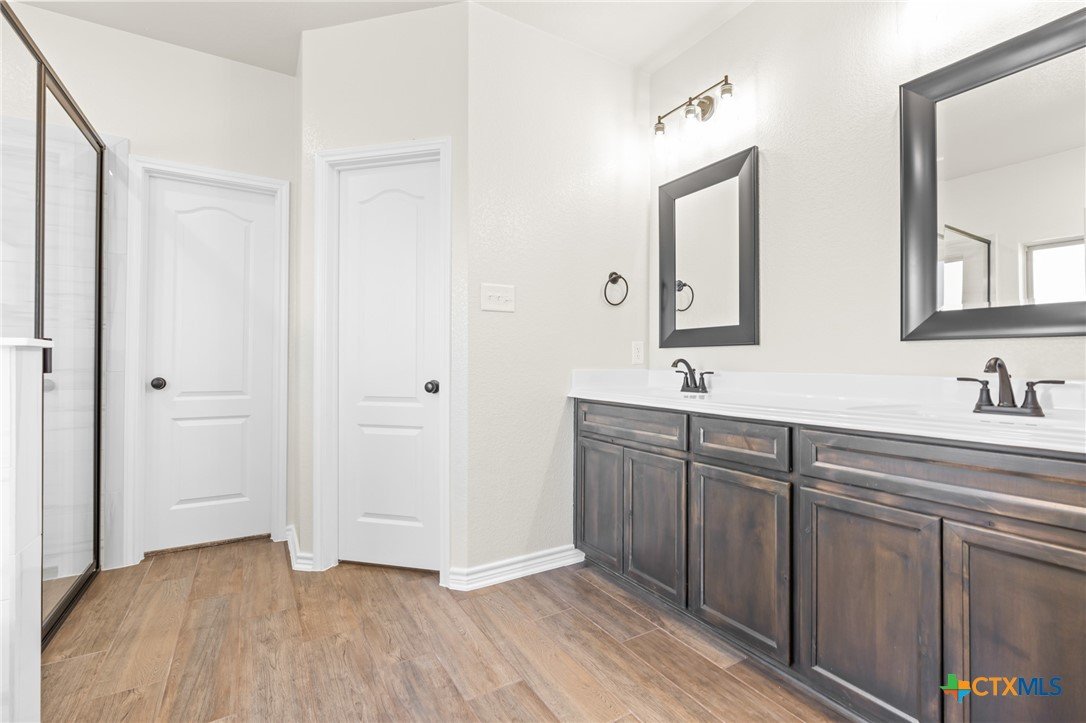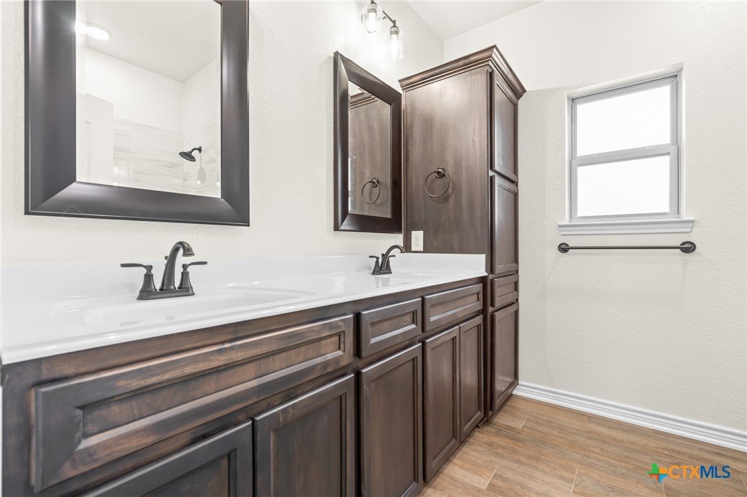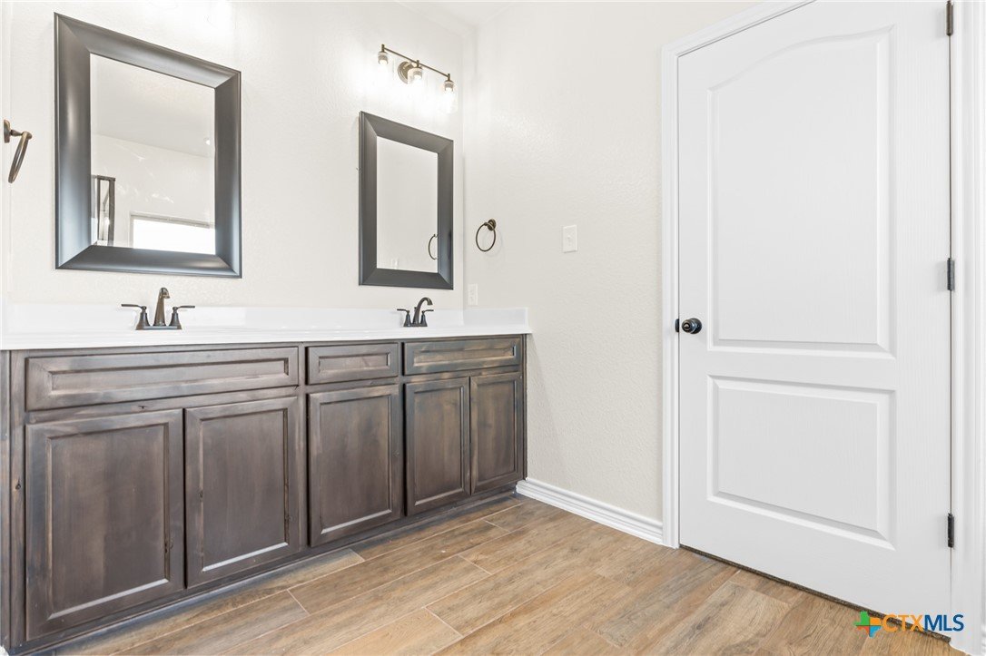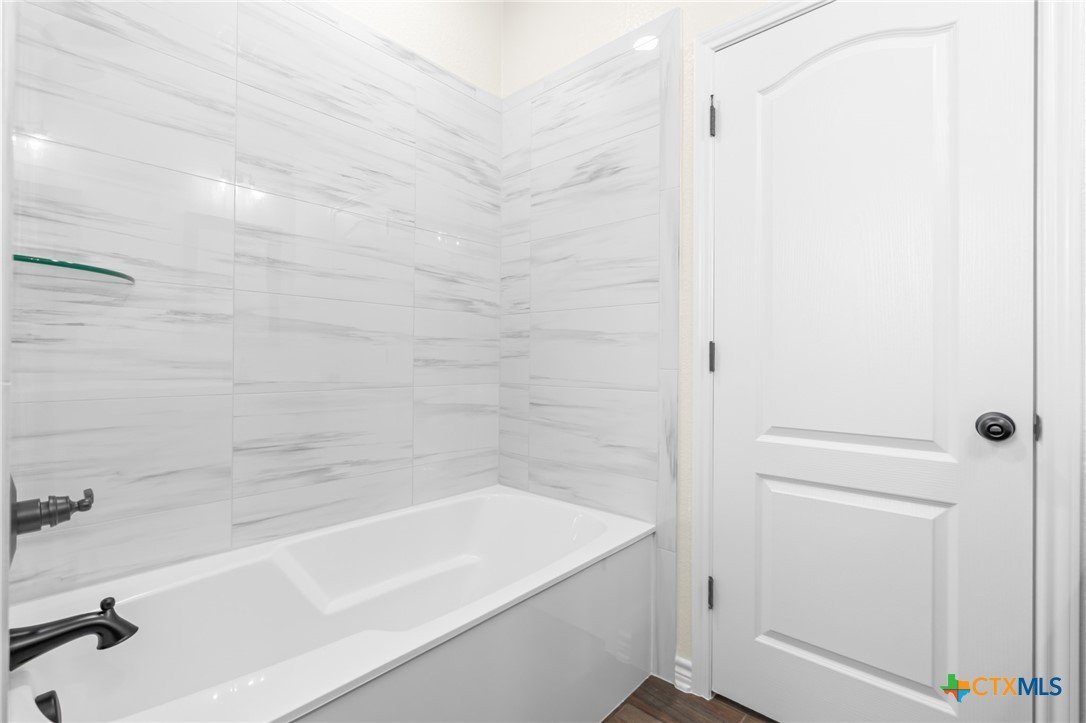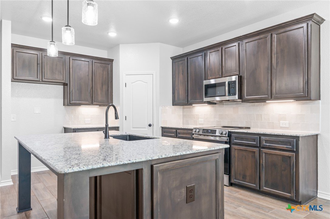 The Bellagio floorplan by Carothers Homes welcomes you home with a beautiful foyer, setting the tone for the charm that flows throughout. This spacious open layout is highlighted by a large living room with a fireplace and beautiful wooden beams. The kitchen features a large island that seamlessly connects the living area and breakfast nook, offering granite countertops, a tiled backsplash, and a walk-in pantry. The master bedroom is complemented by a generously sized private bathroom, featuring a walk-in closet, garden tub, walk-in shower, and dual vanities. The mother-in-law suite includes a private bath with a walk-in shower and a closet. Two additional bedrooms are generously sized and provide ample closet space. Additional features of this home, including a covered patio, privacy fence, front and back sod, and a sprinkler system, are standard with every Carothers Home.