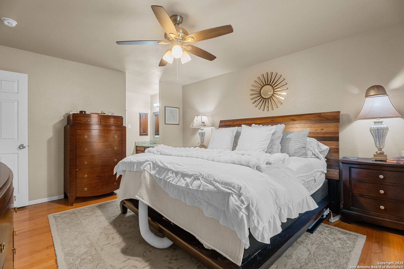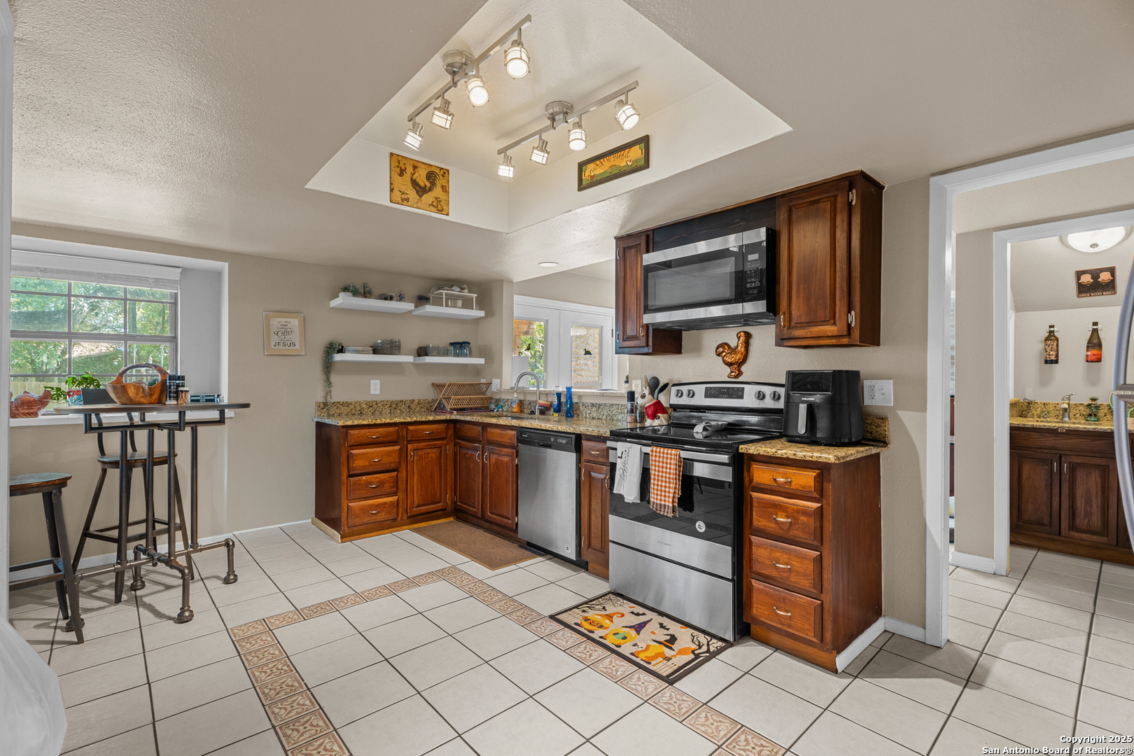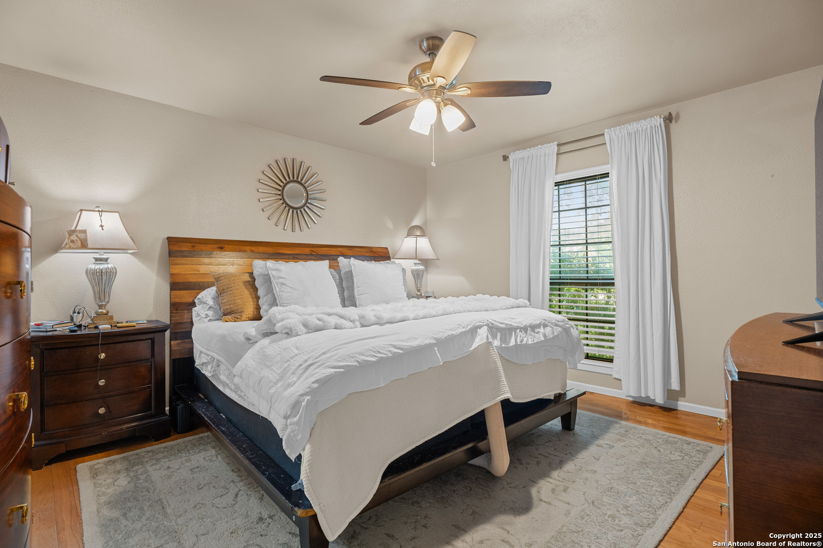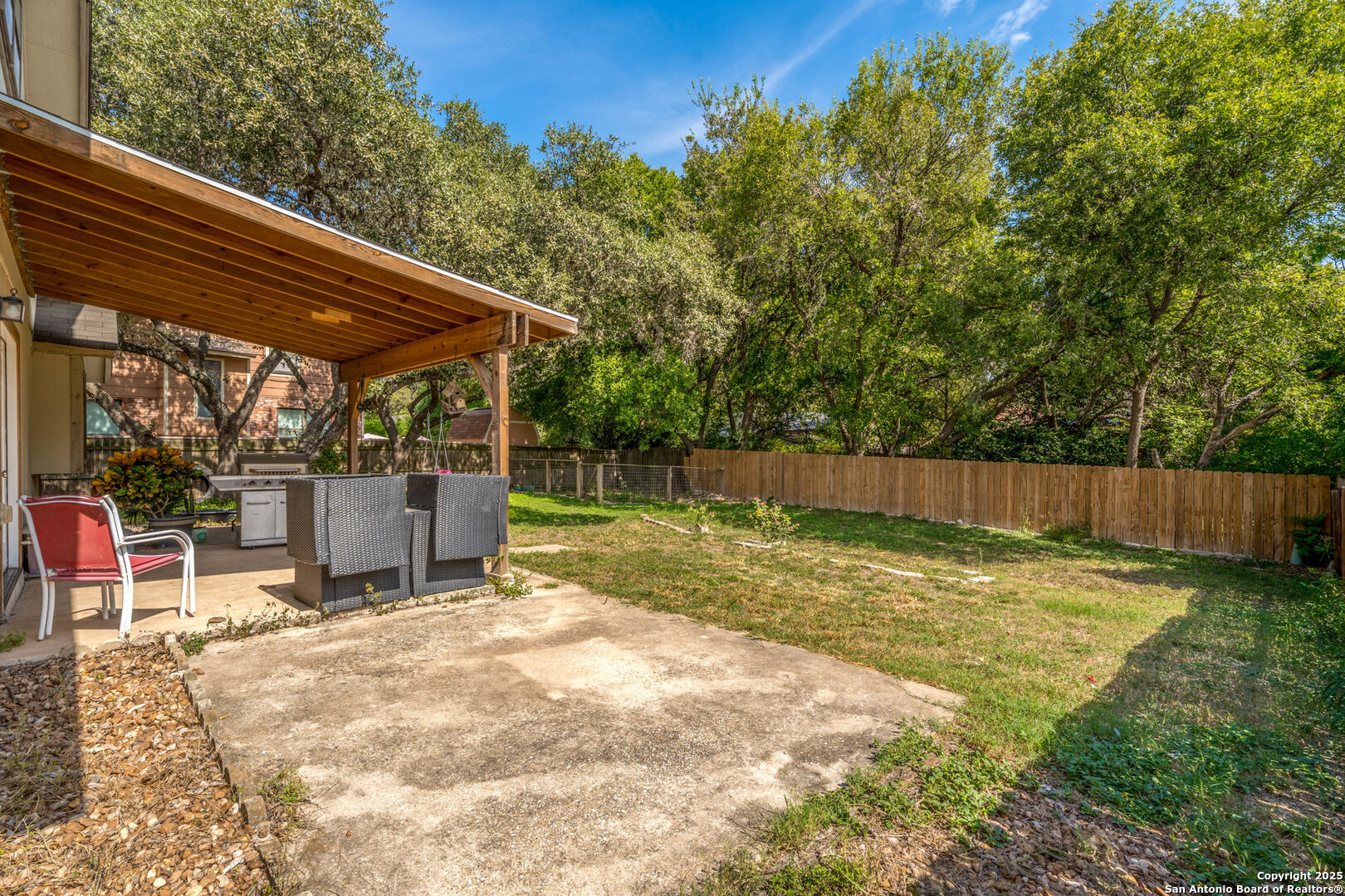 Welcome to 8510 Timberbriar in San Antonio, TX! Tucked beneath mature Texas oaks, this beautifully maintained home blends charm, comfort, and convenience. Inside, you'll find real hardwood floors, a cozy wood-burning fireplace, a wet bar, and a breakfast bar that opens to the main living areas, perfect for gatherings big or small. The oversized two-car garage adds extra space for storage, hobbies, or a workshop. Step out back and enjoy your own private retreat. With no neighbors directly behind, the covered patio overlooks a peaceful greenbelt, giving you privacy and a quiet place to relax or entertain. Located in a community full of amenities, residents can take advantage of the neighborhood pool, clubhouse, tennis courts, park, and playground. This is more than just a home-it's a lifestyle.