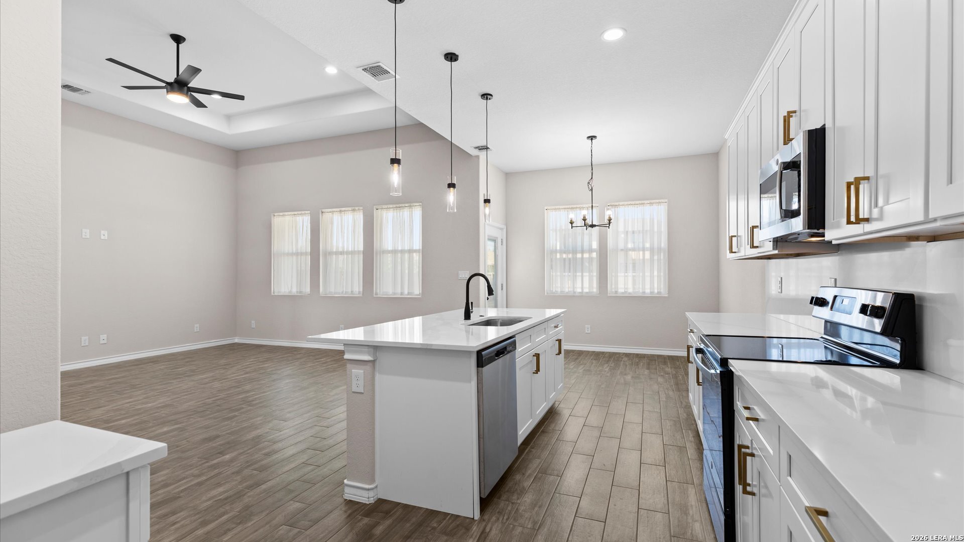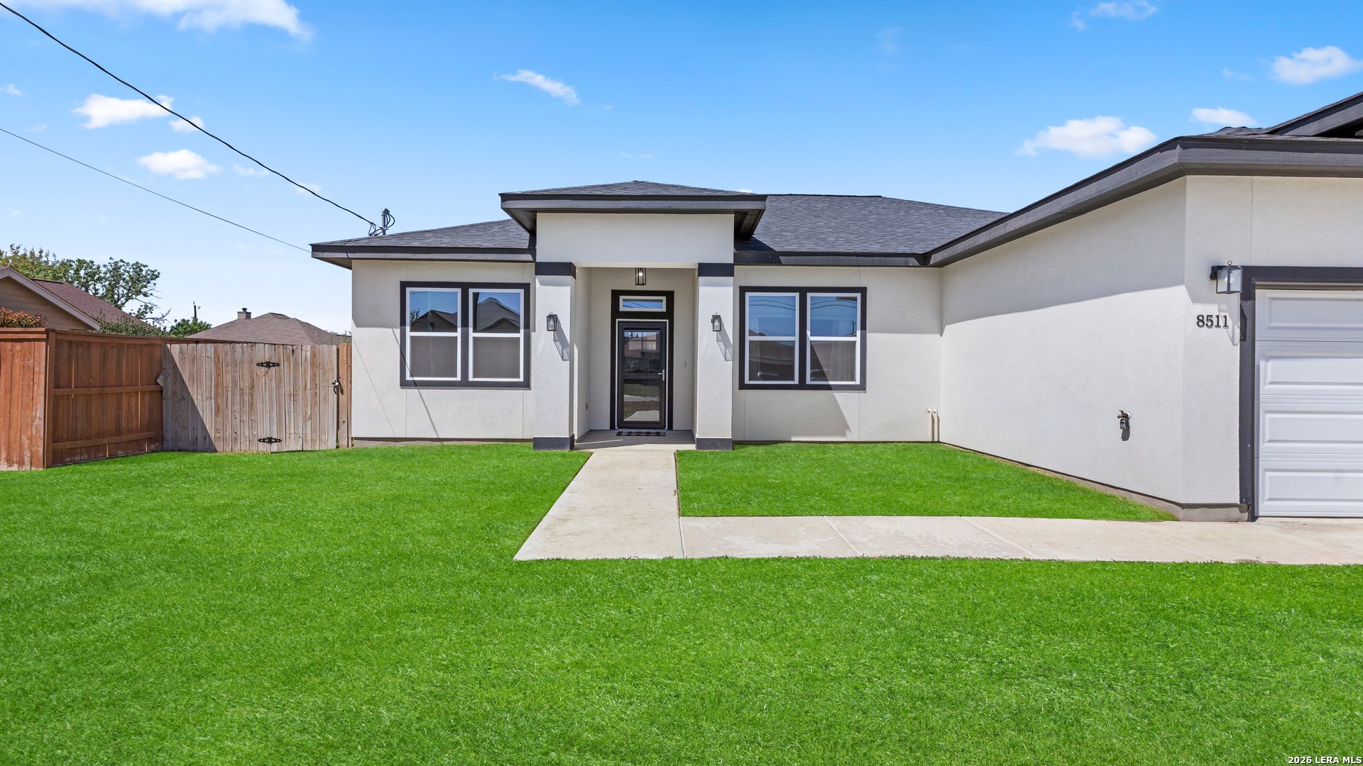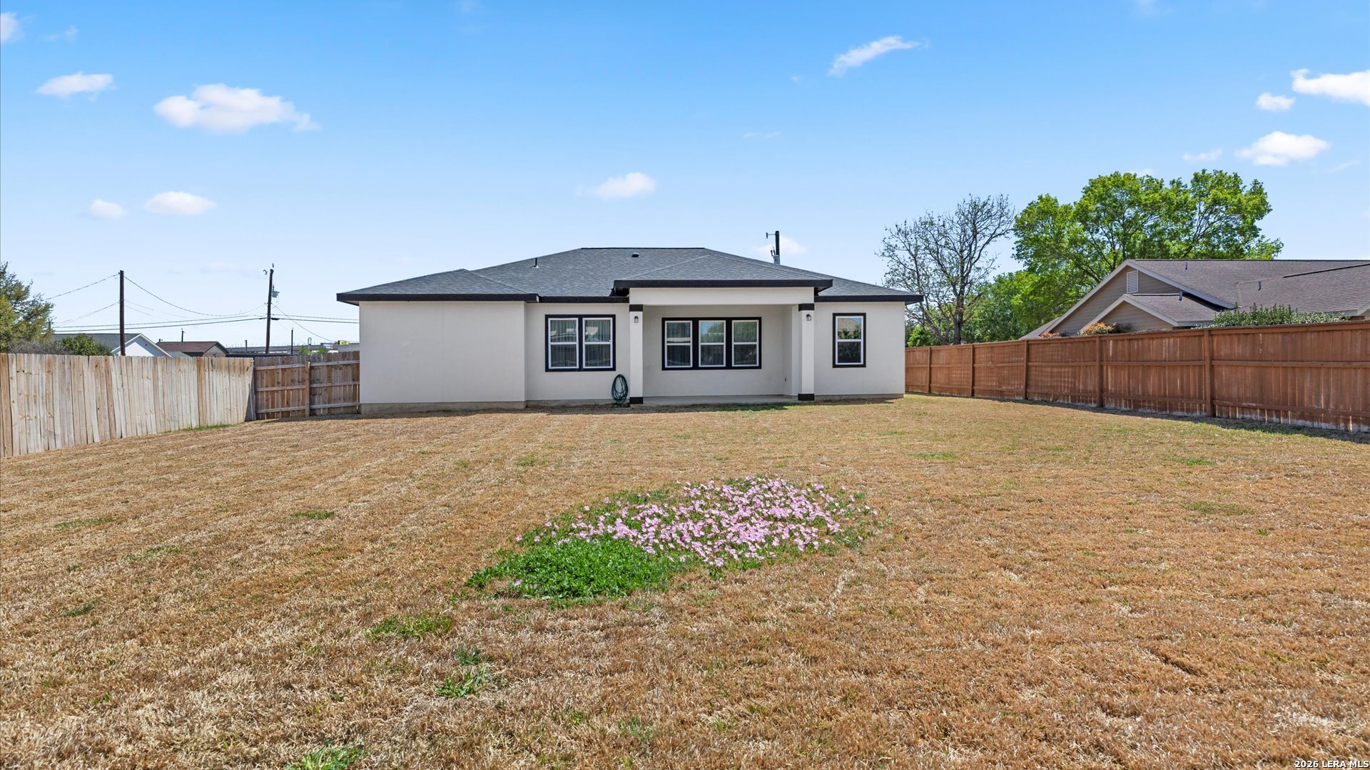 Welcome to modern living with space, style, and freedom-and NO HOA! Built in 2023, this stunning contemporary home offers almost 2000 square feet of thoughtfully designed living space with 4 bedrooms and 3 full bathrooms. Step inside to a light-filled, open layout featuring wood-look tile flooring and a bright, modern kitchen complete with white cabinetry, quartz countertops, and black & stainless steel appliances-perfect for both everyday living and entertaining. The oversized primary suite is a true retreat, showcasing a spa-like walk-in shower with a pebble floor and beautifully tiled walls. Enjoy outdoor living on the covered patio overlooking a spacious 0.25-acre lot. The versatile 4th bedroom makes an ideal home office or study. Located just minutes from shopping, dining, and entertainment at The Forum, with easy access to I-35, Loop 1604, and Randolph AFB, this home offers both convenience and comfort. Don't miss your chance-schedule your private showing today!