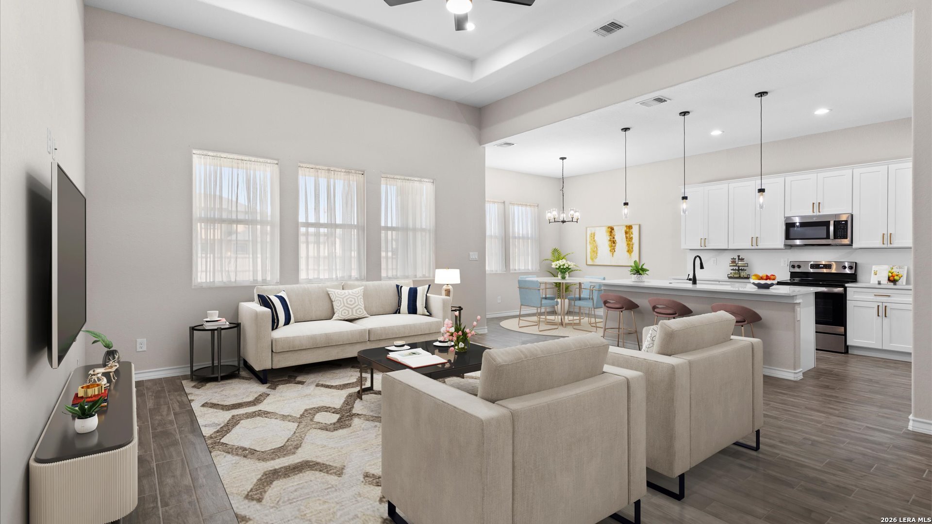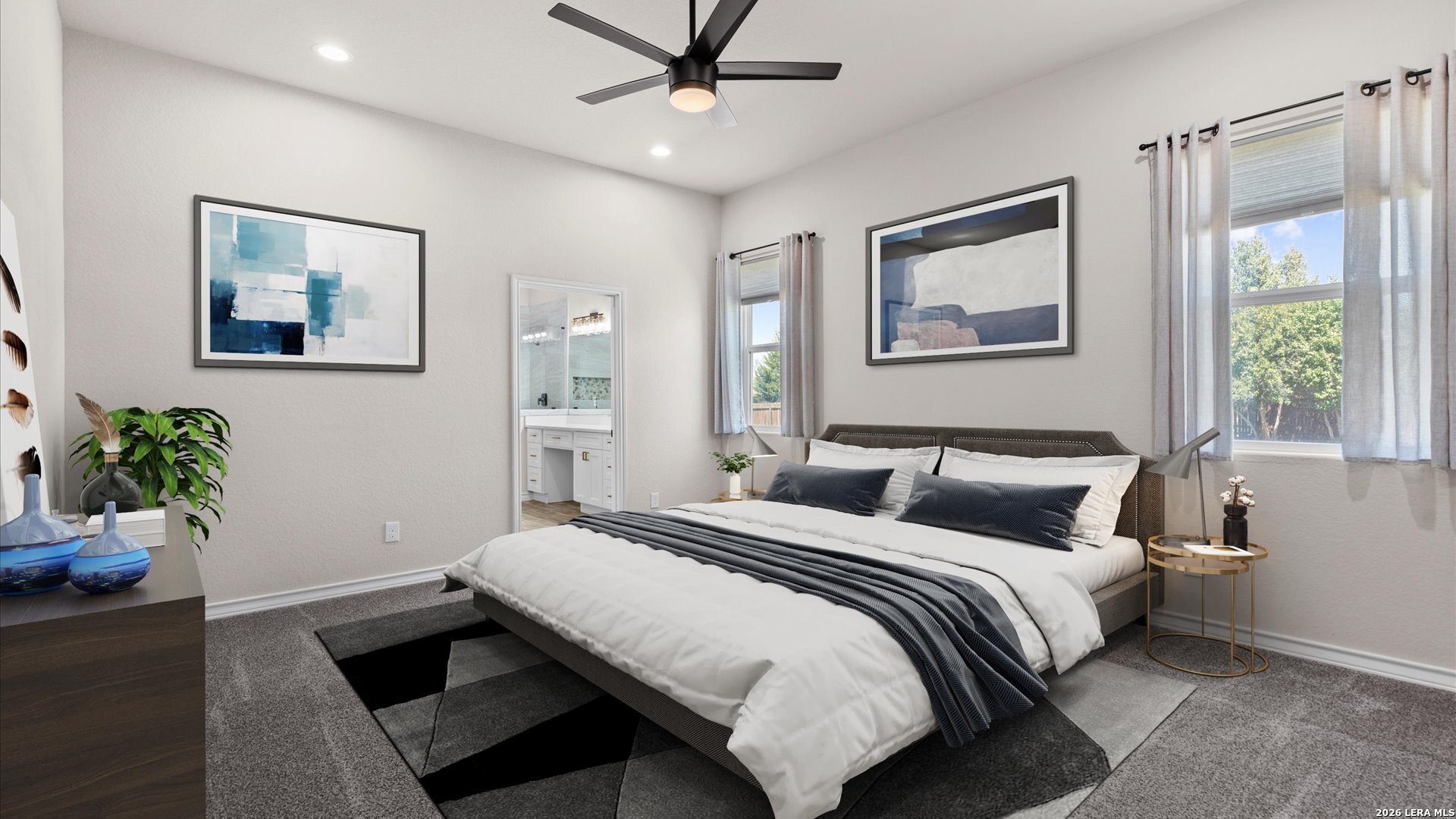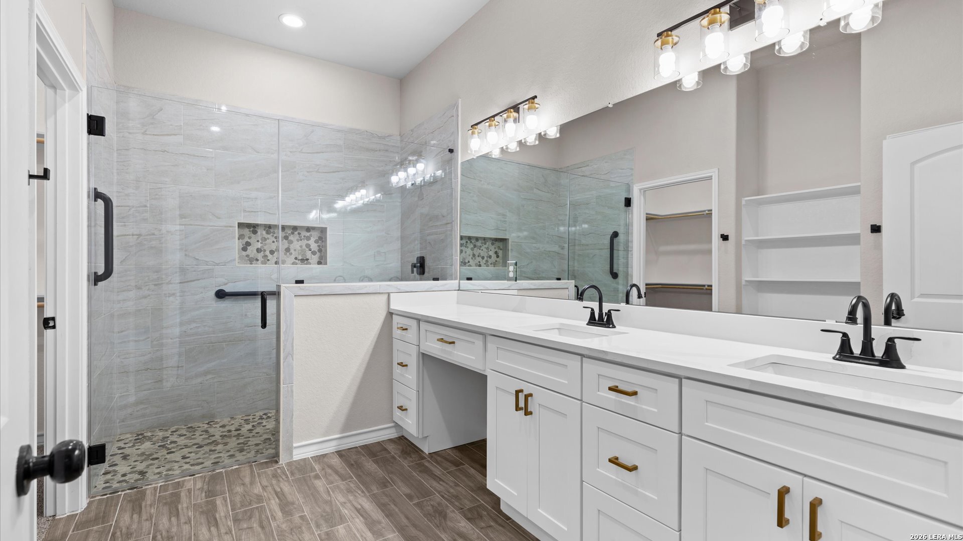 Welcome to modern living with space, style, and freedom-and NO HOA! Built in 2023, this stunning contemporary home offers almost 2000 square feet of thoughtfully designed living space with 4 bedrooms and 3 full bathrooms. Step inside to a light-filled, open layout featuring wood-look tile flooring and a bright, modern kitchen complete with white cabinetry, quartz countertops, and black & stainless steel appliances-perfect for both everyday living and entertaining. The oversized primary suite is a true retreat, showcasing a spa-like walk-in shower with a pebble floor and beautifully tiled walls. Enjoy outdoor living on the covered patio overlooking a spacious 0.25-acre lot. The versatile 4th bedroom makes an ideal home office or study. Located just minutes from shopping, dining, and entertainment at The Forum, with easy access to I-35, Loop 1604, and Randolph AFB, this home offers both convenience and comfort. Don't miss your chance-schedule your private showing today!