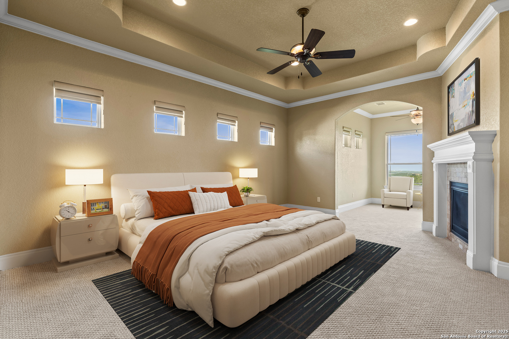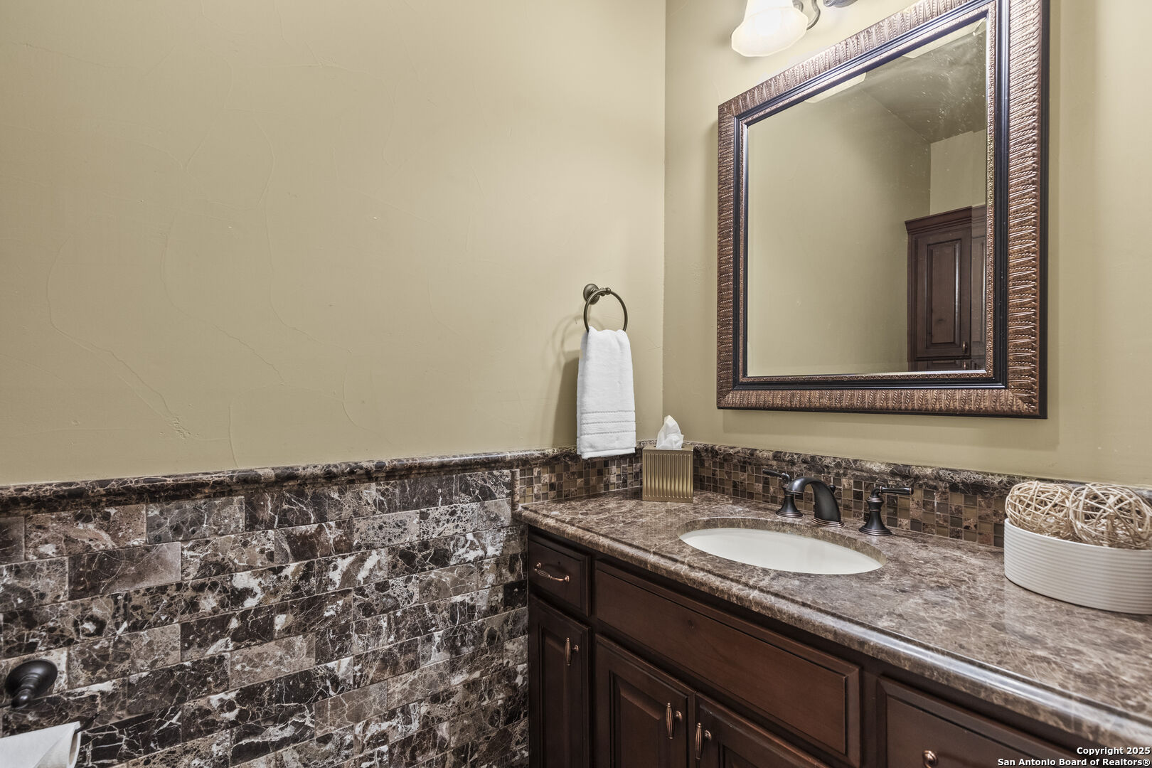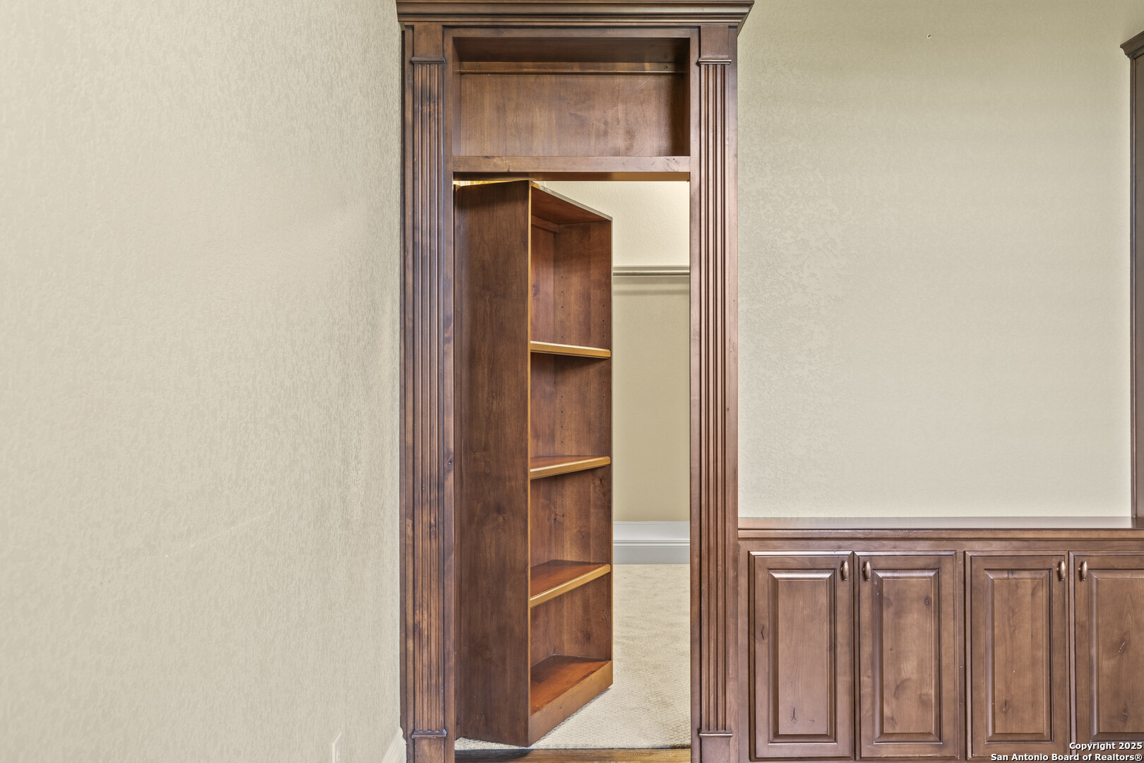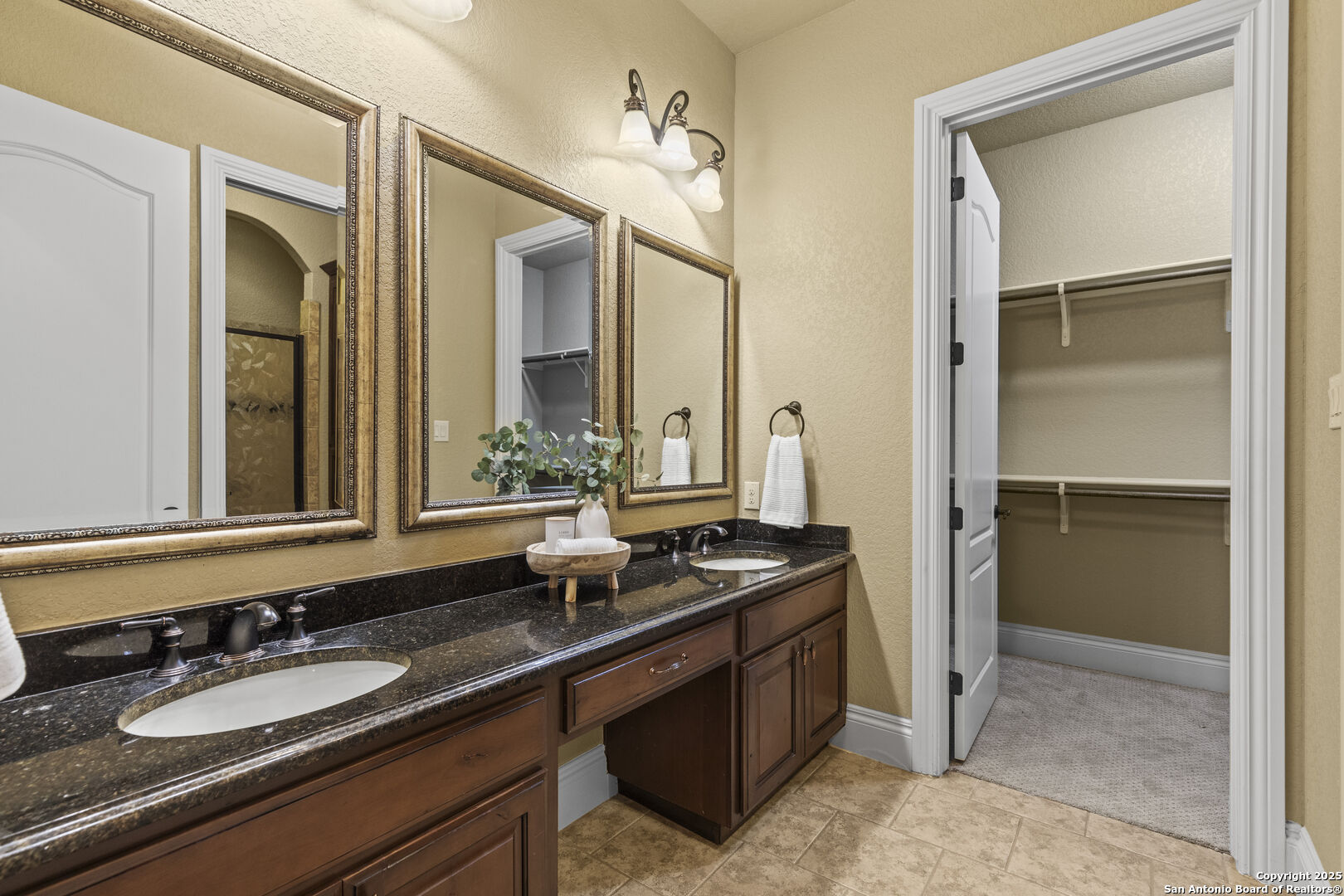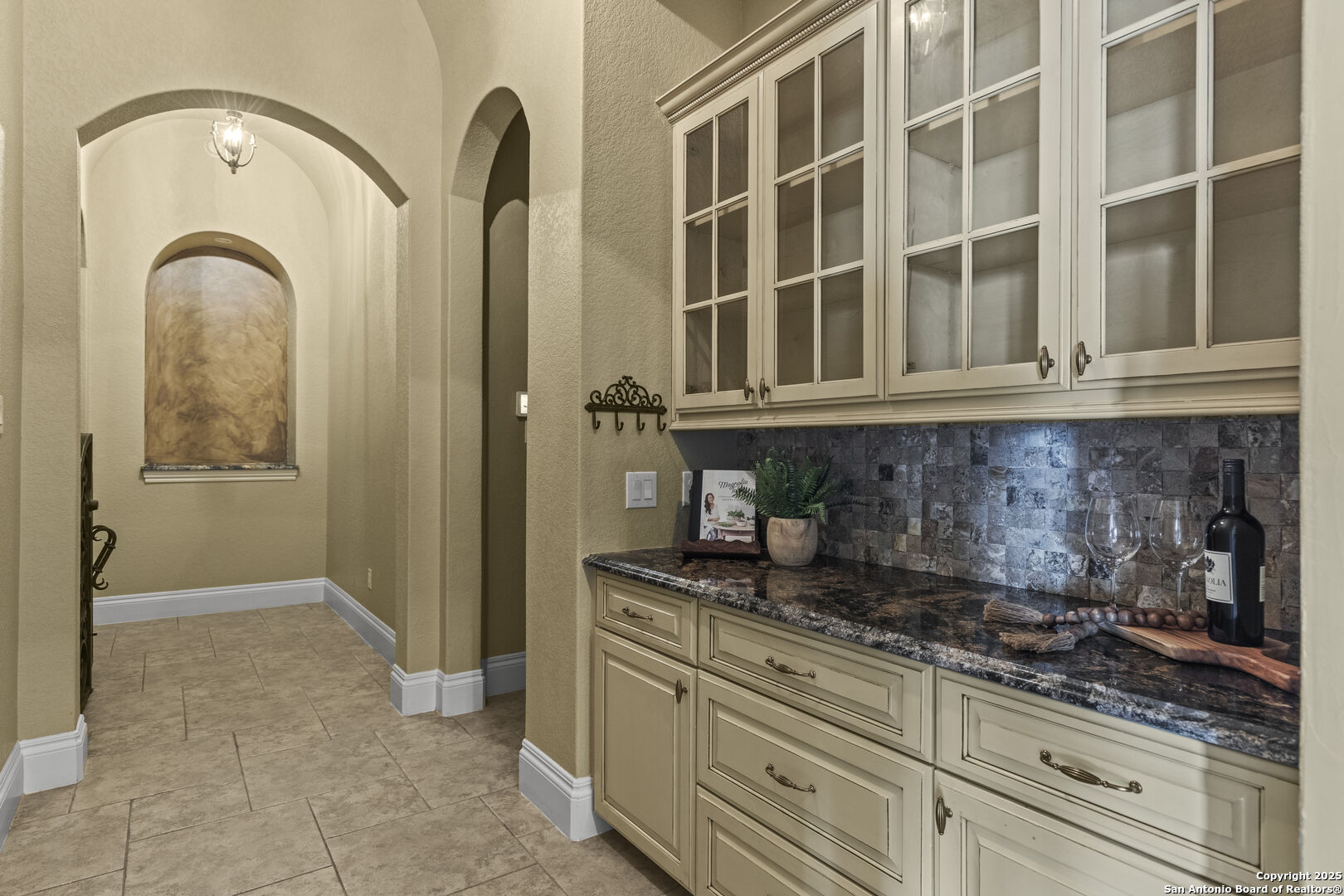 Unmatched Views. Thoughtful Design. Tucked inside the gated hilltop community of Terra Mont, this stunning custom-built Solace Creek home is the perfect blend of elegance, comfort, and quiet Hill Country living. Set on over 1.18 acres, this private south-facing lot backs to a scenic natural canyon co-owned by surrounding neighbors-perfect for peaceful morning sunrises and glorious evening sunsets. The first thing you'll notice about this home is the unmatched, unobstructed views! Oversized windows frame wide-open skies and city lights in the distance, giving every room a peaceful, elevated feel and a sense of serenity that's hard to match. Outdoor living is effortless with over 2,000 sq ft of decking, a built-in grill, mounted outdoor TV, and a covered patio. Whether you're enjoying coffee on the back deck, relaxing by the fireplace, or prepping a meal in the kitchen, there's a sense of awe and tranquility. Equally stunning are the custom design choices you'll find inside. The home features Venetian plaster accents, a rotunda entry, custom iron gates and light fixtures, Travertine and wood flooring, two gas fireplaces, and four spacious bedrooms-including two primary suites on the main level, offering flexibility for all stages of life. There are also three full baths, two half baths, and specialty rooms like a media room (with included projector), a private study (with a secret passage!), a home gym, and two large living areas. The heart of the home is a beautiful island kitchen with a 6-burner Wolf gas cooktop, griddle, warming drawer, paneled fridge and dishwasher, walk-in pantry, and hand-selected granite countertops. The adjoining breakfast room showcases a stunning custom dome ceiling, while the formal dining room easily hosts large gatherings. Retreat to the luxurious primary suite with a separate sitting area and patio access, dual tailored-height vanities with custom hammered copper sinks, dual walk-in closets, and an incredibly spacious primary bath featuring a whirlpool tub, walk-around shower with bench, his-and-hers toilet rooms (!), and direct access to the gym. The second primary suite includes a large bedroom, en-suite bathroom, spacious closet, and even a kitchenette (!)-designed with privacy in mind-all on the main level of the home. Additional features include a whole-house intercom system, dimmable uplighting and downlighting throughout, a whole-house generator, solar panels, and a water softener. This home was made to be lived in, loved, and enjoyed-where privacy, craftsmanship, and unforgettable views come together. Come see for yourself!