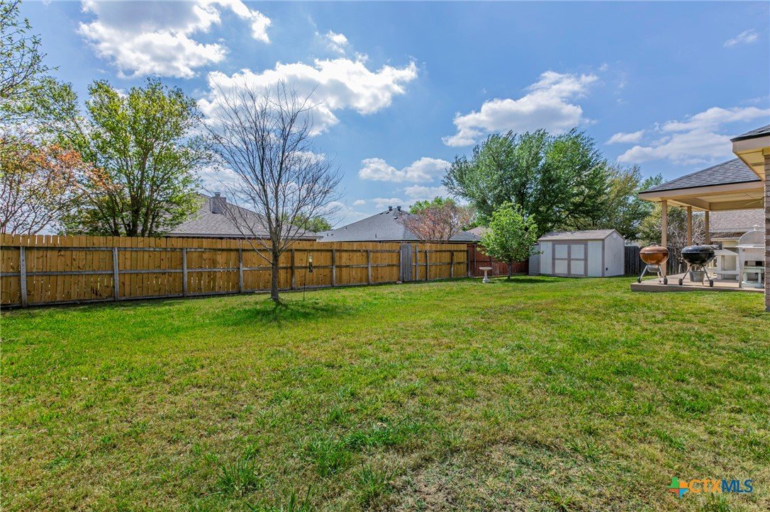 Striking Acacia Wood Floors. Incredible Outdoor Living. A Home Designed to Be Enjoyed. This is the kind of home that just feels right the moment you walk in. Located in the desirable Carriage House Village subdivision, this 4 bedroom home immediately stands out with its comfort, style, and convenience. Come in and notice the eye catching Acacia hardwood floors that bring warmth and character to the space. The large, open concept living room, anchored by a wood burning fireplace, creates an inviting atmosphere perfect for relaxing evenings or hosting friends and family. The layout flows seamlessly into a spacious kitchen and dining area built for connection. Granite countertops, a large island, abundant cabinetry, and a sizable pantry are everything you need for both everyday living and effortless entertaining. The primary suite features a large walk in closet, dual sinks with granite countertops, a shower, and a soaking tub, ideal for unwinding at the end of the day. Two additional bedrooms are notably spacious, with a fourth bedroom that flexes easily for guests, hobbies, or an office. All bedrooms have generous closets. This home has exceptional outdoor living space. With over 350 sq ft of patio space, this home is built for entertaining. The TV ready covered patio makes game days and gatherings effortless, while the sun terrace adds extra room to stretch out. The oversized backyard features several nice trees, including two apple trees, room for gardening, entertaining, or play. The 10x12 workshop is outfitted with electricity and lighting. With a recently replaced roof, full sprinkler system, privacy fence, and mature landscaping, this home is truly move in ready. Just as important, you’re a short walk to the neighborhood pool, park, and Charter Oak Elementary, one of Belton ISD’s newest schools. And you’re less than 10 miles from Baylor Scott & White, Belton Lake, and Temple’s airport. Don’t miss the chance to see this fantastic place that’s ready to call home!