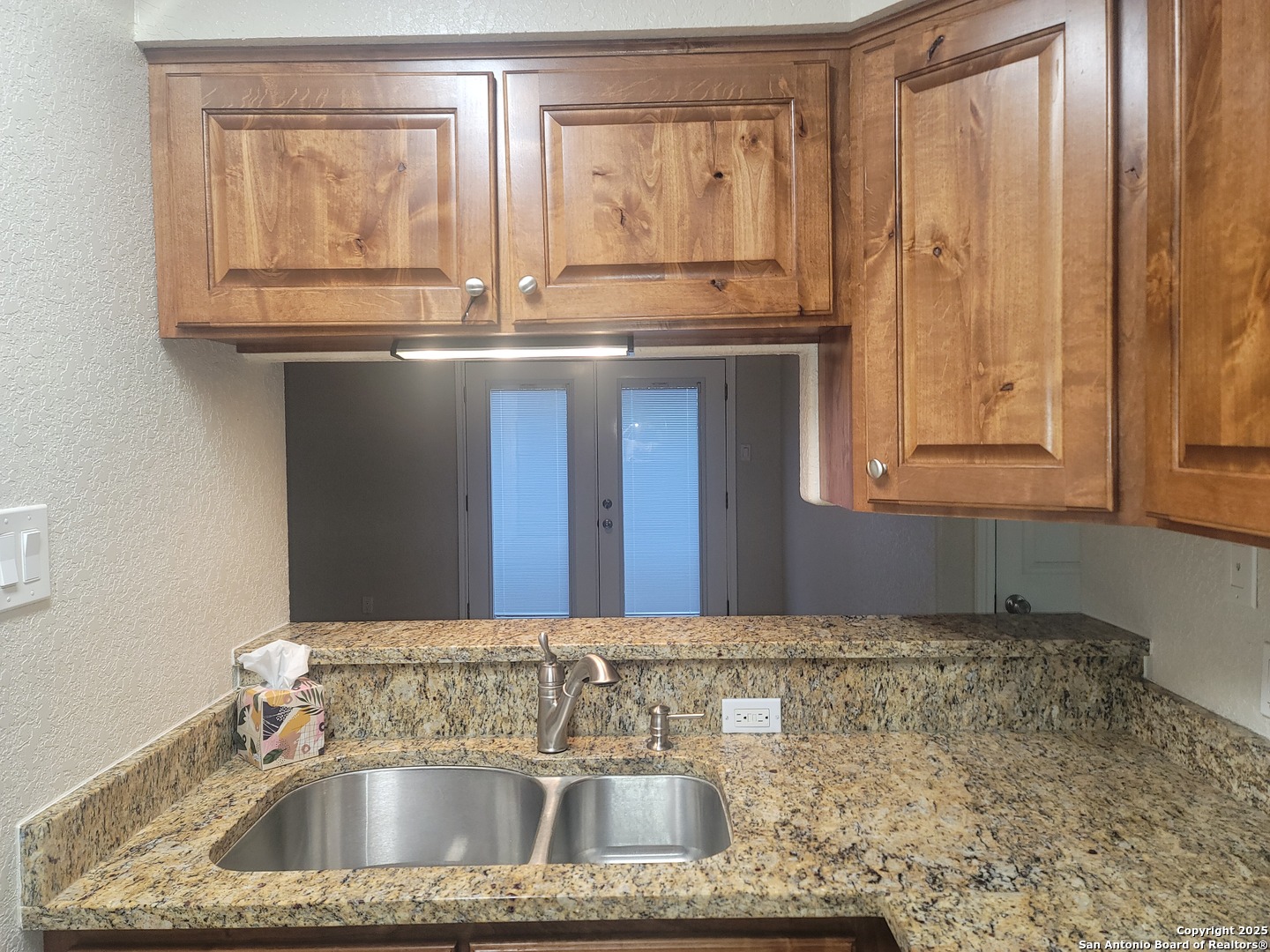 CUSTOM Finished 2 Bedroom/1-1/2 Baths/1 Car Attached Garage. Close to the Medical Center! 2025--NEW Tub & Tile Surround, Fresh Interior & Exterior Paint, NEWLY Grouted & Sealed Porcelain Tile Throughout, 2 Ceiling Fans. Knotty Alder Custom Kitchen Cabinets, Granite Counters in Kitchen & Bathrooms, Ref w/Ice, Crown Molding, Double Pane Windows, Double French Doors with Internal Blinds, Wood Burning Fireplace! QUIET Neighborhood which Backs to Greenbelt. Great Garden Home with small backyard which Backs to Greenbelt. NEW HVAC installed April 2022. HOA Fees include Water. OWNER/BROKER.