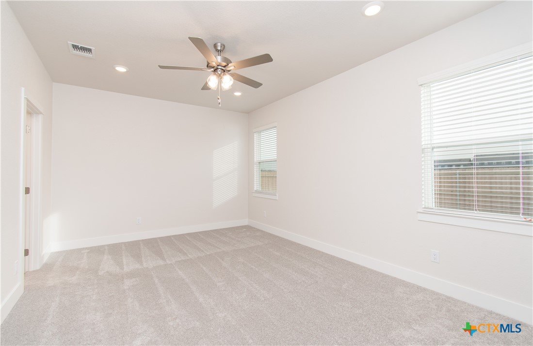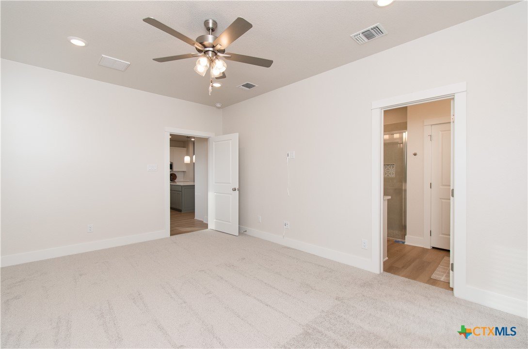 Energy-efficient spray foam insulation, designed to help reduce utility costs and will save money on your monthly electric bills, sets the tone for this refined new construction home by Sandor Construction at 8523 Glade Drive in the Mesa Ridge community of Temple, Texas. This single-story residence features a sophisticated open-concept design with seamless flow between the kitchen, dining, and living spaces, ideal for both everyday living and entertaining. The kitchen offers modern finishes, generous cabinetry, and a central island, while the living area opens to a covered patio for effortless indoor-outdoor living. The primary suite provides a serene retreat with a private bath and spacious closet, complemented by secondary bedrooms offering versatility for guests or a home office. Quality craftsmanship, a two-car garage, and a welcoming front porch complete this thoughtfully designed, move-in-ready home, conveniently located near Lake Belton High Schools, shopping, dining, and major roadways.
