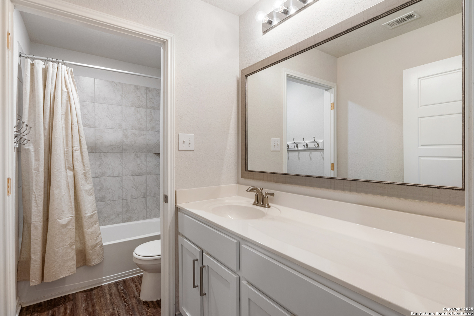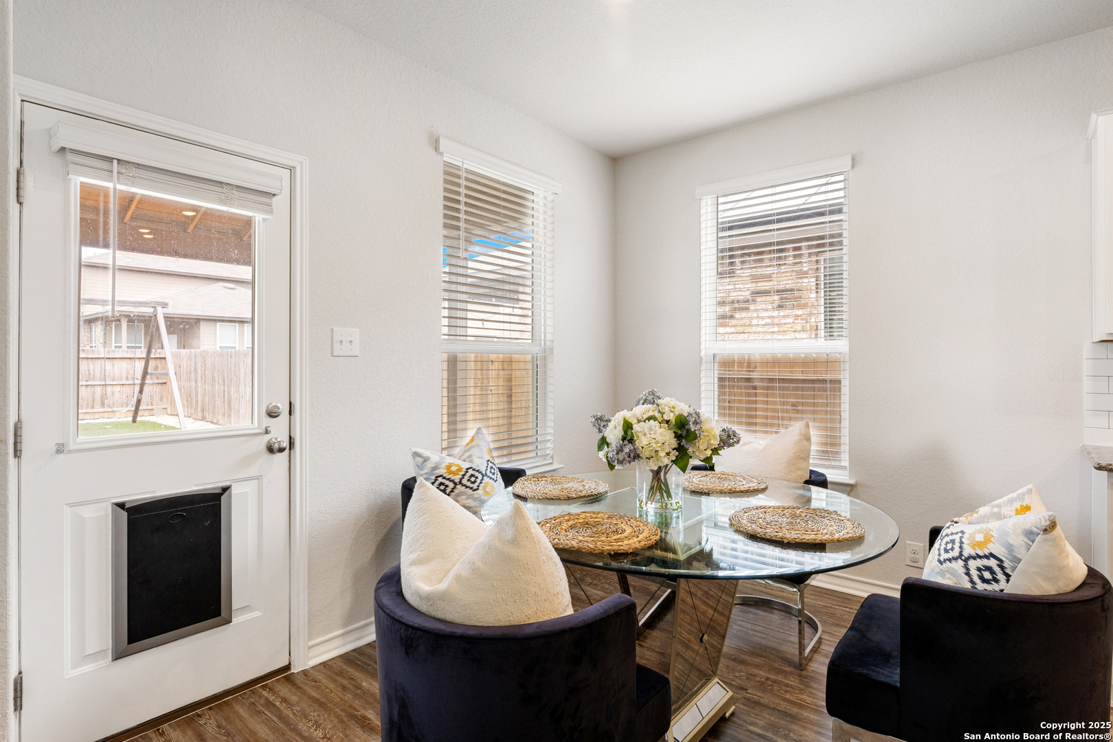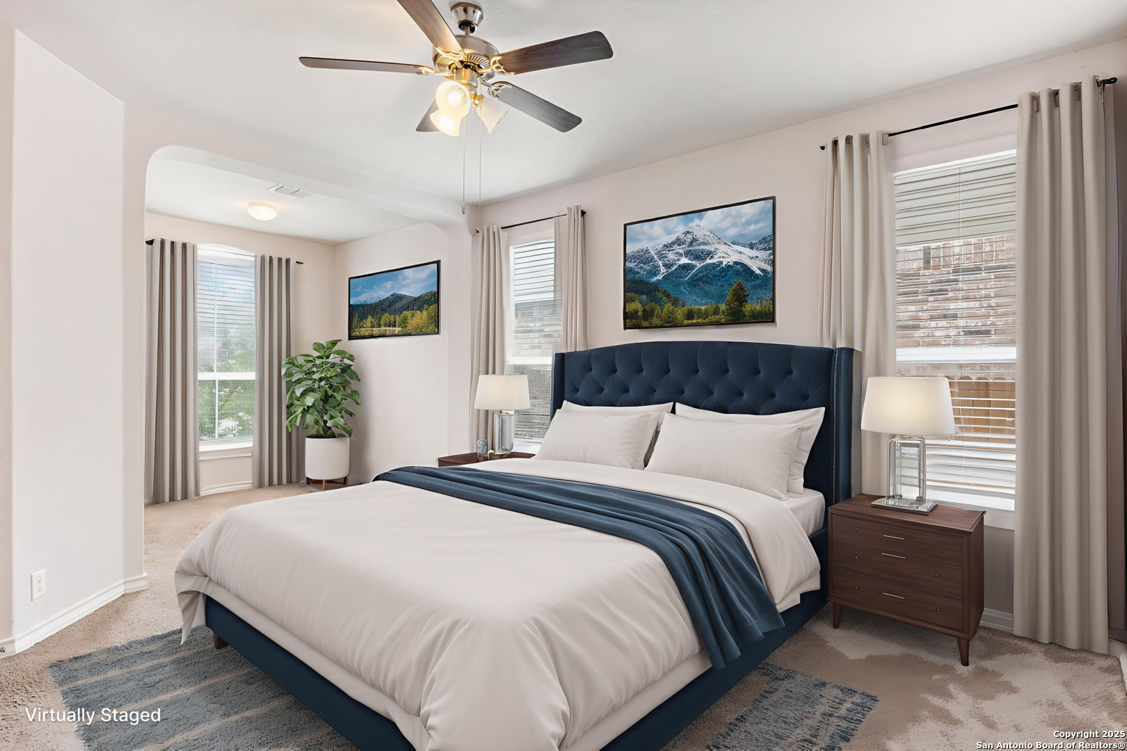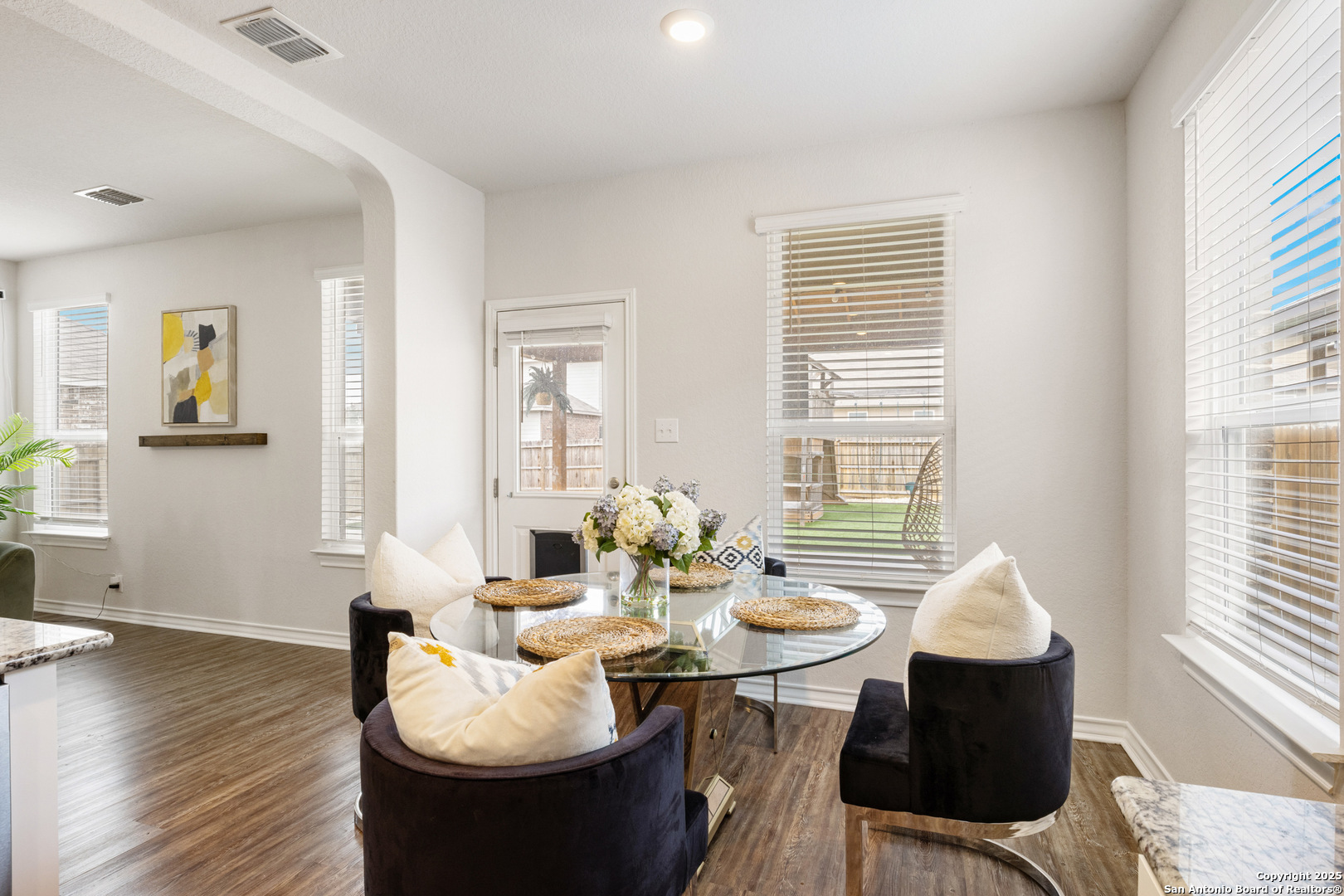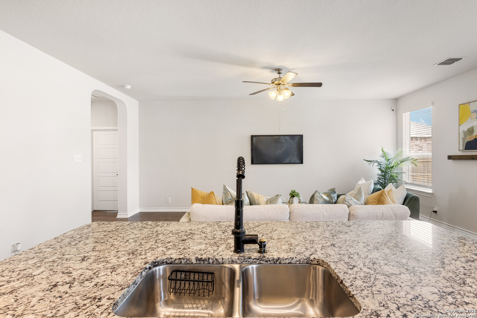 This spacious 5-bedroom, 3.5-bath home offers the perfect balance of comfort and functionality with its open floor plan designed for entertaining and everyday living. The chef's kitchen features granite countertops, ample cabinetry, and flows seamlessly into the living and dining spaces. Upstairs and downstairs living areas provide flexibility for family gatherings, work, or play. The private owner's suite boasts a generous layout with a spa-like bathroom.Step outside to your low-maintenance turf backyard, complete with an outdoor play set, perfect for family fun year-round. Washer, dryer, and refrigerator are included, making this home move-in ready! Located in the highly sought-after master-planned Valley Ranch community, you'll enjoy resort-style amenities including pools, clubhouse, gym, and walking trails. Don't miss this opportunity to own in one of San Antonio's most desirable neighborhoods!
