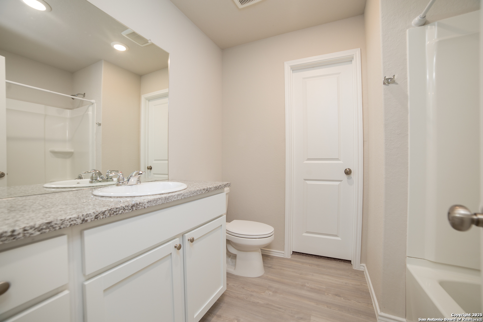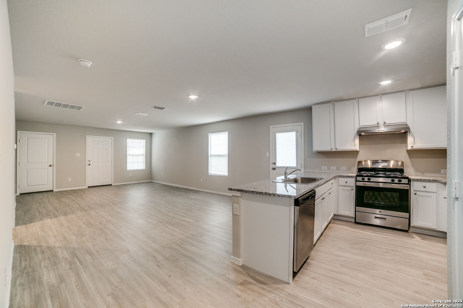 Welcome to this spacious one-story home in the Cardinal Ridge subdivision, offering an open floor plan with laminate flooring throughout and cozy carpet in the bedrooms. Recessed lighting brightens every room, while the kitchen overlooks the living and dining areas and includes generous cabinet and counter space-refrigerator to be installed. The oversized primary suite features a walk-in closet, single vanity, and a tub/shower combo. The large backyard offers a privacy fence and is great for entertaining. Conveniently located near major highways, Lackland AFB, shopping, dining, and entertainment.