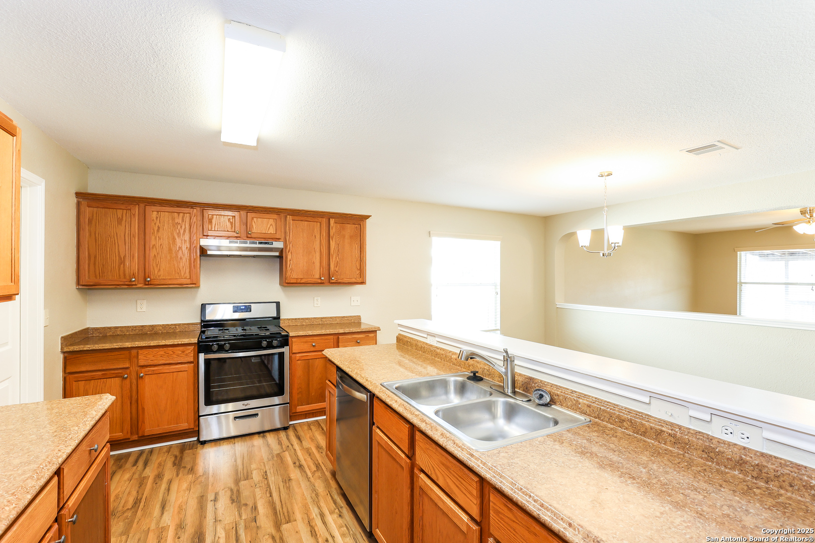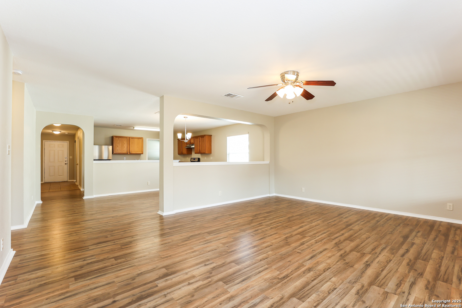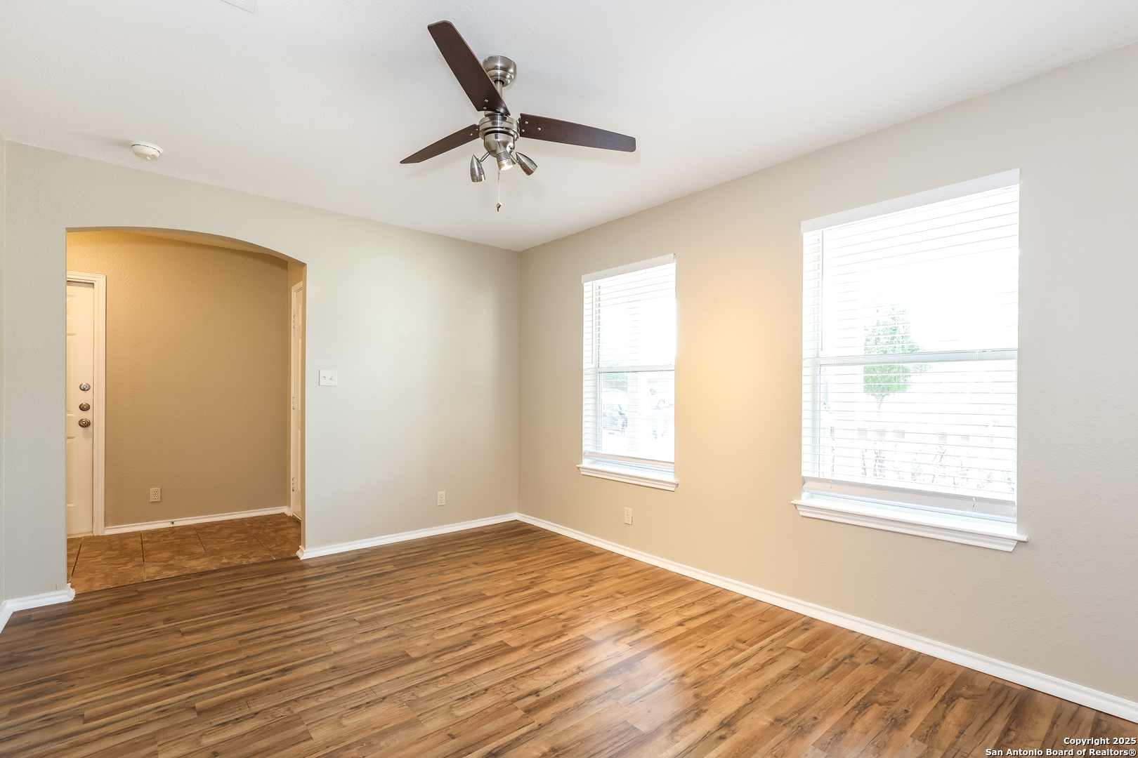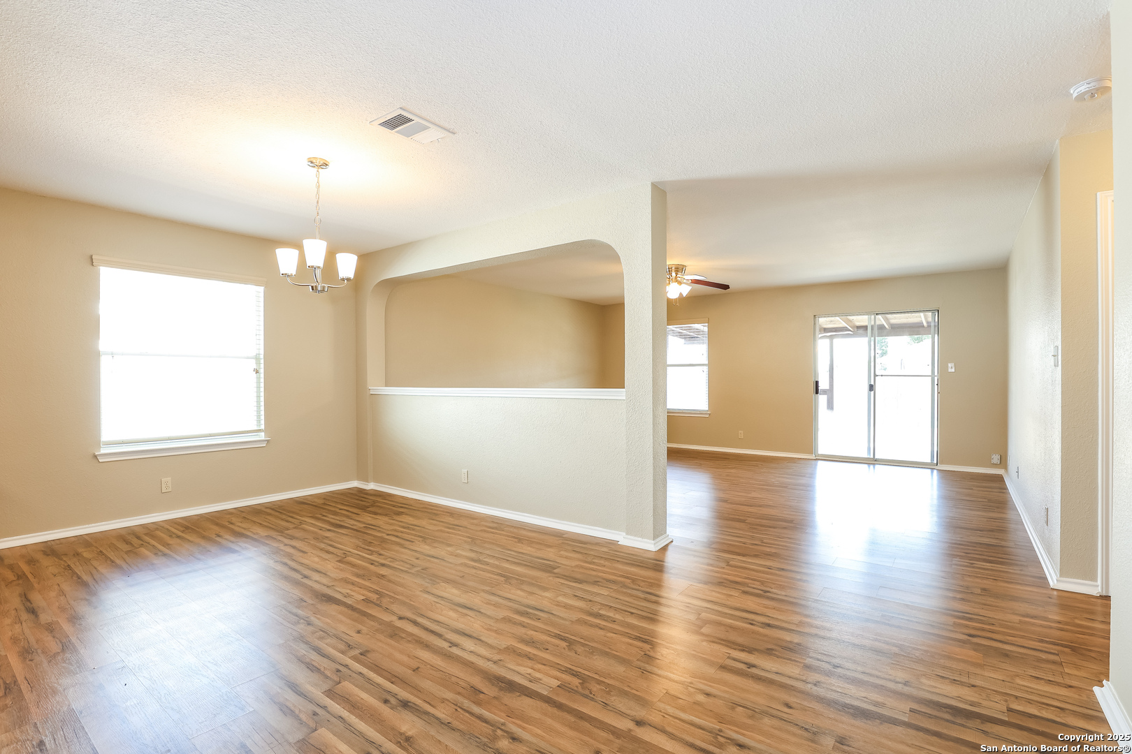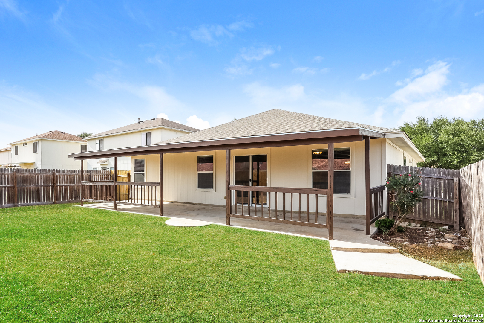 Welcome home to this beautifully refreshed property featuring an inviting front porch and a spacious covered back patio-perfect for entertaining or relaxing outdoors! Inside, enjoy a bright and open floor plan with brand-new flooring throughout and fresh interior paint. This carpet-free home offers two versatile living areas, ideal for a home office, formal dining, or additional living space. The open kitchen includes a gas range for those who love to cook, a cozy breakfast area, and a refrigerator that stays. The split primary suite provides extra privacy and features a garden tub, separate shower, and walk-in closet. Additional highlights include a new roof (2020) and plenty of room to gather with family and friends in the backyard. Conveniently located near schools, shopping, and major highways-this home is a must-see!