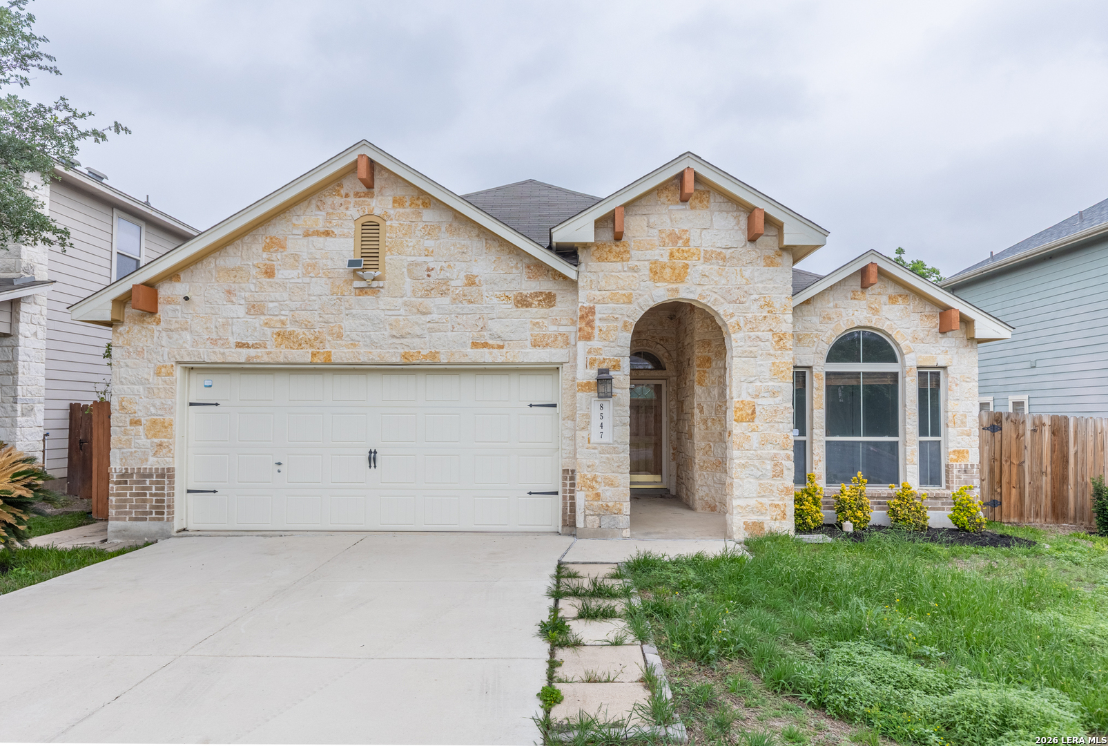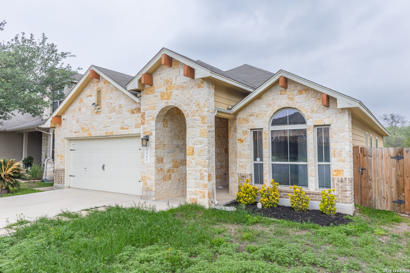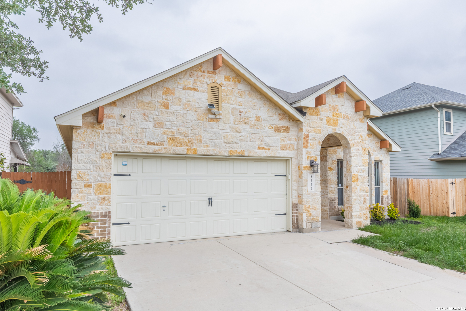 Welcome to 8547 Lone Shadow Trail, a beautifully maintained home offering modern style and comfortable living in the heart of Converse. This inviting residence features an open-concept layout filled with natural light, perfect for both everyday living and entertaining. The kitchen is a standout with sleek quartz countertops, a spacious center island, stainless steel appliances, and a stylish backsplash that ties it all together. Light cabinetry creates a bright, airy feel while offering plenty of storage and functionality. The primary suite is complete with a well-appointed en-suite bathroom featuring dual vanities, a relaxing soaking tub, and a separate shower-your own private space to unwind. The exterior showcases charming curb appeal with a stone-accented facade and a welcoming entry. The backyard offers a great opportunity to design your ideal outdoor space-whether it's for entertaining, gardening, or relaxing. This home is conveniently located near shopping, dining, and major highways. It provides easy access to everything you need while still offering a peaceful neighborhood setting.
