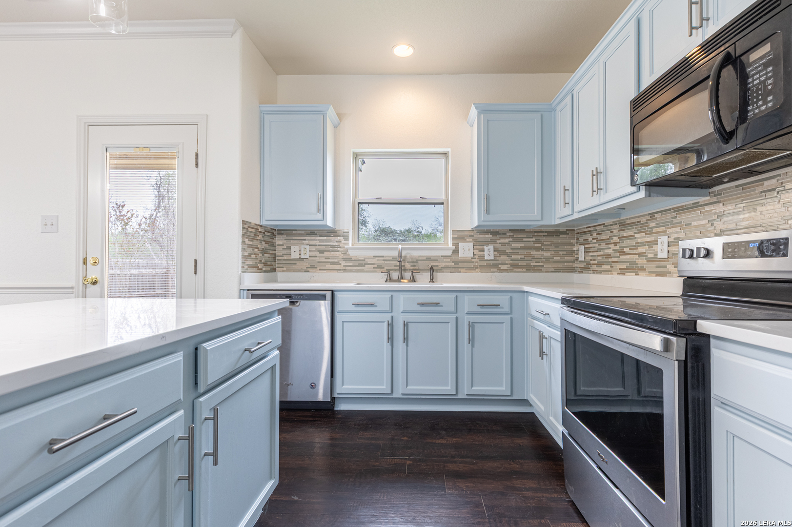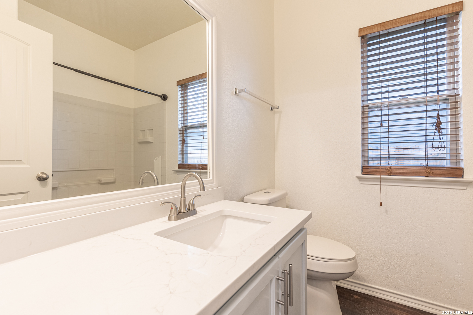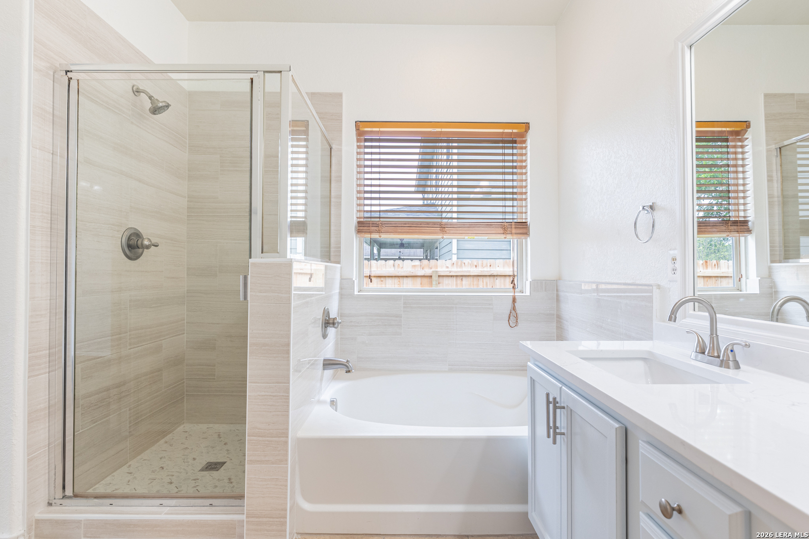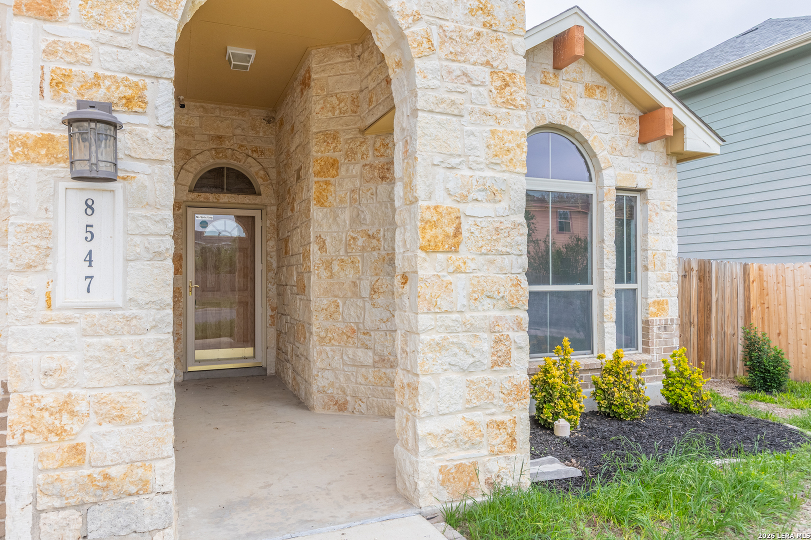 Welcome to 8547 Lone Shadow Trail, a beautifully maintained home offering modern style and comfortable living in the heart of Converse. This inviting residence features an open-concept layout filled with natural light, perfect for both everyday living and entertaining. The kitchen is a standout with sleek quartz countertops, a spacious center island, stainless steel appliances, and a stylish backsplash that ties it all together. Light cabinetry creates a bright, airy feel while offering plenty of storage and functionality. The primary suite is complete with a well-appointed en-suite bathroom featuring dual vanities, a relaxing soaking tub, and a separate shower-your own private space to unwind. The exterior showcases charming curb appeal with a stone-accented facade and a welcoming entry. The backyard offers a great opportunity to design your ideal outdoor space-whether it's for entertaining, gardening, or relaxing. This home is conveniently located near shopping, dining, and major highways. It provides easy access to everything you need while still offering a peaceful neighborhood setting.