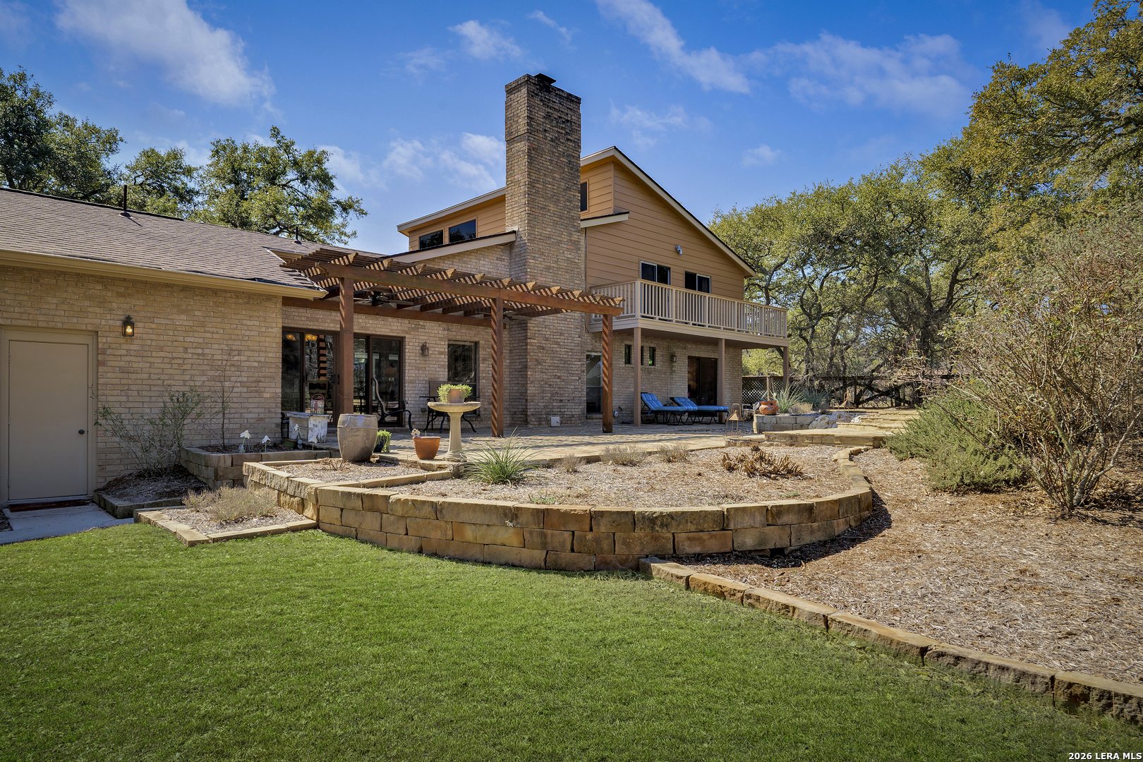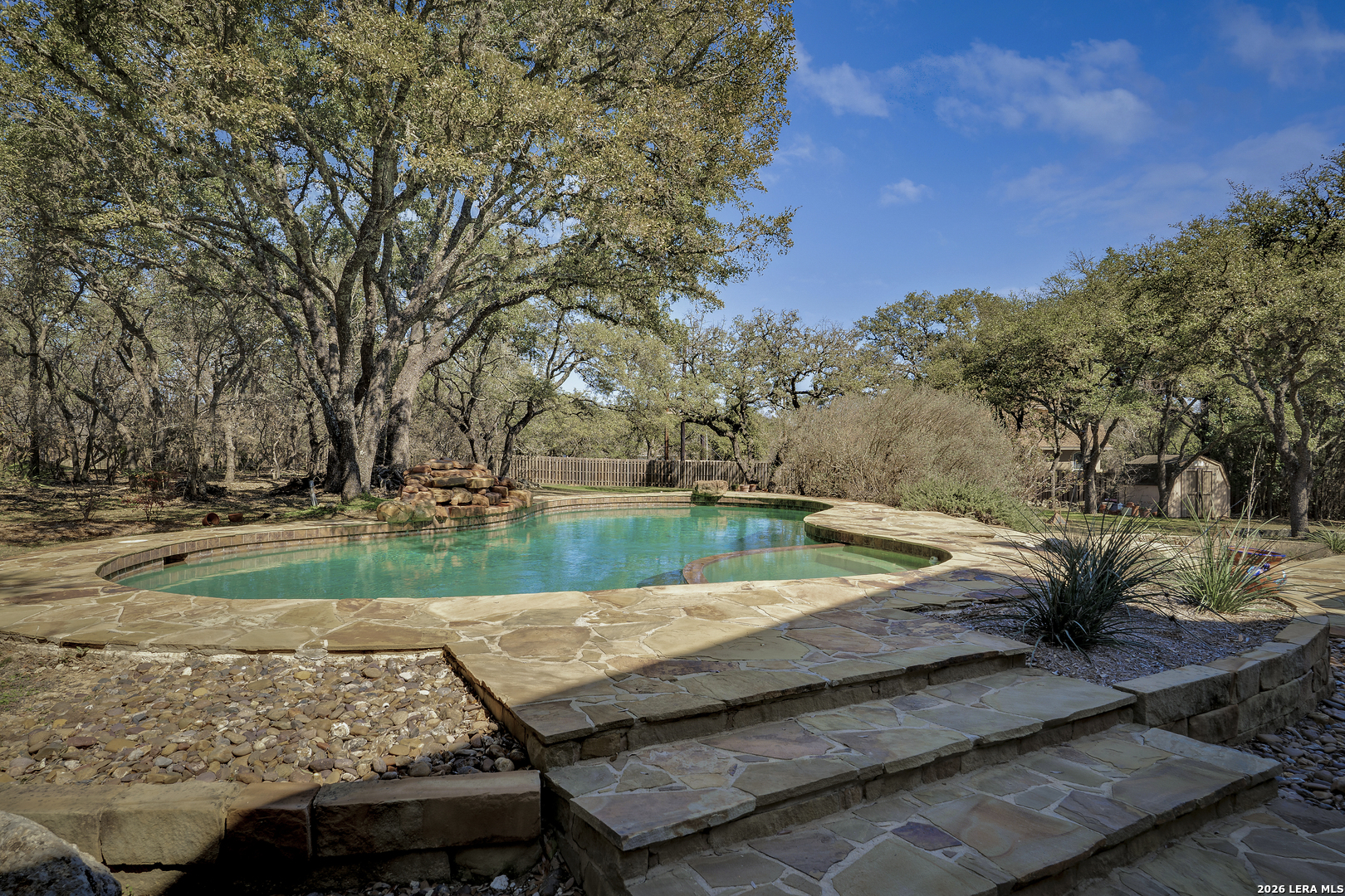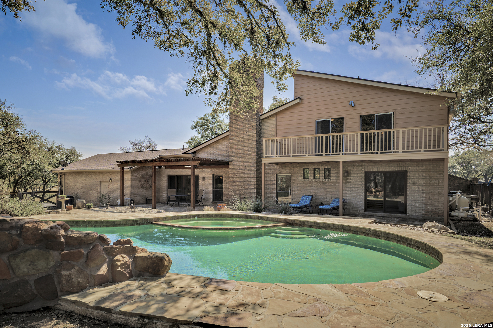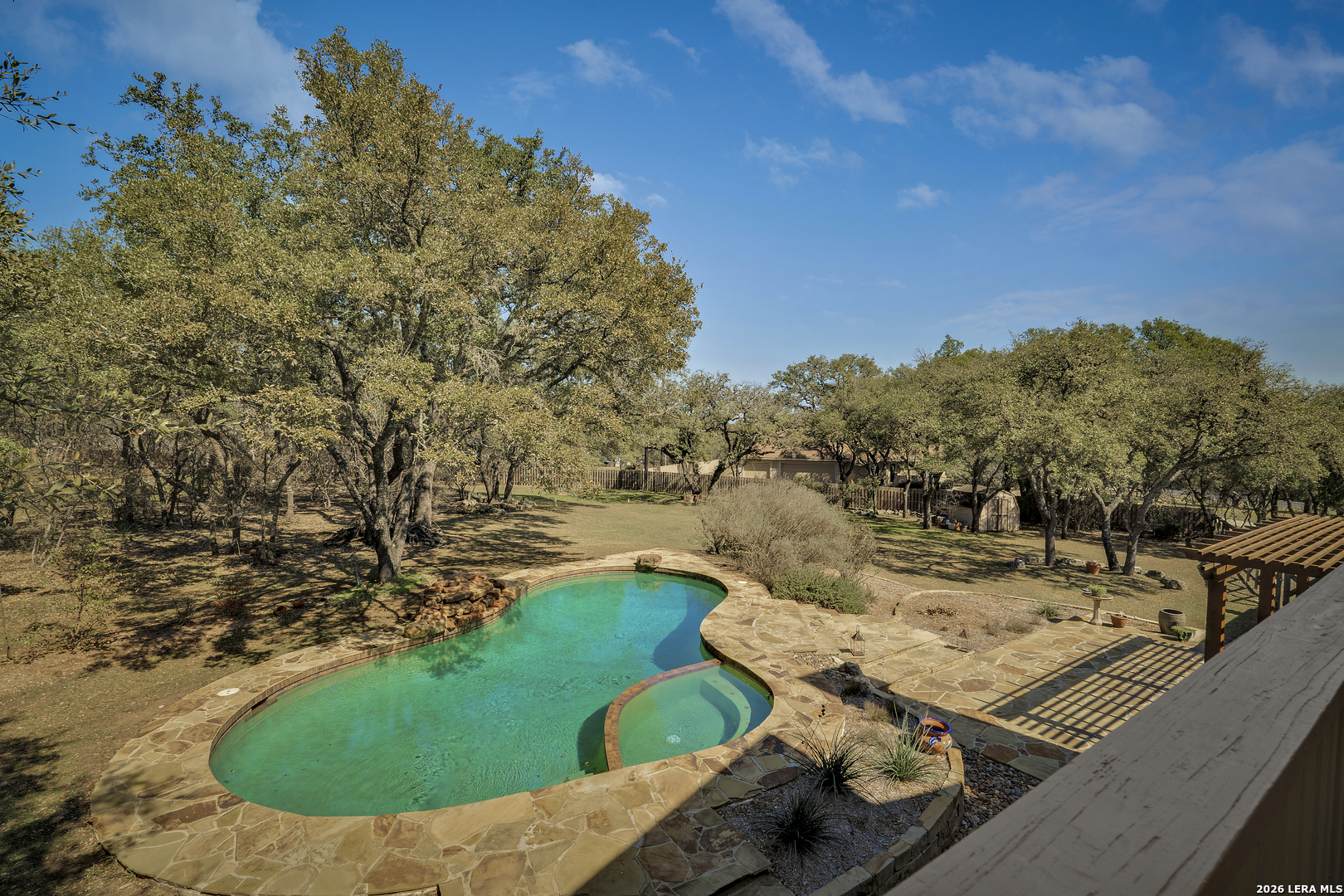 Welcome to this captivating Fair Oaks Ranch home with Timeless appeal and Stunning views. This enchanting 3-bedroom, 3-bathroom Hill Country residence seamlessly blends modern charm with timeless sophistication. From the moment you step inside, you'll see the exquisite attention to detail and the refined finishes that make this home truly special. The light filled, airy design is complemented by natural materials and a neutral palette, creating a serene atmosphere throughout. The dream kitchen features custom millwork, intricate backsplashes, and abundant workspace-perfect for preparing your favorite meals and entertaining guests. Just beyond the kitchen, discover the heart of the home: a spacious Great Room with a floor-to-ceiling stone fireplace and a light-filled Breakfast Area. The well-appointed primary suite offers hardwood floors, a beautifully updated bathroom, and a professionally designed closet with custom built-ins-your personal haven of indulgence. The main level is rounded out by a tranquil Dining Room filled with ambient light and a peaceful second Living Room. Upstairs, you'll find two generously sized bedrooms, each with its own private balcony, plus a versatile Game Room-ideal for family fun or relaxation. Step outside to embrace the best of the hill country lifestyle - a sparkling swimming pool and spa, beautiful mature trees, alongside an oversized patio covered with a pergola, providing the perfect spot to soak in all of the natural beauty that surrounds you. This lovely home invites you to come in and take a look around. When you do, you may want to stay for a while or you may want to stay forever.