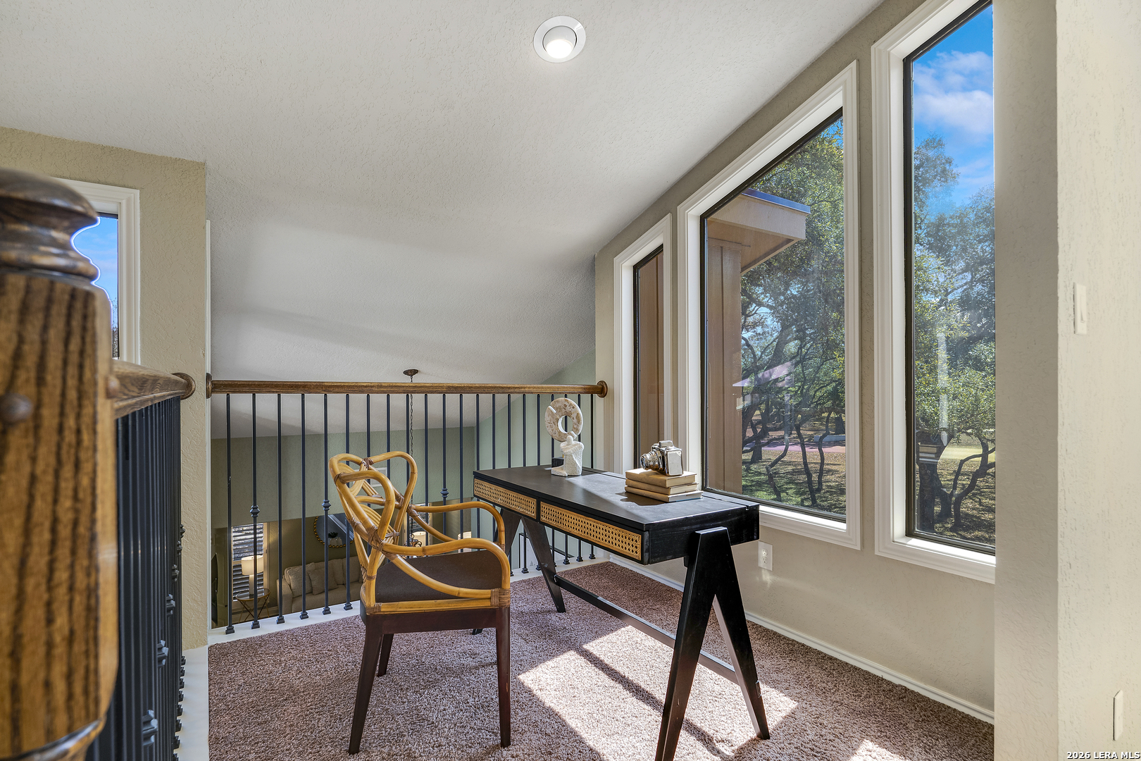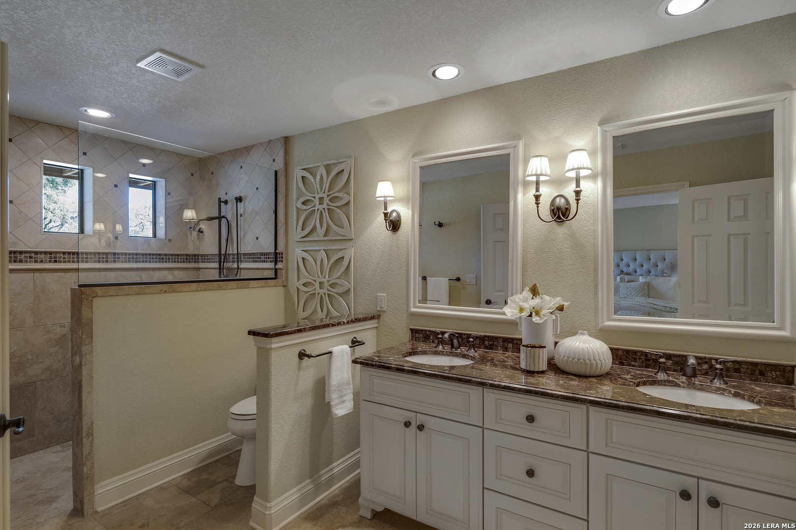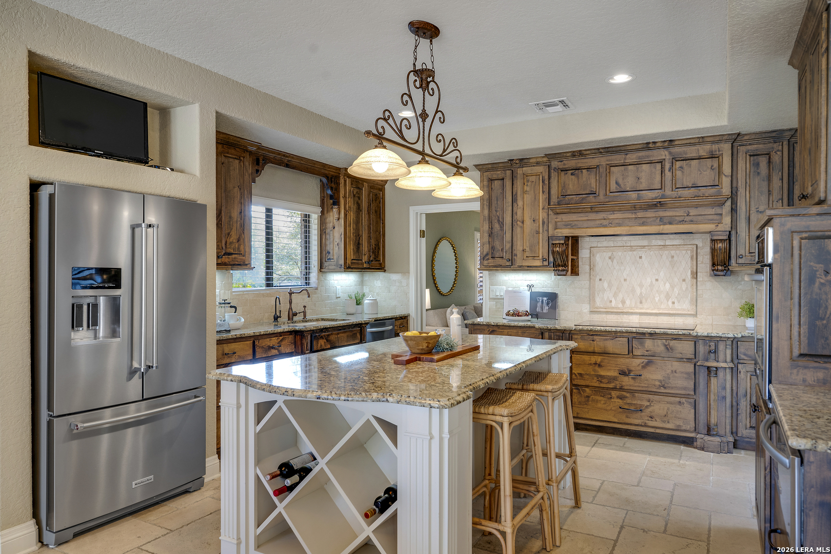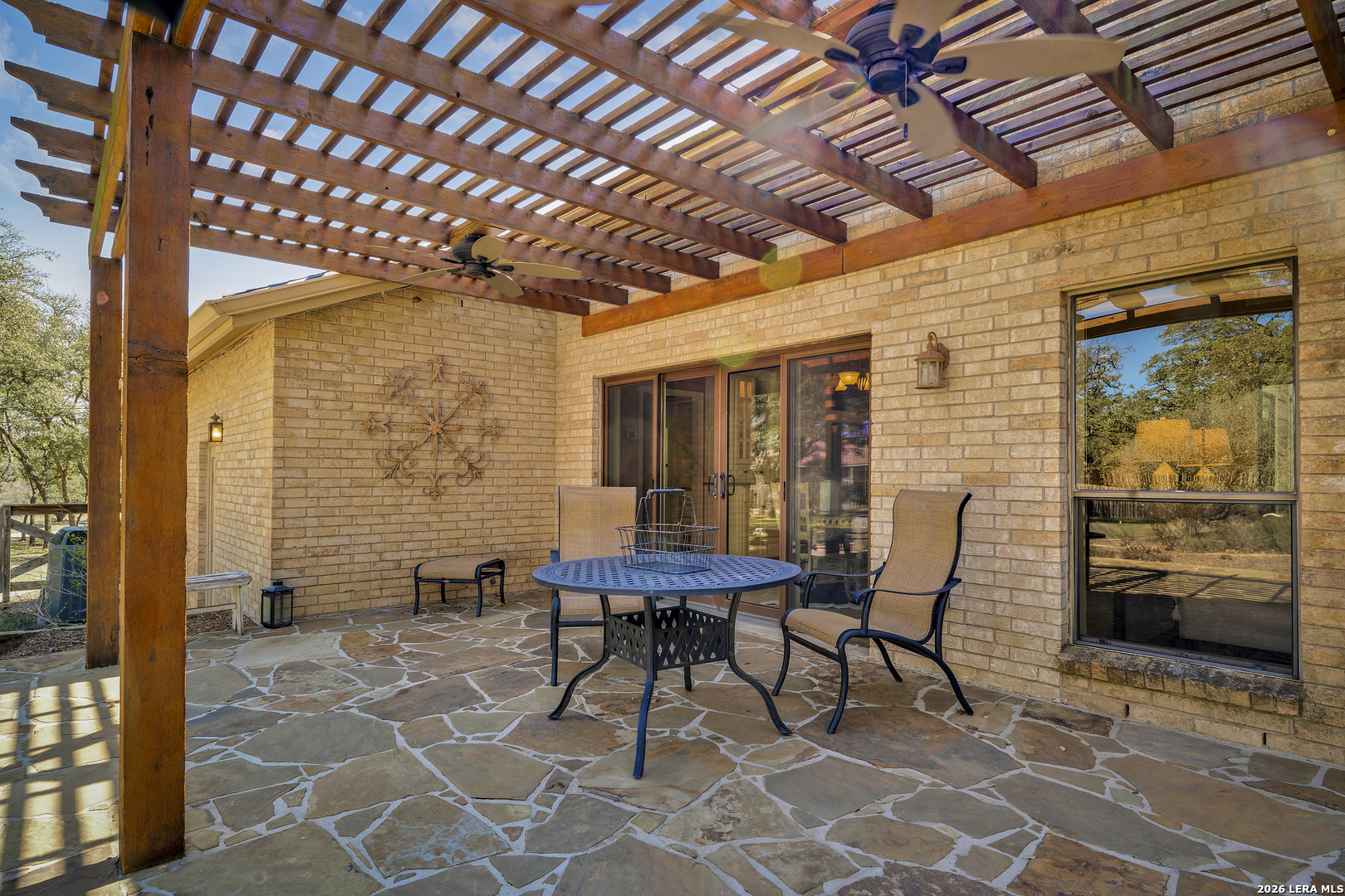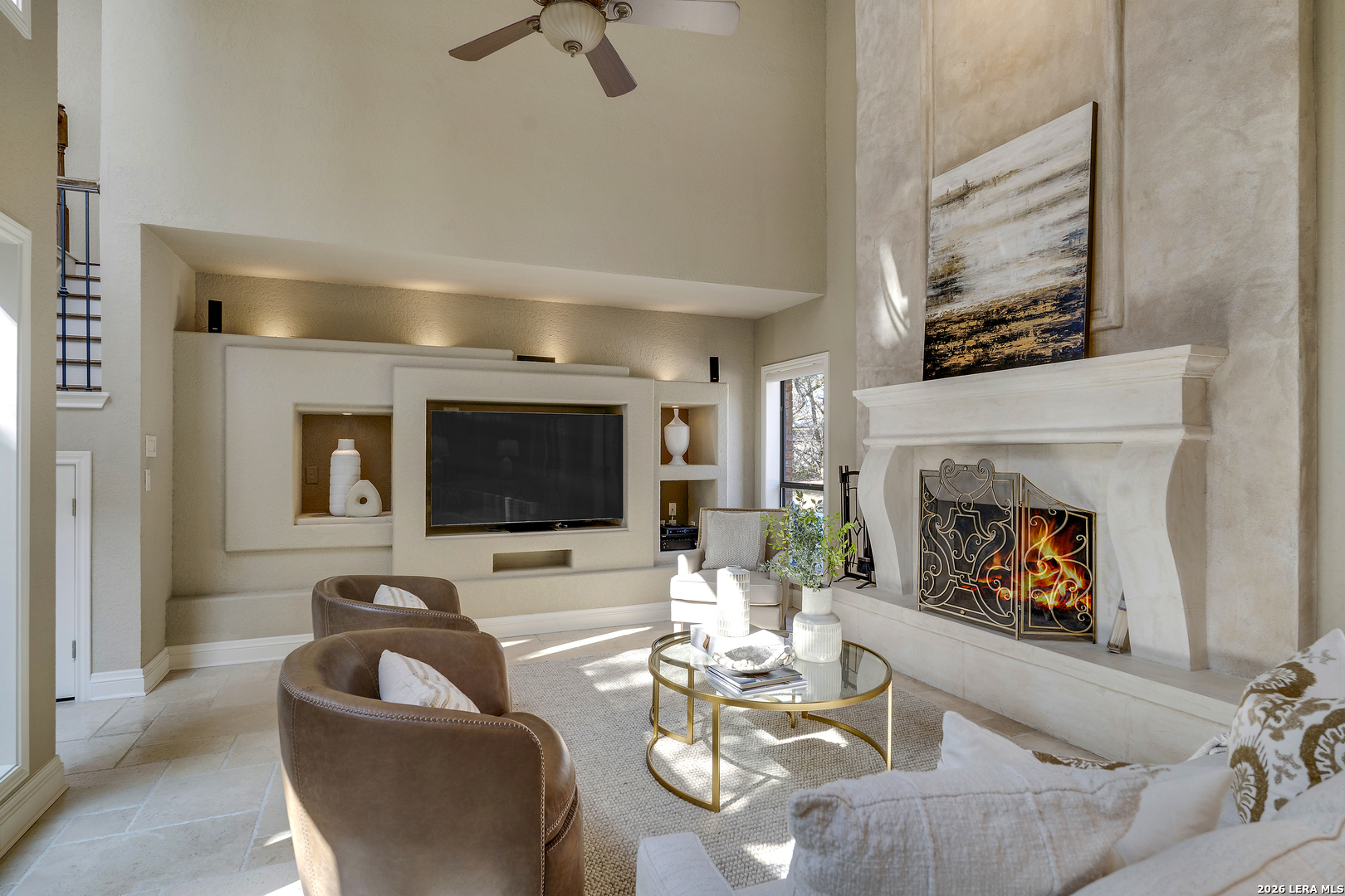 Welcome to this captivating Fair Oaks Ranch home with Timeless appeal and Stunning views. This enchanting 3-bedroom, 3-bathroom Hill Country residence seamlessly blends modern charm with timeless sophistication. From the moment you step inside, you'll see the exquisite attention to detail and the refined finishes that make this home truly special. The light filled, airy design is complemented by natural materials and a neutral palette, creating a serene atmosphere throughout. The dream kitchen features custom millwork, intricate backsplashes, and abundant workspace-perfect for preparing your favorite meals and entertaining guests. Just beyond the kitchen, discover the heart of the home: a spacious Great Room with a floor-to-ceiling stone fireplace and a light-filled Breakfast Area. The well-appointed primary suite offers hardwood floors, a beautifully updated bathroom, and a professionally designed closet with custom built-ins-your personal haven of indulgence. The main level is rounded out by a tranquil Dining Room filled with ambient light and a peaceful second Living Room. Upstairs, you'll find two generously sized bedrooms, each with its own private balcony, plus a versatile Game Room-ideal for family fun or relaxation. Step outside to embrace the best of the hill country lifestyle - a sparkling swimming pool and spa, beautiful mature trees, alongside an oversized patio covered with a pergola, providing the perfect spot to soak in all of the natural beauty that surrounds you. This lovely home invites you to come in and take a look around. When you do, you may want to stay for a while or you may want to stay forever.