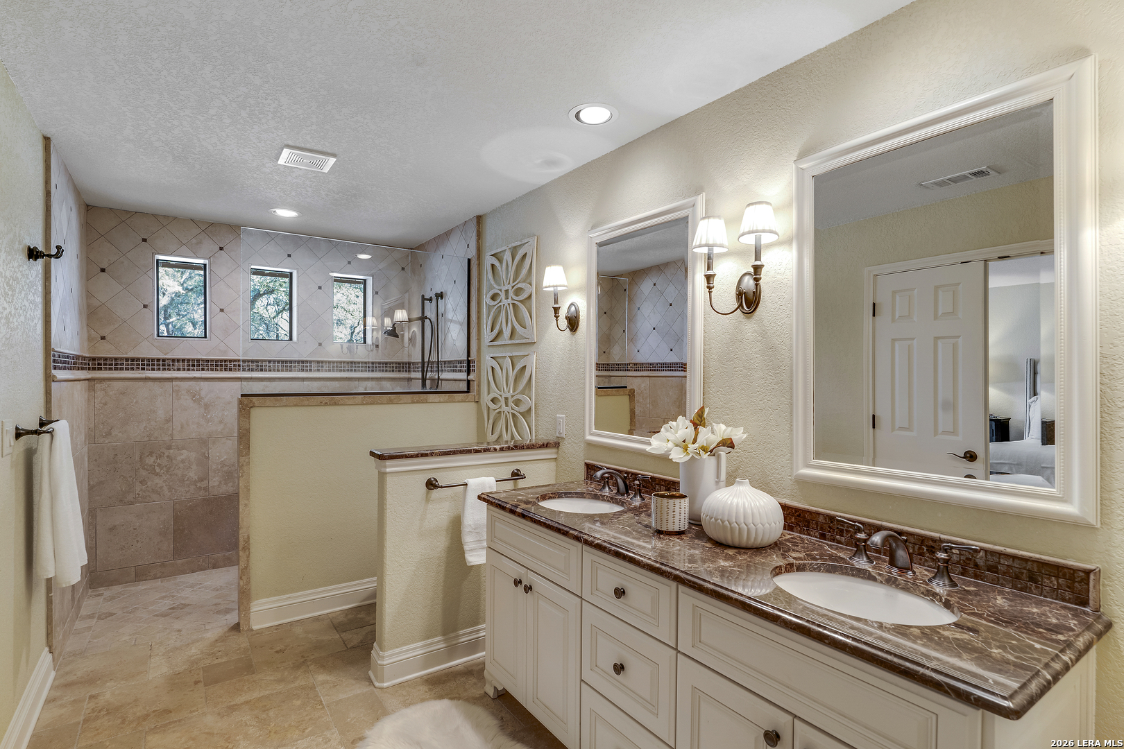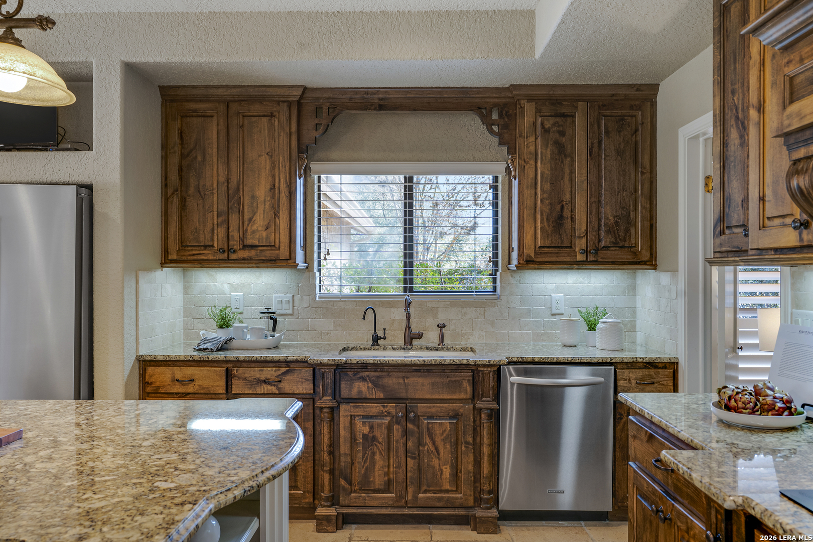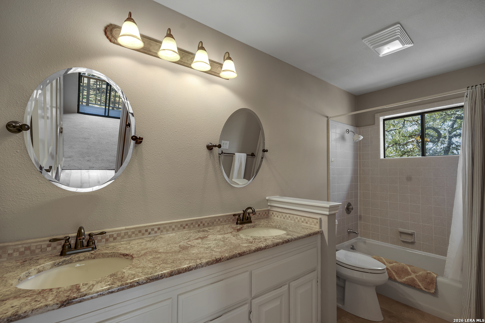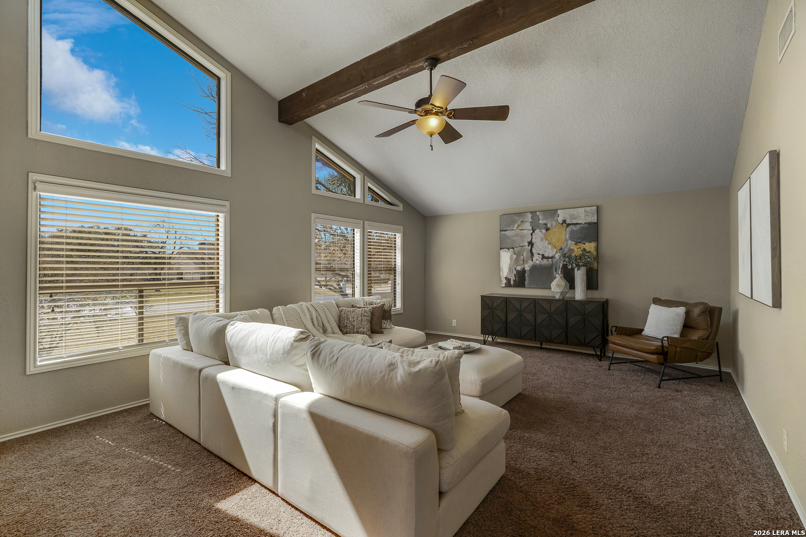 Welcome to this captivating Fair Oaks Ranch home with Timeless appeal and Stunning views. This enchanting 3-bedroom, 3-bathroom Hill Country residence seamlessly blends modern charm with timeless sophistication. From the moment you step inside, you'll see the exquisite attention to detail and the refined finishes that make this home truly special. The light filled, airy design is complemented by natural materials and a neutral palette, creating a serene atmosphere throughout. The dream kitchen features custom millwork, intricate backsplashes, and abundant workspace-perfect for preparing your favorite meals and entertaining guests. Just beyond the kitchen, discover the heart of the home: a spacious Great Room with a floor-to-ceiling stone fireplace and a light-filled Breakfast Area. The well-appointed primary suite offers hardwood floors, a beautifully updated bathroom, and a professionally designed closet with custom built-ins-your personal haven of indulgence. The main level is rounded out by a tranquil Dining Room filled with ambient light and a peaceful second Living Room. Upstairs, you'll find two generously sized bedrooms, each with its own private balcony, plus a versatile Game Room-ideal for family fun or relaxation. Step outside to embrace the best of the hill country lifestyle - a sparkling swimming pool and spa, beautiful mature trees, alongside an oversized patio covered with a pergola, providing the perfect spot to soak in all of the natural beauty that surrounds you. This lovely home invites you to come in and take a look around. When you do, you may want to stay for a while or you may want to stay forever.