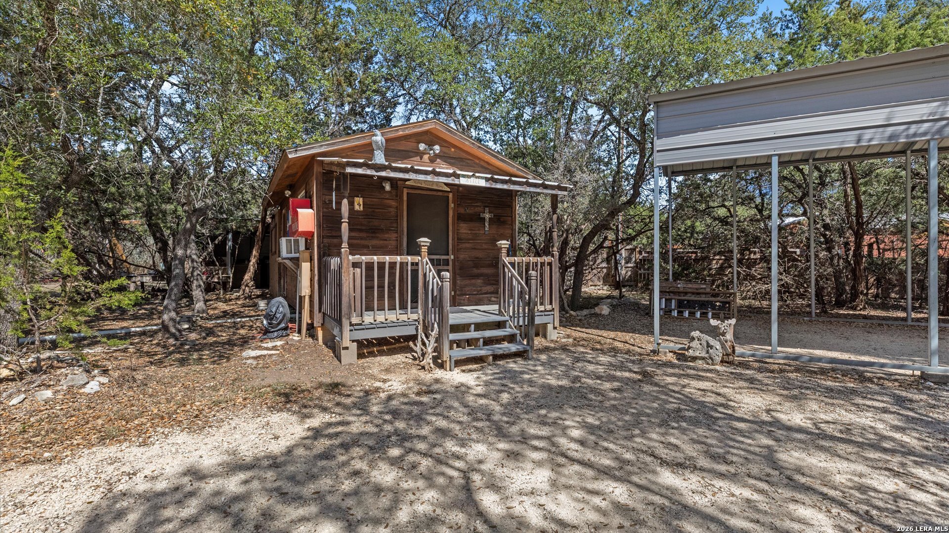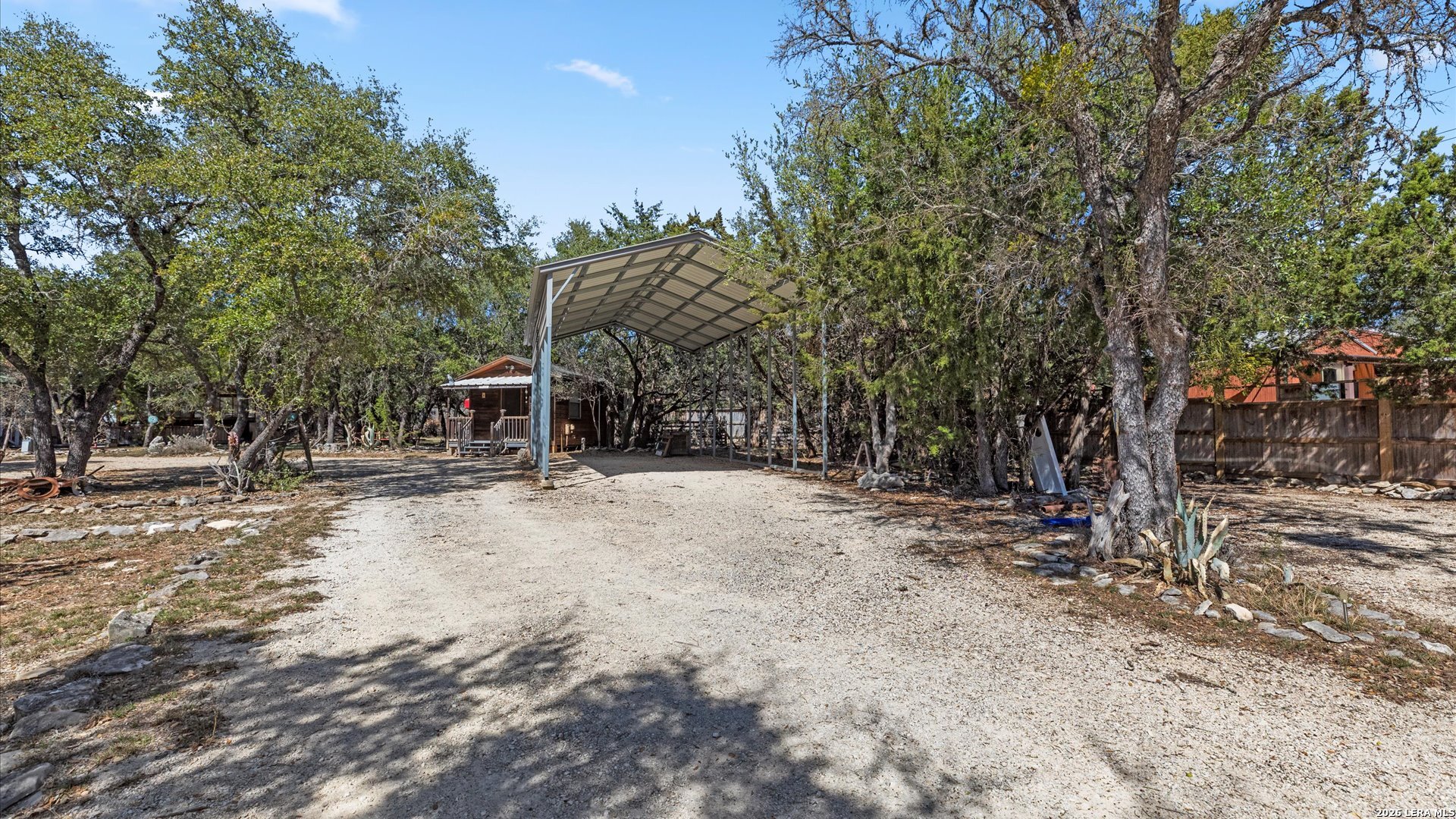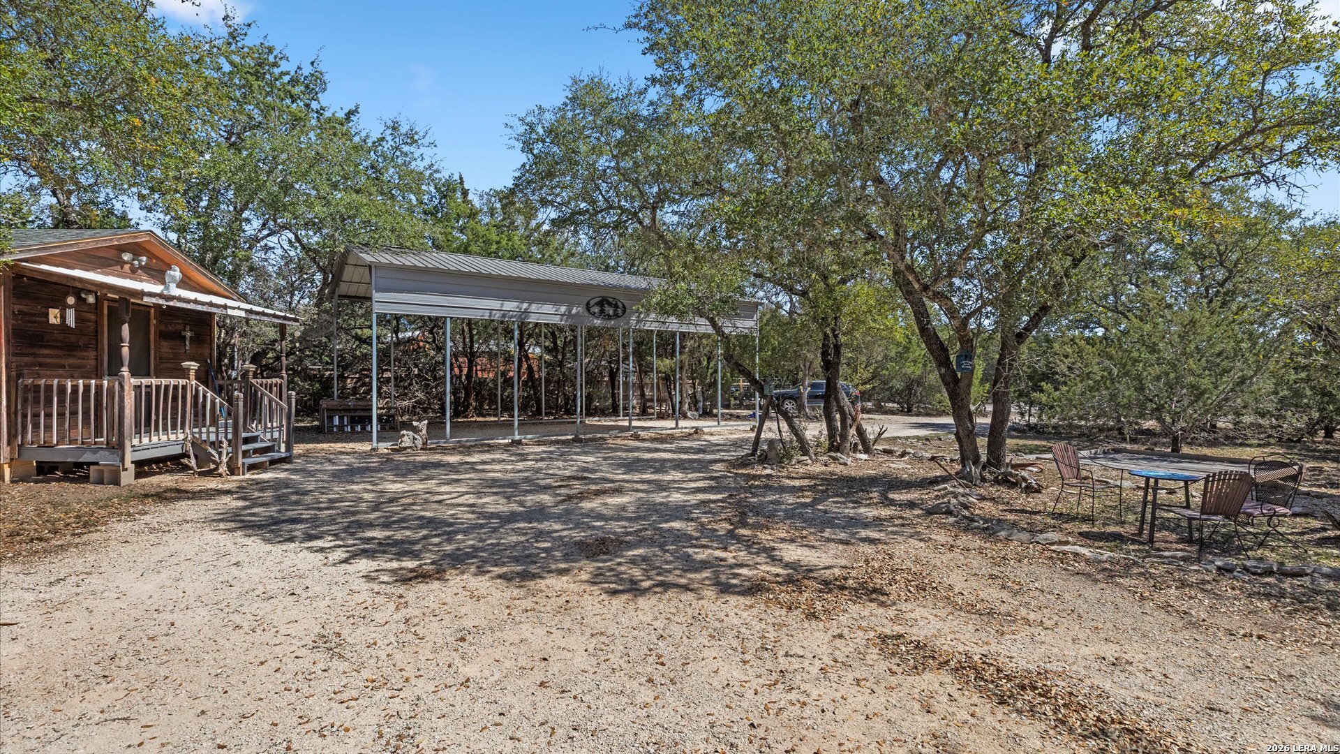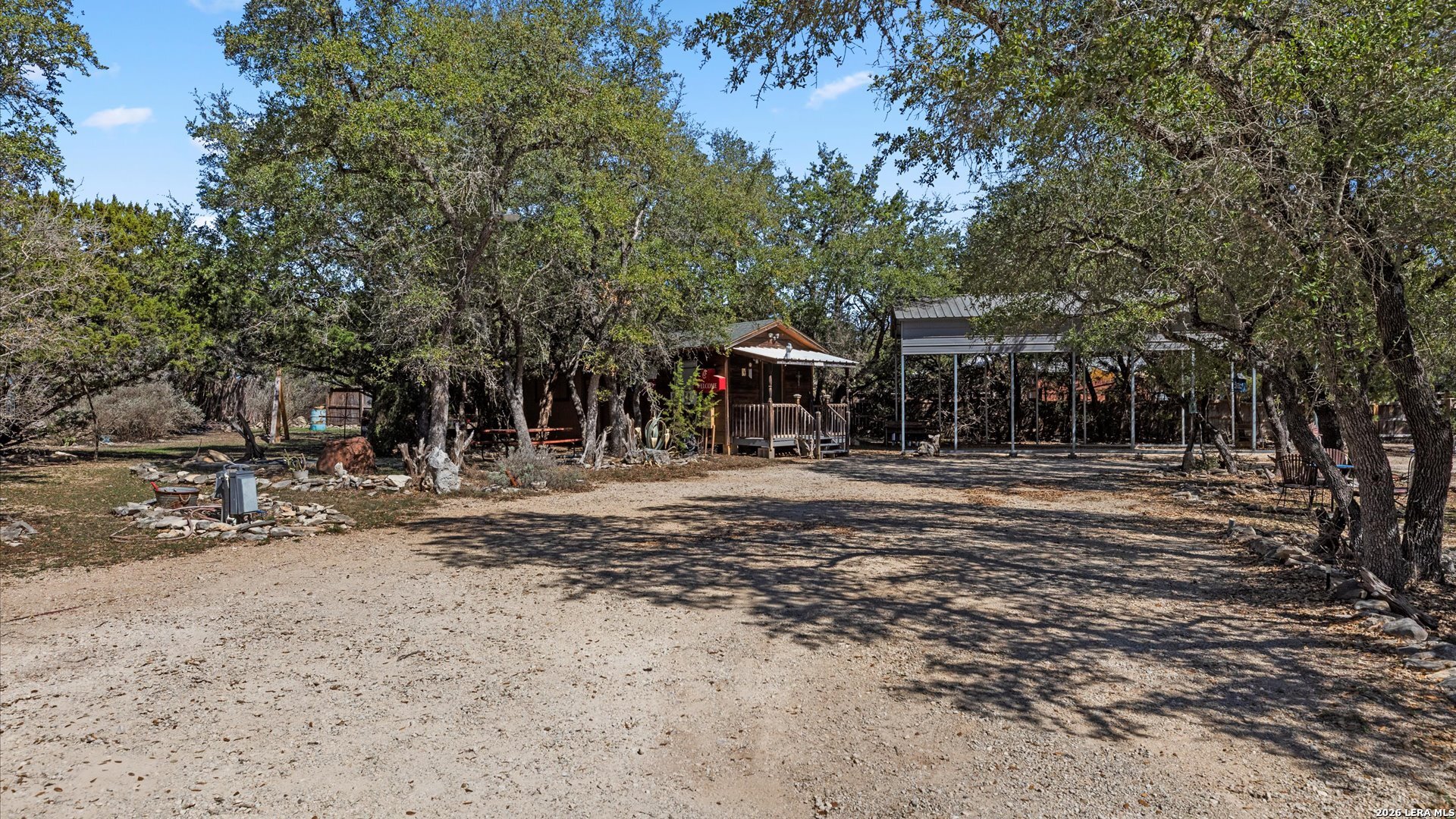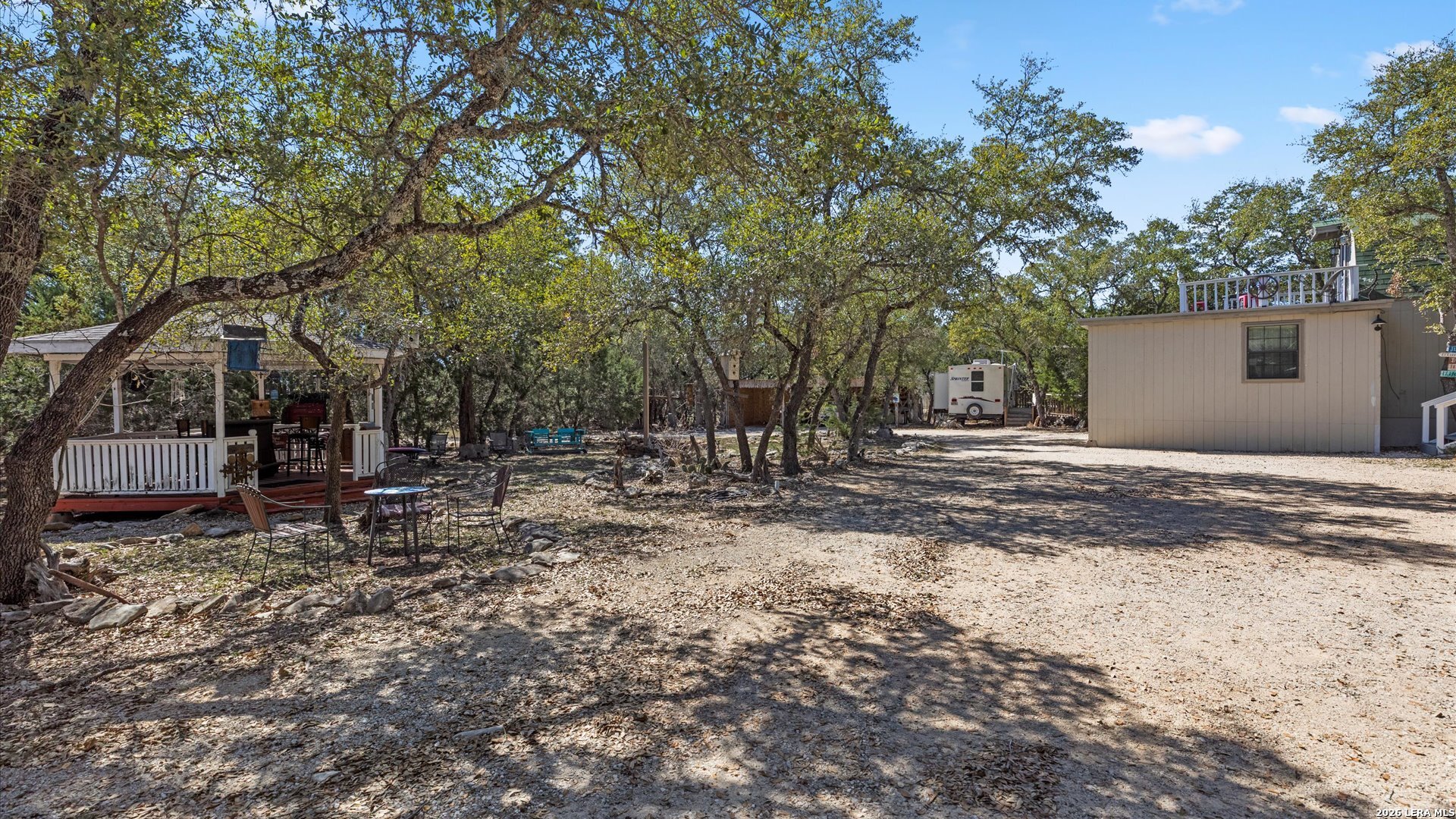Welcome to 857 Derrick Dr, a private Hill Country retreat situated on a level one-acre lot in the gated community of Valero Estates in New Braunfels, Texas. This unique, fully furnished property offers exceptional flexibility, privacy, and move-in ready convenience-ideal for downsizers, multi-generational living, or buyers seeking a peaceful full-time residence or weekend escape near Rebecca Creek and Spring Branch. The main home offers 1,521 square feet with 3 bedrooms and 2 bathrooms, thoughtfully designed for comfort and functionality. Recent kitchen upgrades elevate both style and usability, featuring brand new custom cabinetry, a large farmhouse sink, a spacious walk-in pantry with new shelving, and a double-door refrigerator-creating a beautiful and highly functional space for everyday living and entertaining. The open layout flows naturally into the main living areas, enhancing the home's welcoming and relaxed Hill Country feel. The spacious primary suite serves as a comfortable private retreat, complete with dual closets and a walk-in shower. Upstairs, a large loft bedroom provides flexible space ideal for guests, hobbies, or a quiet workspace. One of the most valuable features of this property is the detached guest cabin, complete with its own bedroom, full bathroom, and washer and dryer-perfect for extended family, visiting guests, or private living quarters. Outdoor living is where this property truly shines. The expansive covered outdoor entertaining area is ready for gatherings and offers space for a future outdoor kitchen. The level one-acre lot provides room to expand while maintaining privacy and usability. Covered RV parking with two hookups and a 15-foot bumper pull included makes this property ideal for RV owners or travelers. Additional covered parking for three vehicles and a circular driveway provide convenience and easy access. Located in desirable Comal ISD with convenient access to Highway 281, Spring Branch, Rebecca Creek, Canyon Lake, and New Braunfels, this gated Hill Country property offers the perfect balance of privacy, accessibility, and lifestyle. Whether you're searching for a full-time residence, private retreat, or multi-generational opportunity, this move-in ready, fully furnished property is ready for immediate enjoyment.