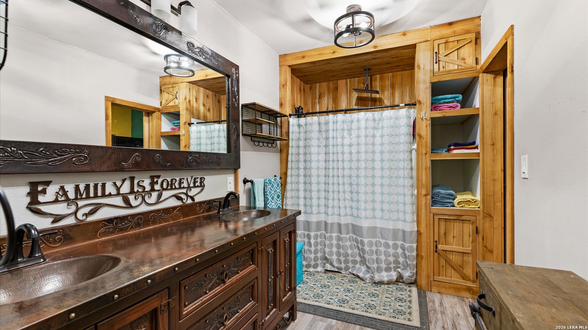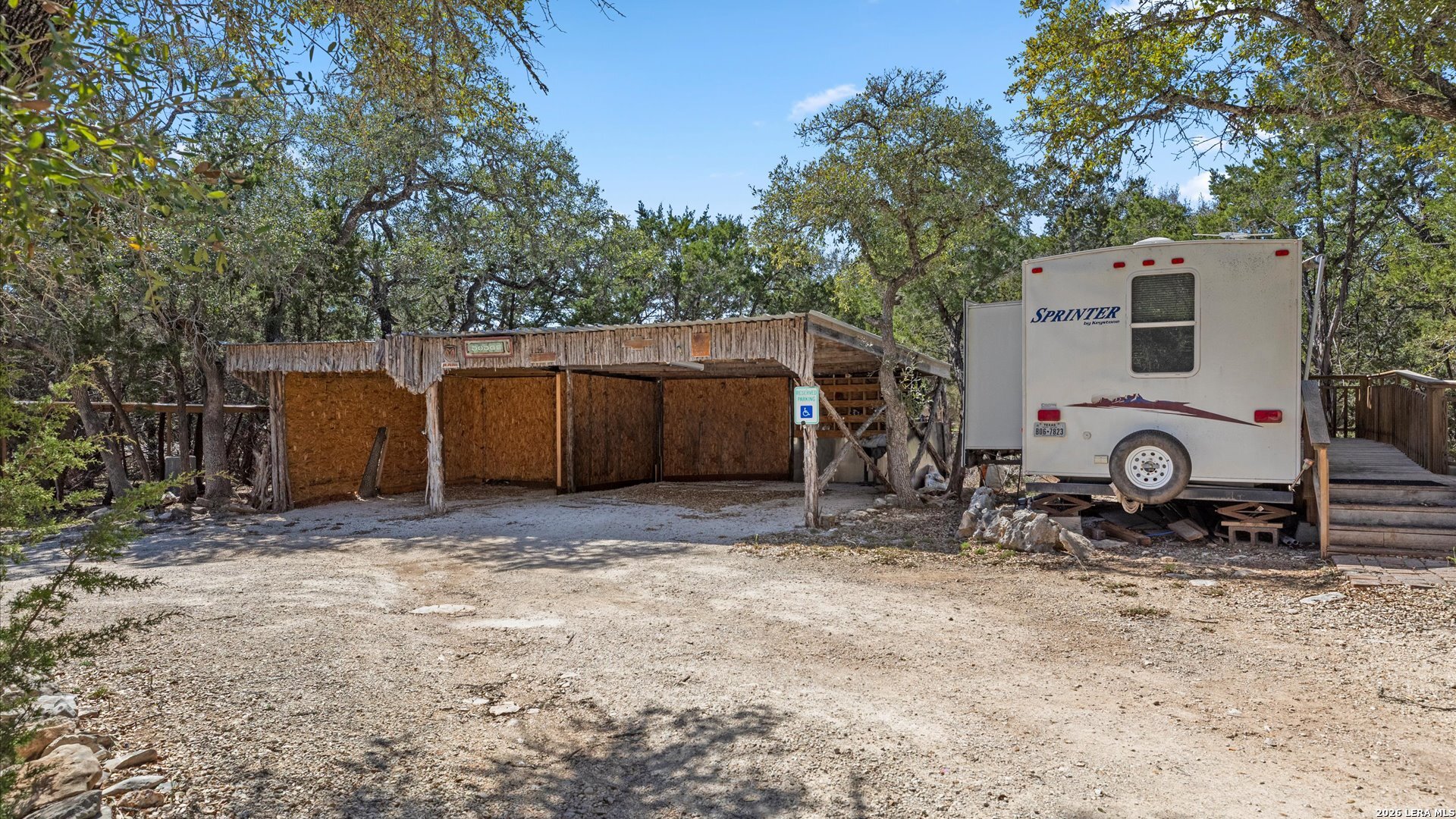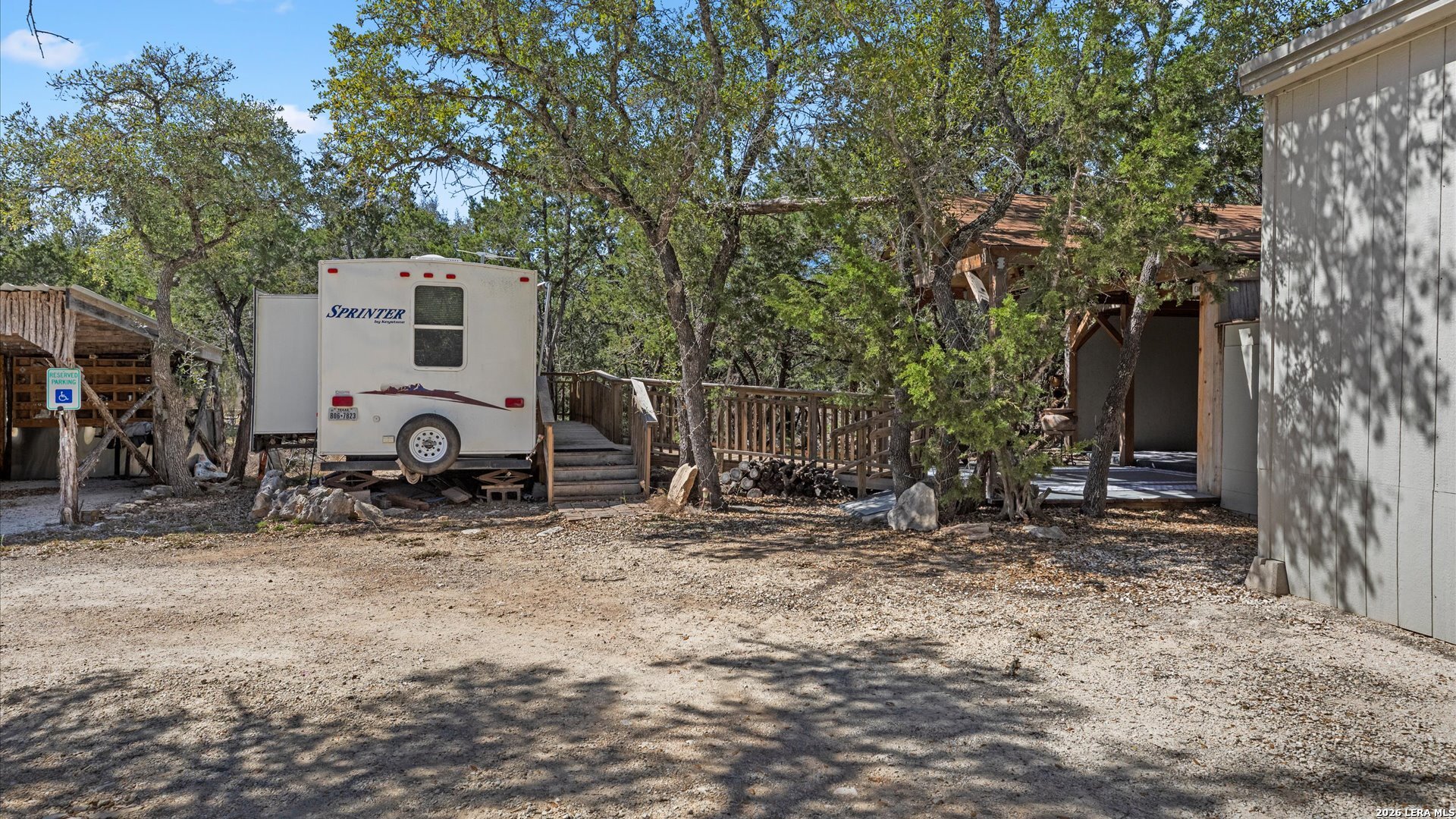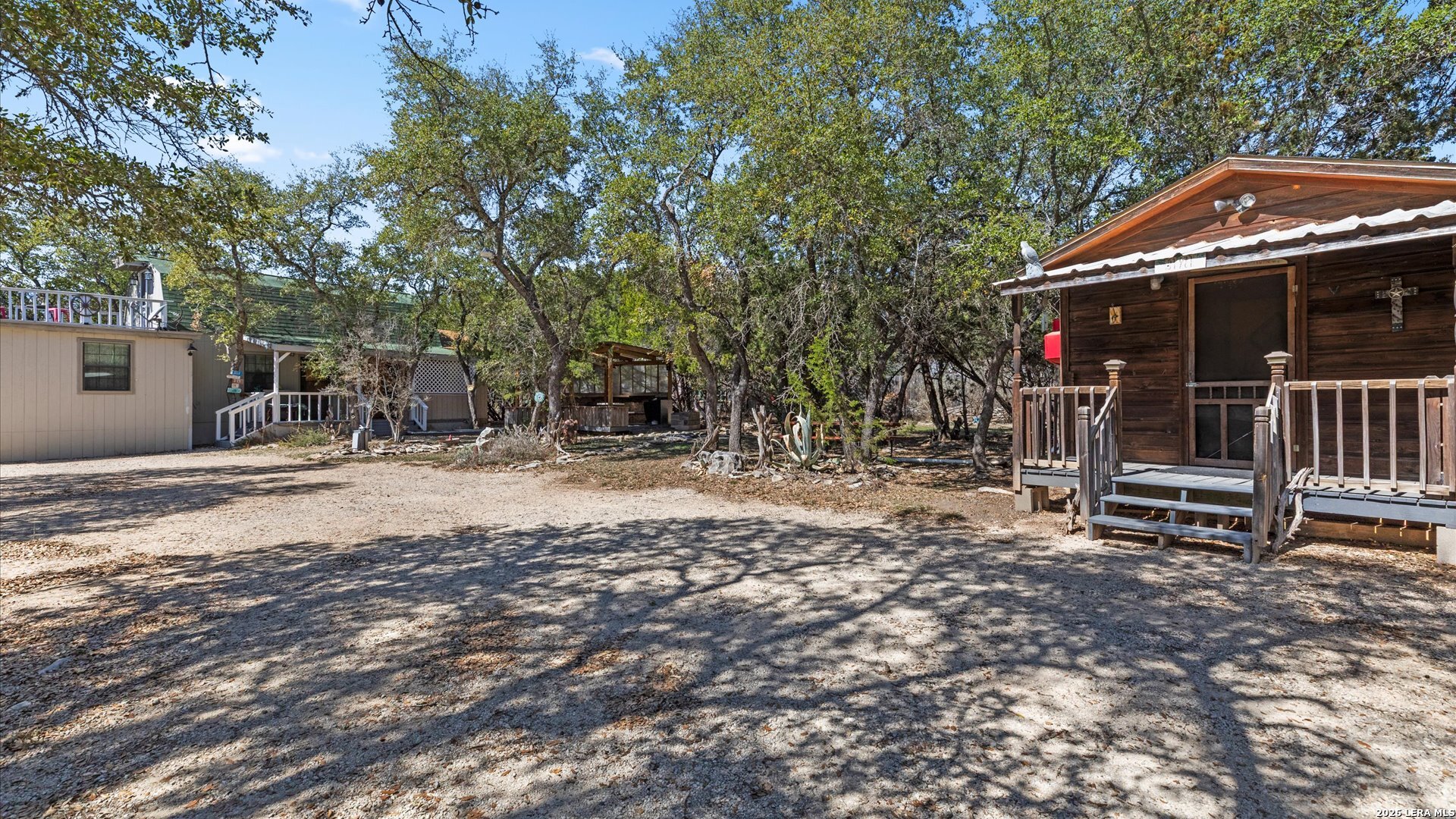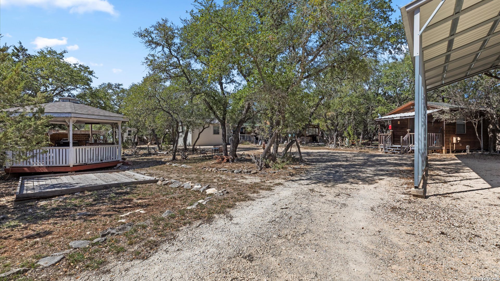 Welcome to 857 Derrick Dr, a private Hill Country retreat situated on a level one-acre lot in the gated community of Valero Estates in New Braunfels, Texas. This unique, fully furnished property offers exceptional flexibility, privacy, and move-in ready convenience-ideal for downsizers, multi-generational living, or buyers seeking a peaceful full-time residence or weekend escape near Rebecca Creek and Spring Branch. The main home offers 1,521 square feet with 3 bedrooms and 2 bathrooms, thoughtfully designed for comfort and functionality. Recent kitchen upgrades elevate both style and usability, featuring brand new custom cabinetry, a large farmhouse sink, a spacious walk-in pantry with new shelving, and a double-door refrigerator-creating a beautiful and highly functional space for everyday living and entertaining. The open layout flows naturally into the main living areas, enhancing the home's welcoming and relaxed Hill Country feel. The spacious primary suite serves as a comfortable private retreat, complete with dual closets and a walk-in shower. Upstairs, a large loft bedroom provides flexible space ideal for guests, hobbies, or a quiet workspace. One of the most valuable features of this property is the detached guest cabin, complete with its own bedroom, full bathroom, and washer and dryer-perfect for extended family, visiting guests, or private living quarters. Outdoor living is where this property truly shines. The expansive covered outdoor entertaining area is ready for gatherings and offers space for a future outdoor kitchen. The level one-acre lot provides room to expand while maintaining privacy and usability. Covered RV parking with two hookups and a 15-foot bumper pull included makes this property ideal for RV owners or travelers. Additional covered parking for three vehicles and a circular driveway provide convenience and easy access. Located in desirable Comal ISD with convenient access to Highway 281, Spring Branch, Rebecca Creek, Canyon Lake, and New Braunfels, this gated Hill Country property offers the perfect balance of privacy, accessibility, and lifestyle. Whether you're searching for a full-time residence, private retreat, or multi-generational opportunity, this move-in ready, fully furnished property is ready for immediate enjoyment.