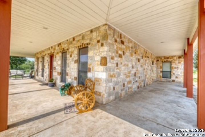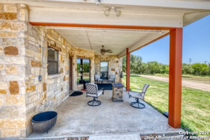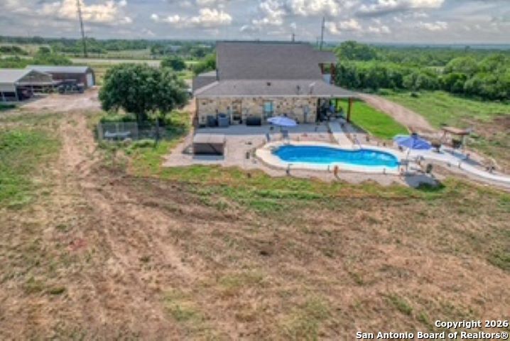 Enjoy peaceful country living with room to roam just minutes from downtown Sabinal. This beautifully landscaped property features a stunning 3,200 sq. ft. stone home offering 4 bedrooms, 2 baths, and a newly carpeted bonus room upstairs. The open concept design showcases brand new tile throughout the entire downstairs, complemented by stained concrete accents, natural stone details, and a striking stone fireplace. The kitchen is designed for both function and style, featuring stainless steel appliances, a granite breakfast bar, farmhouse sink, pot filler, and abundant storage. Expansive wraparound porches provide ideal spaces for relaxing and entertaining. Outdoor living truly shines with an in ground pool and jacuzzi, two very large pavilions perfect for gatherings, a roping arena, horse runs, scenic trails, abundant wildlife, and two permanent storage sheds. A rare opportunity to own a private retreat that perfectly blends space, recreation, and convenience.