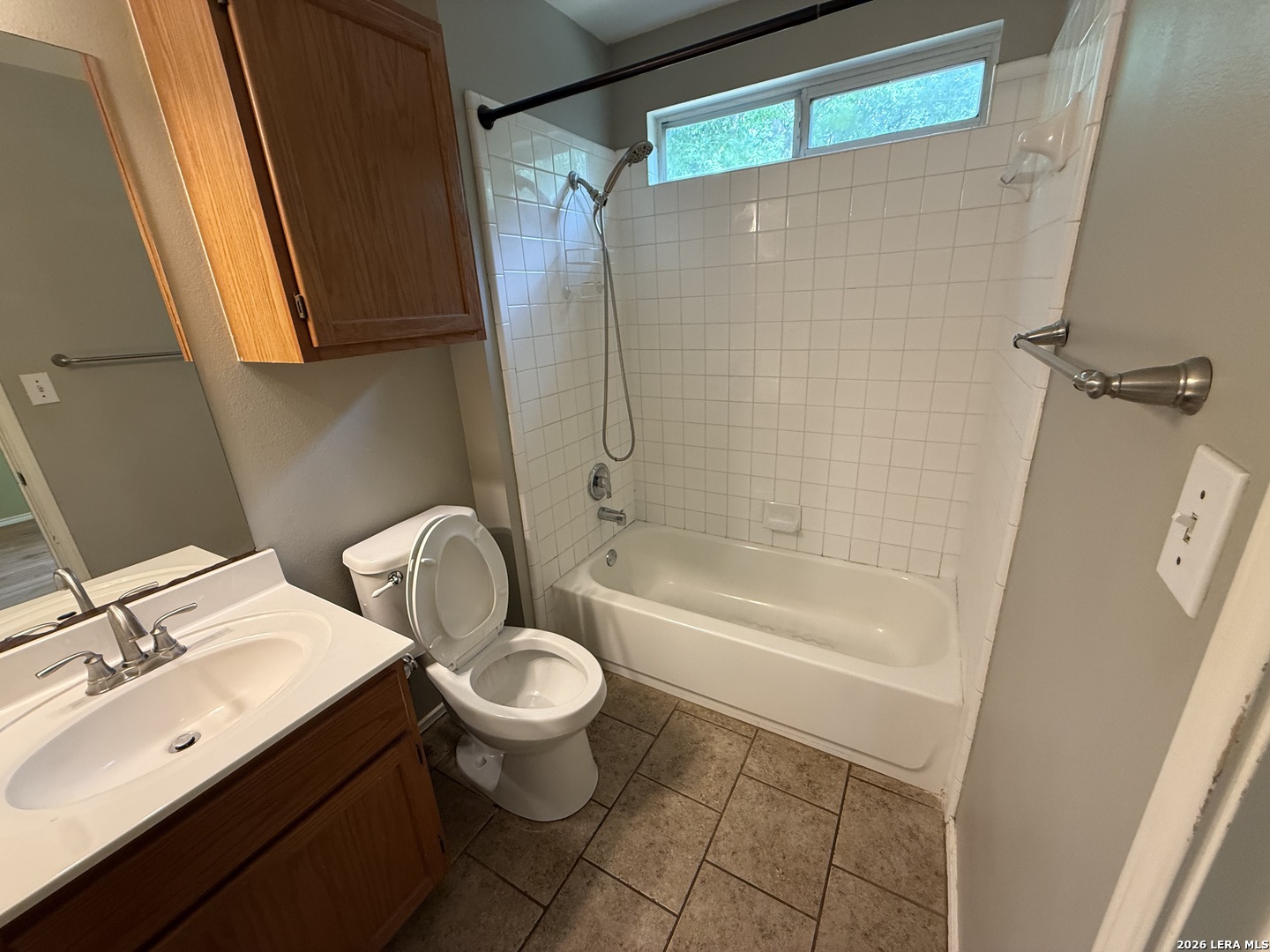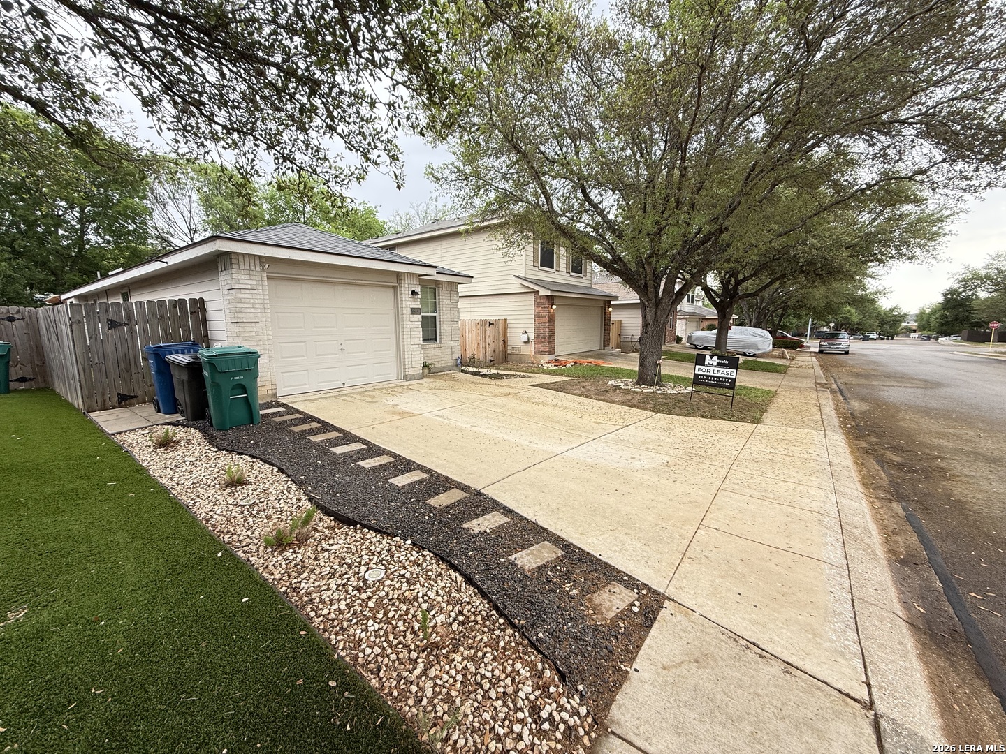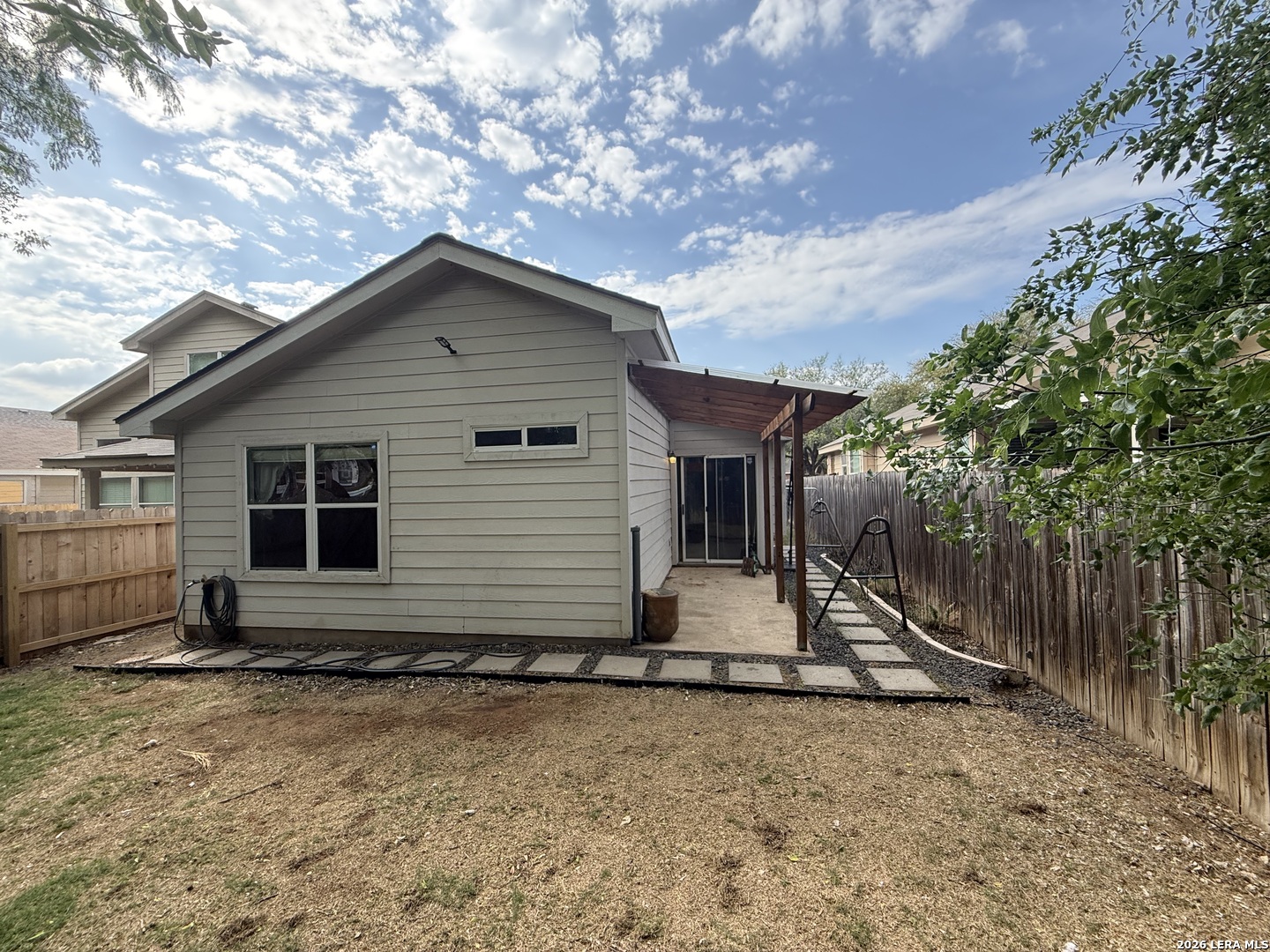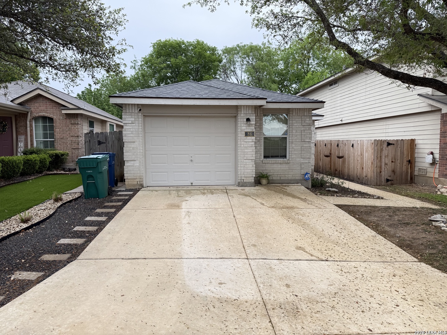 Immaculate single-story home located in the desirable Bluffs at Westchase, just minutes from the Medical Center, USAA, UTSA, shopping, and dining. This well-maintained home offers excellent curb appeal with updated landscaping and a clean, welcoming front elevation. Inside, you'll find no carpet and beautiful tile flooring throughout the main living areas, along with a spacious family room featuring vaulted ceilings and abundant natural light. The layout includes a private study/office-ideal for working from home or flex space. The kitchen offers ample cabinet and counter space and flows seamlessly into the dining area with direct access to the backyard. The primary suite is thoughtfully tucked away for privacy and includes a full bath and walk-in closet. Step outside to enjoy the new pergola-covered patio, perfect for relaxing or entertaining, along with a fully fenced backyard offering privacy and room to personalize.