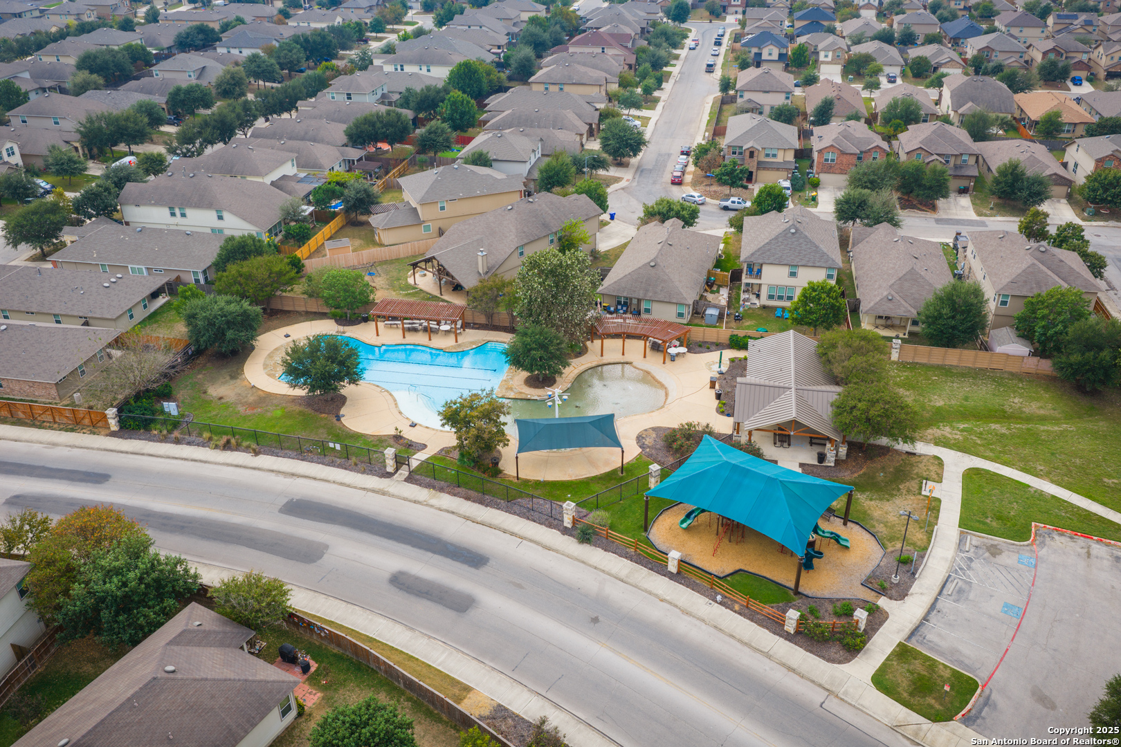 Impeccable 3 Bed, 2 Bath + Office one story home. High ceilings. Granite in kitchen. Gas cooking. Has been used only as a vacation home. Covered patio. Nice private backyard. Beautiful community pool with beach entry and water feature. Sprinkler system. Easy access to 1604. Close to shopping and dining. All furniture available for sale.