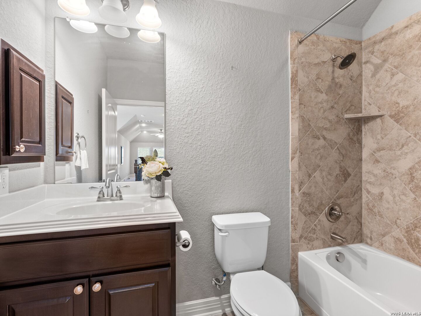Discover the perfect blend of comfort, elegance, and convenience in this spacious two-story home located in the highly desired Napa Oaks community of Boerne, TX. Situated in the quiet back section of the neighborhood, this home offers peaceful surroundings ideal for relaxing and unwinding after a long day-while still providing easy access to I-10 for a simple commute to San Antonio. Located within the coveted Boerne ISD and walking distance to El Mirasol Napa Oaks, the location is as impressive as the home itself. Step inside to an inviting, open-concept floor plan filled with abundant natural light. The updated chef's kitchen features ample counter space, custom cabinetry, a gas cooktop, double ovens, and a built-in microwave-perfect for cooking, entertaining, and gathering. The downstairs primary suite offers outdoor access and a serene retreat from the main living areas. Additional features on the main level include a designated office space, ideal for remote work, and extra storage in the garage for added convenience. Upstairs, you'll find three generous secondary bedrooms, two full bathrooms, a game room with a laundry chute, and a dedicated media room-providing plenty of space for entertainment, relaxation, and family living. Step outdoors to a large backyard surrounded by mature trees-an inviting setting for gatherings, playtime, or quiet moments under the Texas sky. This Boerne masterpiece offers everything you need for stylish, comfortable living. Make it your sanctuary today!