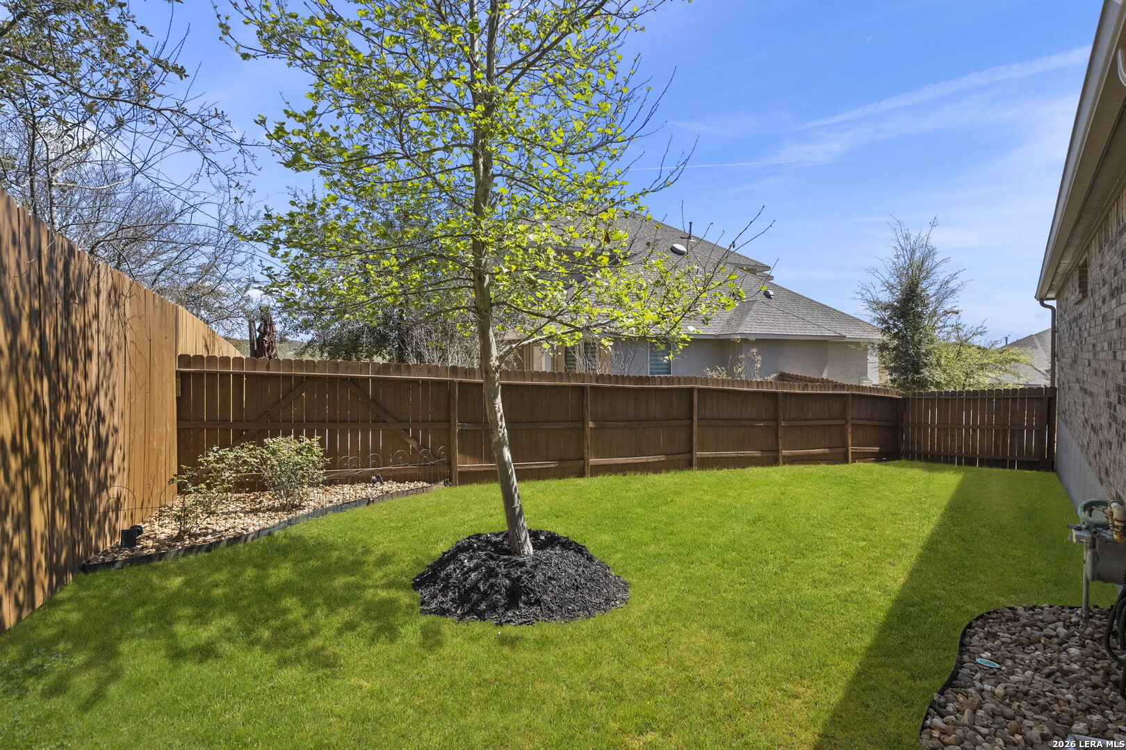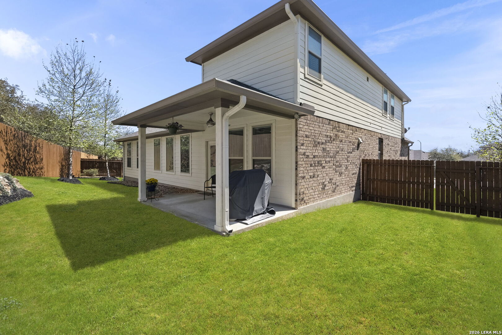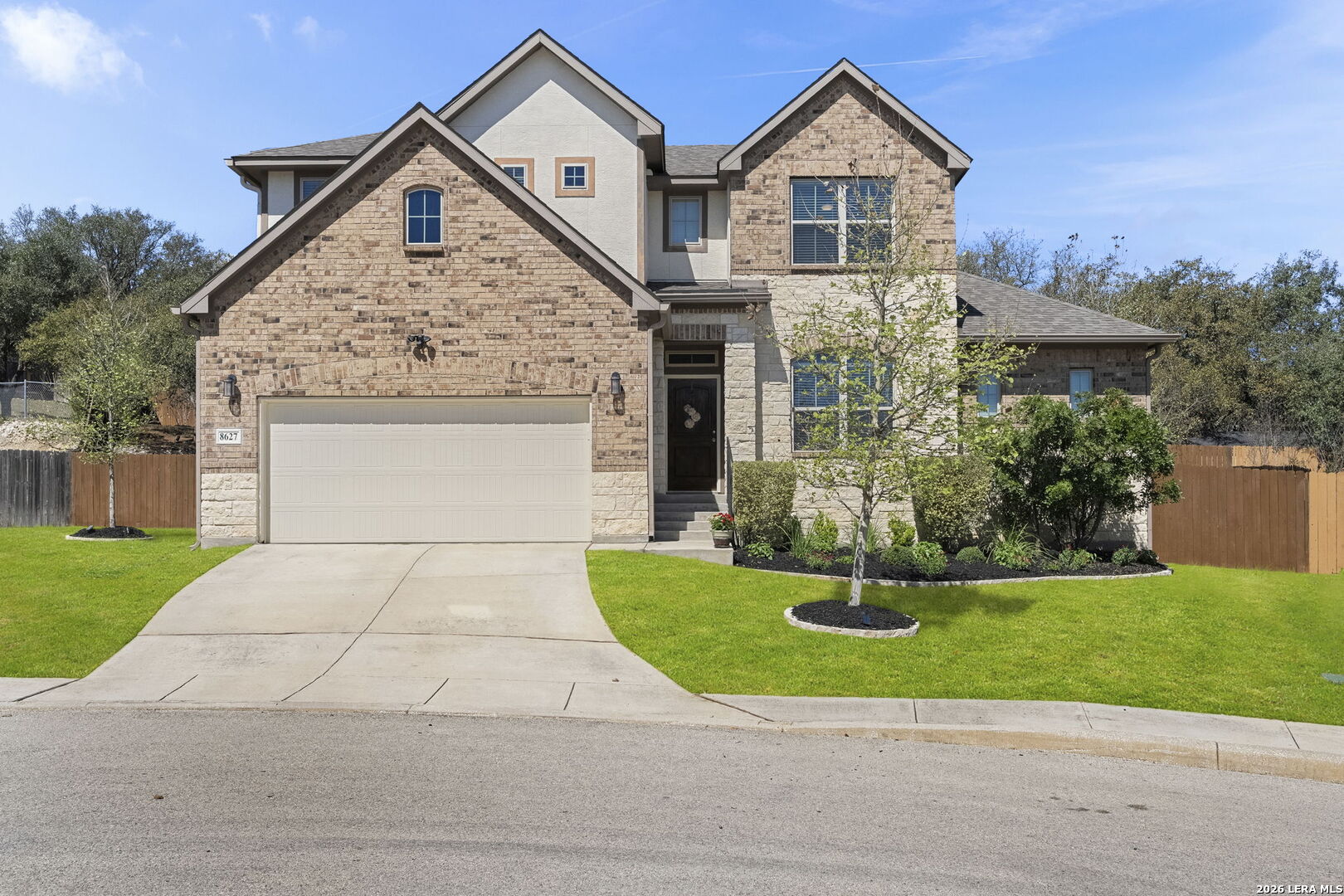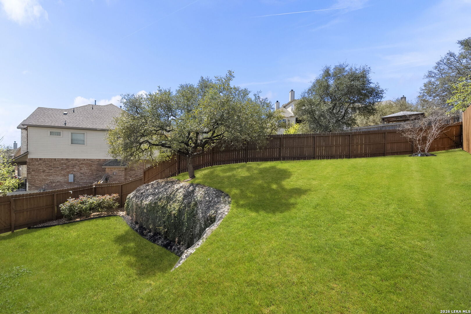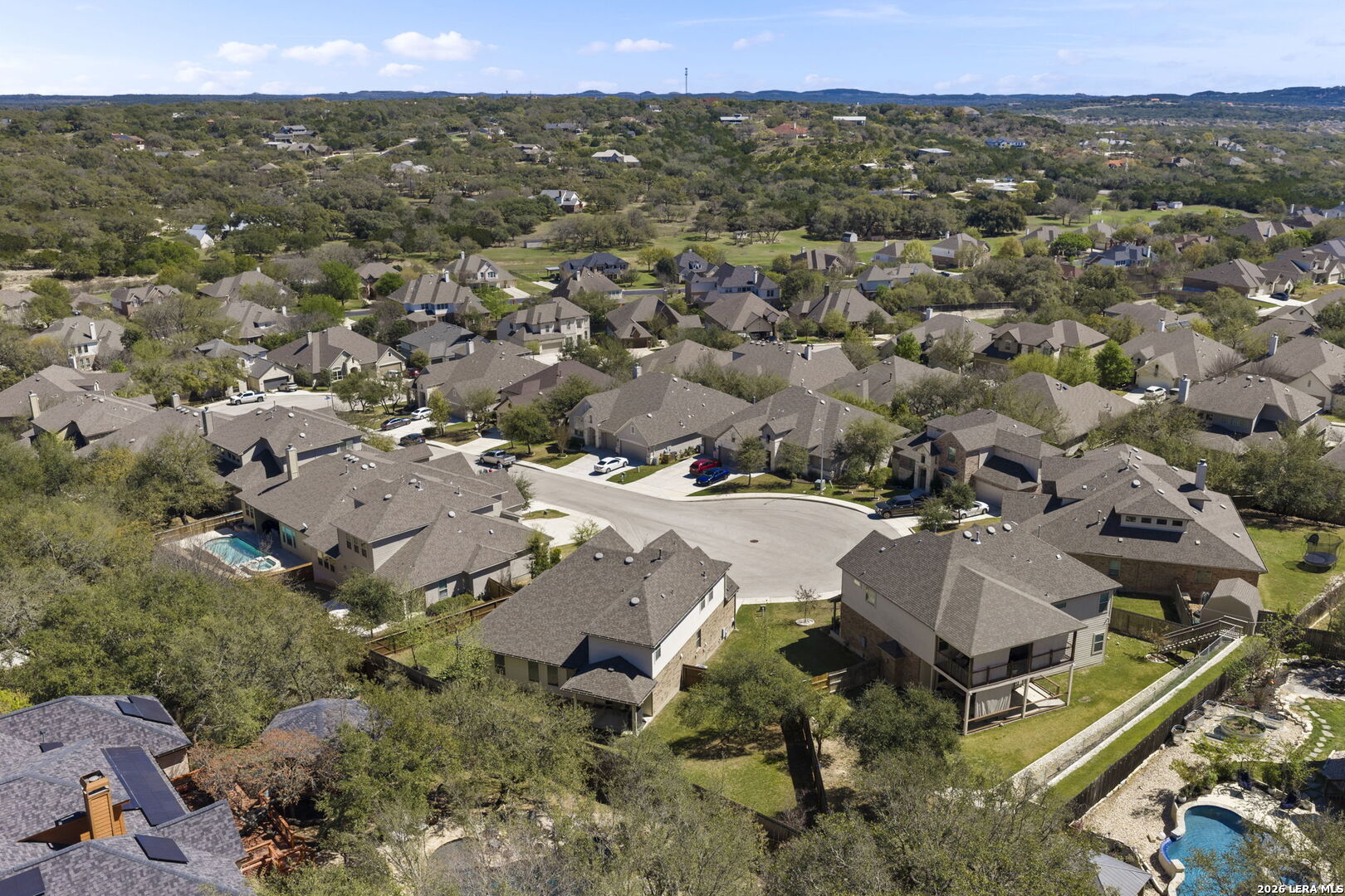 Hidden in the back of a quiet cul-de-sac with easy access to I-10, this sparkling two-story home offers the layout people are looking for with a distinctive Hill Country-style back yard setting. The location is a short drive to Boerne or San Antonio and near two HEBs, dining, and everyday conveniences. The home opens with a welcoming foyer providing access to a private office, then flows into the open concept living, dining and kitchen areas. The kitchen features an eat-in island with generous counter space connecting to the main living areas for socializing or relaxing. The main floor primary bedroom offers a spacious layout with an oversized dual-sided walk-in closet. The primary bathroom includes a long vanity with dual sinks plus plenty of drawer and cabinet space. Upstairs, a second living area offers flexible space for a media room, playroom or privacy to escape. The four bedrooms and two bathrooms upstairs are perfect for a family or visiting guests. Outdoor living is easy with a covered patio overlooking a distinctive large backyard landscape, featuring a natural ridge creating a true Hill Country feel. Move-in ready and meticulously maintained by the current owners, this home offers both comfort and convenience in a picturesque location.