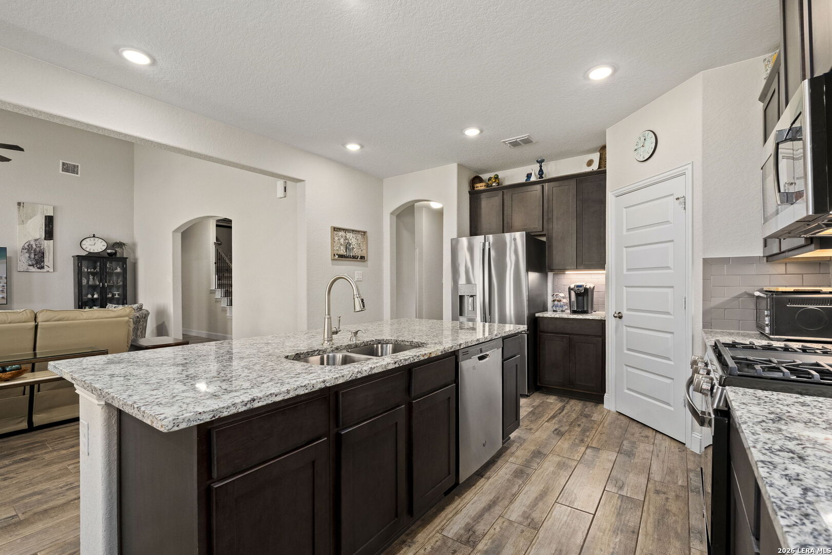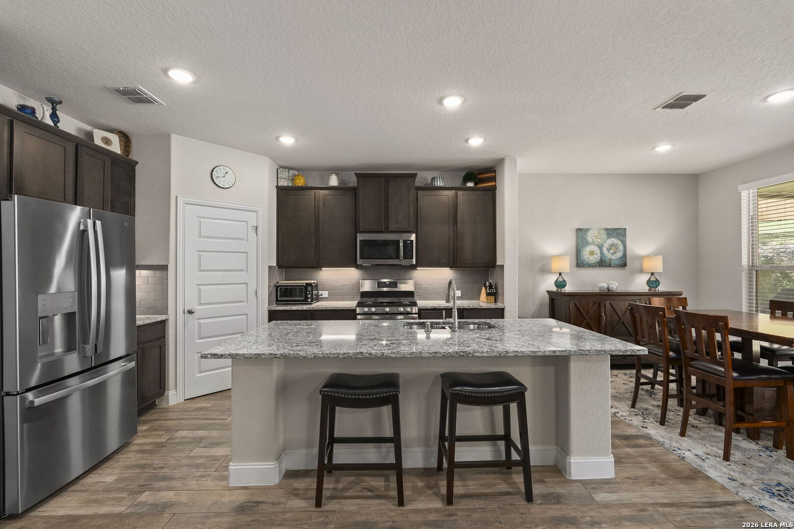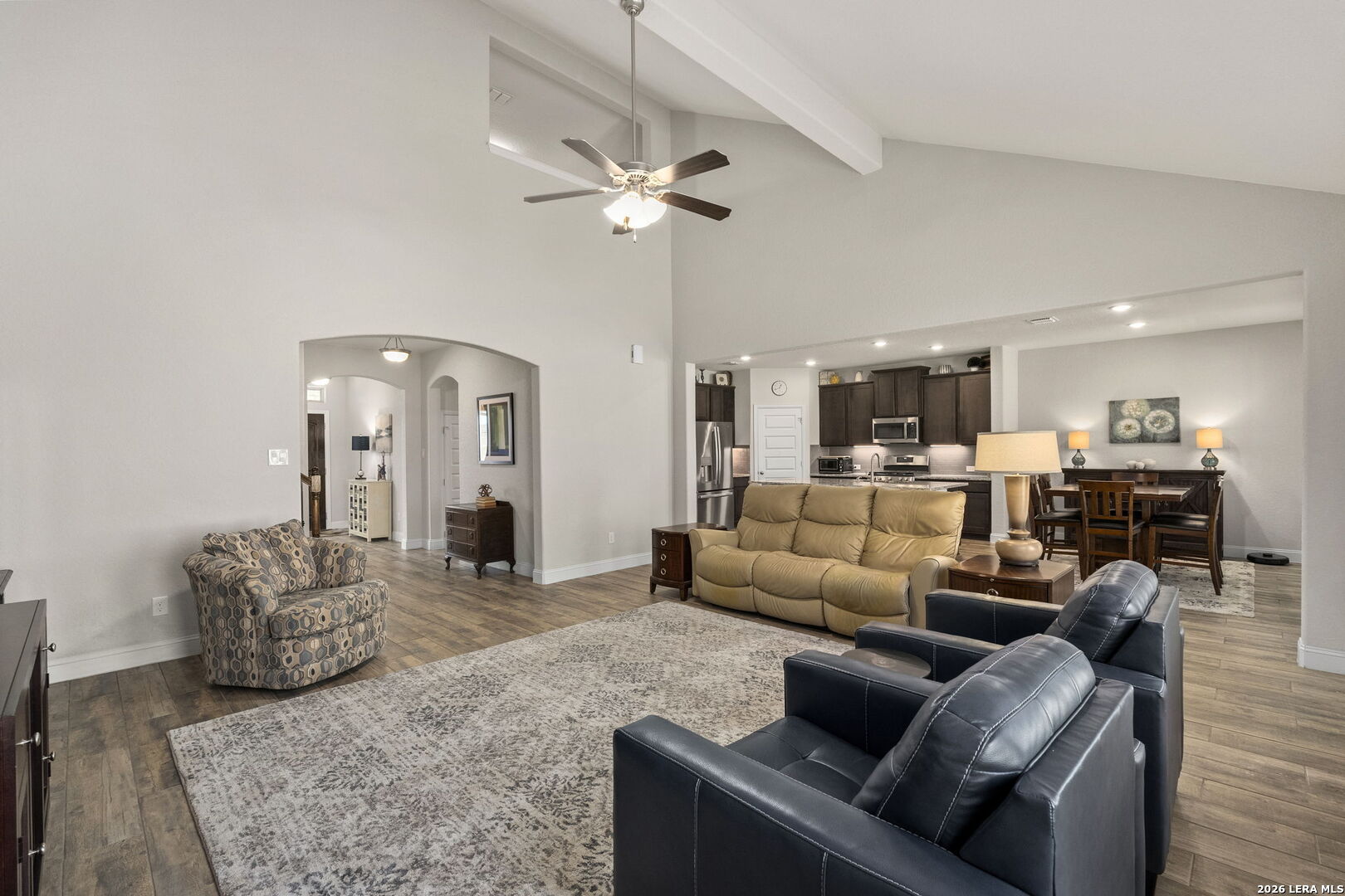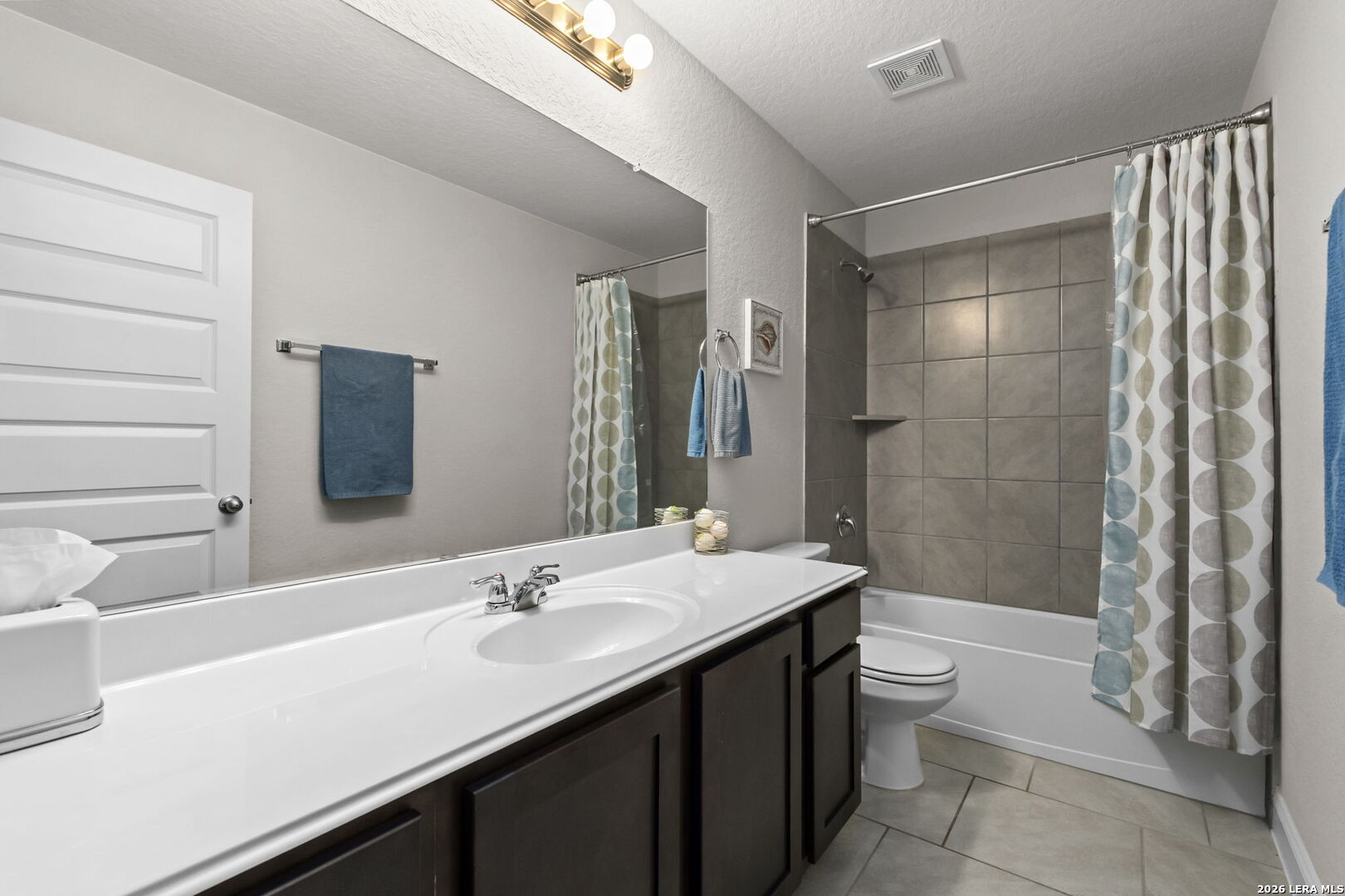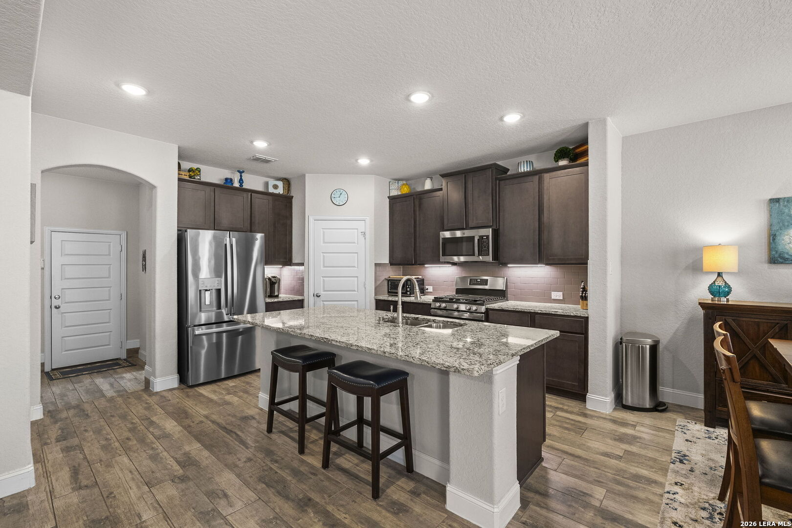 Hidden in the back of a quiet cul-de-sac with easy access to I-10, this sparkling two-story home offers the layout people are looking for with a distinctive Hill Country-style back yard setting. The location is a short drive to Boerne or San Antonio and near two HEBs, dining, and everyday conveniences. The home opens with a welcoming foyer providing access to a private office, then flows into the open concept living, dining and kitchen areas. The kitchen features an eat-in island with generous counter space connecting to the main living areas for socializing or relaxing. The main floor primary bedroom offers a spacious layout with an oversized dual-sided walk-in closet. The primary bathroom includes a long vanity with dual sinks plus plenty of drawer and cabinet space. Upstairs, a second living area offers flexible space for a media room, playroom or privacy to escape. The four bedrooms and two bathrooms upstairs are perfect for a family or visiting guests. Outdoor living is easy with a covered patio overlooking a distinctive large backyard landscape, featuring a natural ridge creating a true Hill Country feel. Move-in ready and meticulously maintained by the current owners, this home offers both comfort and convenience in a picturesque location.