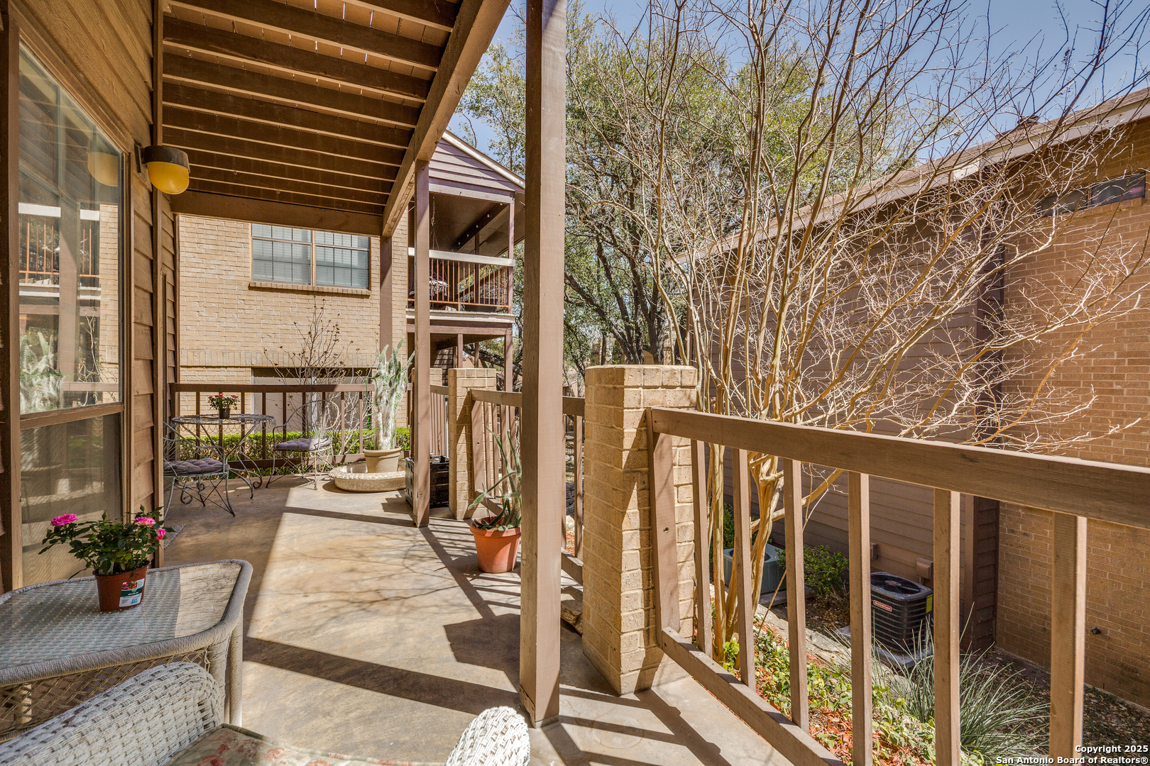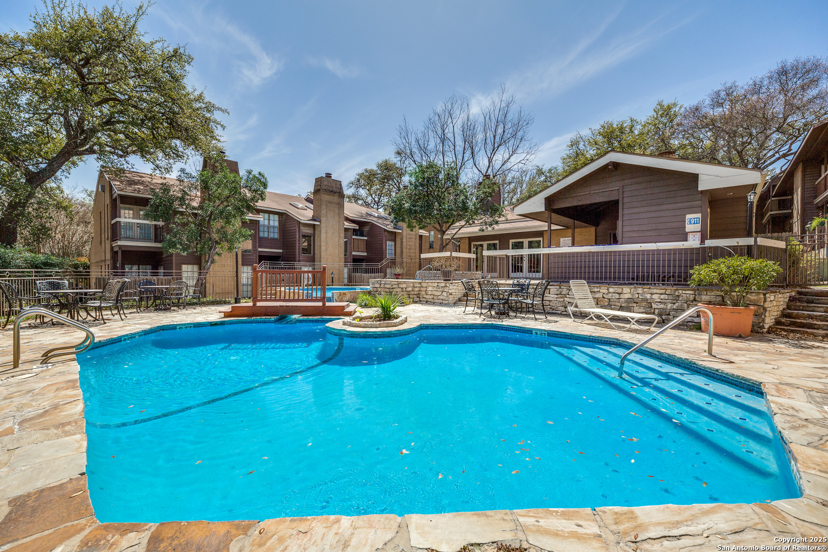 Welcome to this charming and well-maintained ground-floor condo , NO stairs, featuring 2 spacious bedrooms and 2 full bathrooms, offering a smart roommate-friendly layout. Located just minutes from San Antonio's Medical Center, USAA, UTSA, La Cantera, Fiesta Texas, IH-10, and Loop 410, this home blends comfort and convenience in an unbeatable location. The living area showcases rustic wood trim and a cozy gas fireplace, creating a warm, inviting atmosphere perfect for relaxing evenings. The modern kitchen is equipped with sleek countertops, stainless steel appliances, generous cabinet space, and includes a refrigerator, cooktop, and dishwasher. In-unit laundry with a washer and dryer adds to the everyday convenience. Step outside to an extra large private covered patio located just steps from the community pool and spa, perfect for quiet mornings or evening unwinding. This condo also includes two assigned parking spaces (one covered) and sits at the end of a quiet, well-kept complex with additional amenities like a clubhouse. Whether you're a medical professional or simply looking for a low-maintenance lifestyle in a prime location, this move-in-ready home is a perfect fit. Schedule your showing today and see all it has to offer!