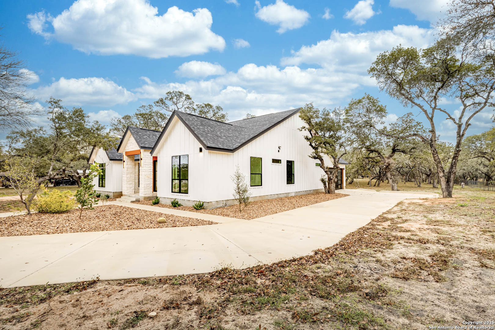 Discover this stunning single-story contemporary home nestled on a beautiful 2-acre level lot surrounded by mature trees. Designed with an open, airy feel, the home features an open floor plan, elegant quartz countertops, and spacious living areas perfect for both everyday comfort and entertaining. Offering 4 bedrooms and 2.5 bathrooms, the layout includes a luxurious master suite complete with a spa-like bath, a large walk-in shower, and a separate soaking tub for ultimate relaxation. With its modern finishes, natural surroundings, and thoughtfully designed spaces, this home provides the perfect blend of style, comfort, and privacy.