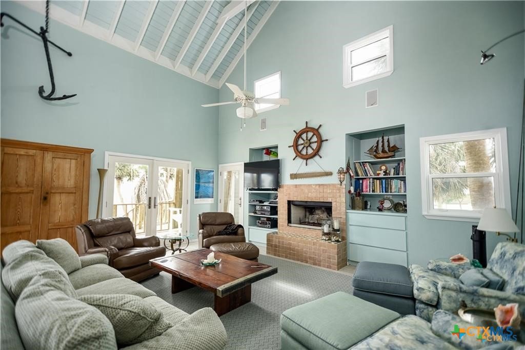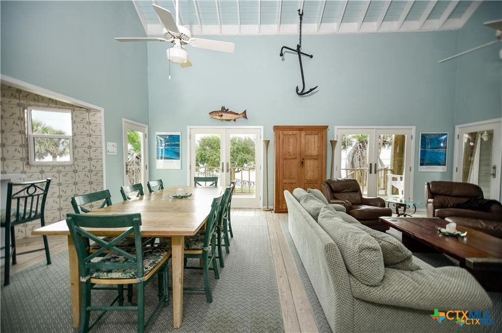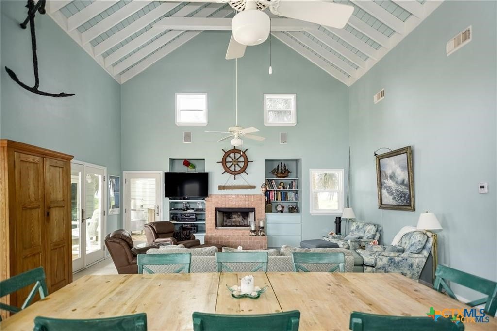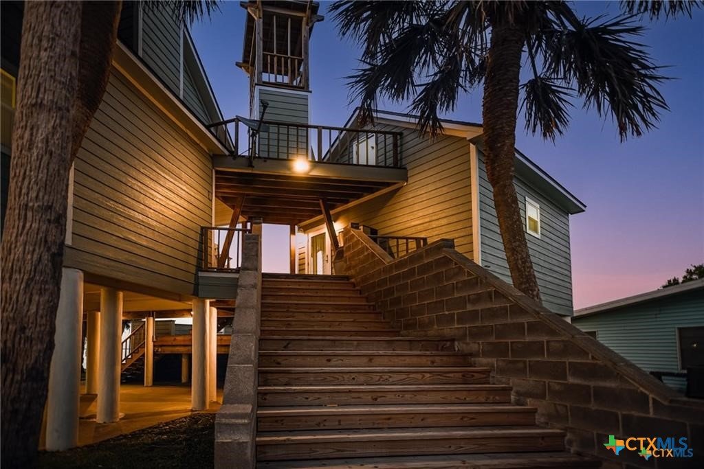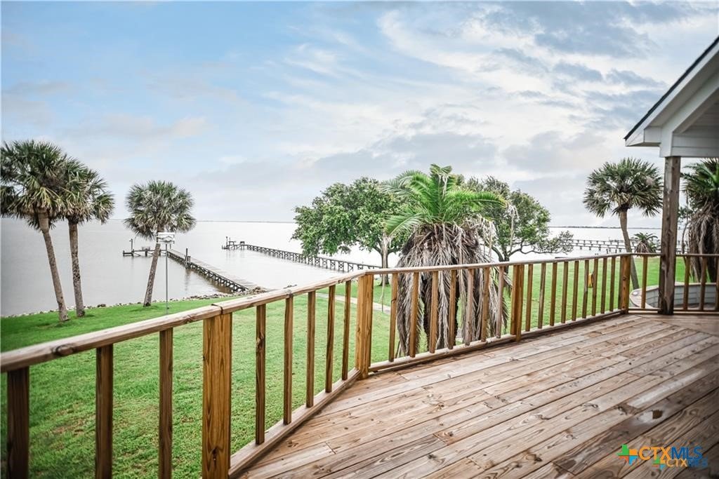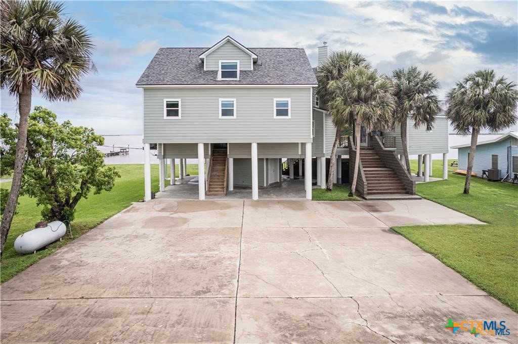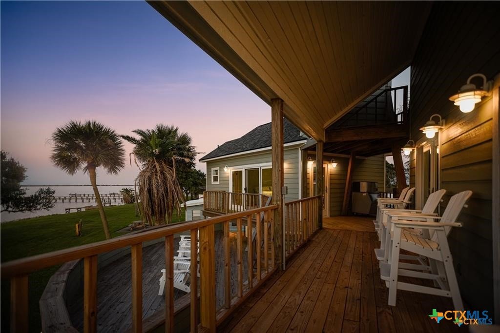 Waterfront luxury awaits in this exceptional bayfront retreat offering breathtaking panoramic sunrise and sunset views. If fishing and entertainment is your vibe, this property is your vessel. This spacious home features 4 bedrooms, 4 bathrooms, and 2 loft/flex spaces, thoughtfully designed for comfort, entertaining, and coastal living. The open-concept main level is filled with natural light and showcases stunning water views from the living, dining, and kitchen areas. A wood-burning tiled fireplace with rustic mantle creates a warm gathering space, while the kitchen offers abundant cabinetry and generous counterspace. Enjoy elevated views from the captain’s nook, where dolphins are frequently spotted. Upstairs, the home provides multiple private suites, including a primary retreat with double vanity, walk-in shower, spacious closet, and covered balcony overlooking the bay. A separate guest suite across the covered deck offers a king bed, sitting area, and private bath—ideal for visitors or rental flexibility. Additional bunk accommodations allow the home to comfortably sleep up to 16. Below the home is ample covered parking and storage, plus an additional shed and mature trees on a level lot. Located on a quiet dead-end road with neighboring ranch land across the street, this property offers a peaceful and secluded escape. Recent updates include fishing pier, roof, siding, and hurricane-rated doors and windows. Additional boat house with 4 slips can be included at the nearby marina for an additional cost of $25k per slip. An excellent personal getaway and strong income-producing opportunity. schedule your private tour today.