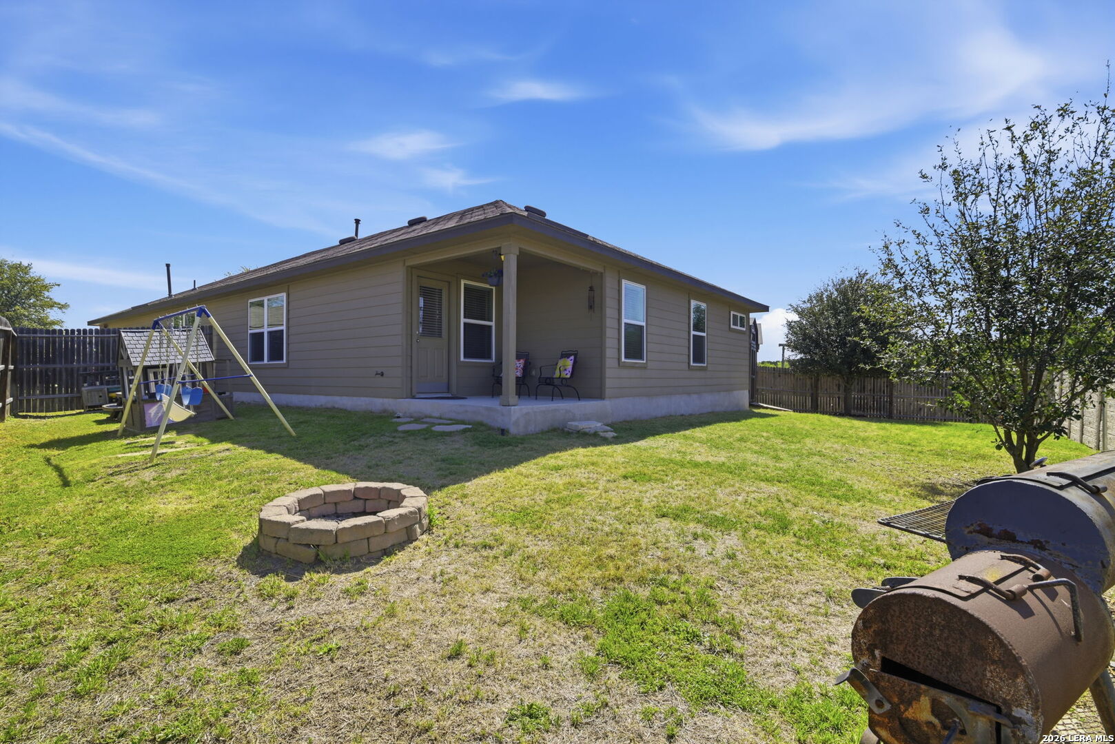 4 bedroom 2 bath one story home with open floor plan on a greenbelt. This meticulously maintained home offers a perfectly balanced open concept that creates a welcoming atmosphere. The oversized windows in both the living and dining room allow the natural light to flow through the home. The spacious kitchen comes equipped with granite countertops, generously proportioned cabinets providing plenty of storage space plus a breakfast bar conveniently located to serve quick snacks or to make a nice spread for family gatherings. Two secondary rooms are situated toward the front of the home along with a shared guest bathroom, the third bedroom and utility room sit off of the kitchen. The large master suite is tucked away at the rear of the home that includes a garden tub, separate shower, and dual vanities. Enjoy the beautiful spring weather outback under the covered patio. This sprawling fully fenced backyard promotes a secure & private oasis with plenty of room to play, extra storage provided in the spacious shed equipped with shelving. Lots more to enjoy and appreciate within the Valley Ranch community, Full access to the beautiful amenities including sports courts, fitness center, fishing dock & stocked pond, swimming pool & water slides, playground, and a outdoor pavilion. Conveniently located near Lackland AFB, Sea World, Alamo Ranch shopping center, short distance from highways 211, 1604, 410 and 151.