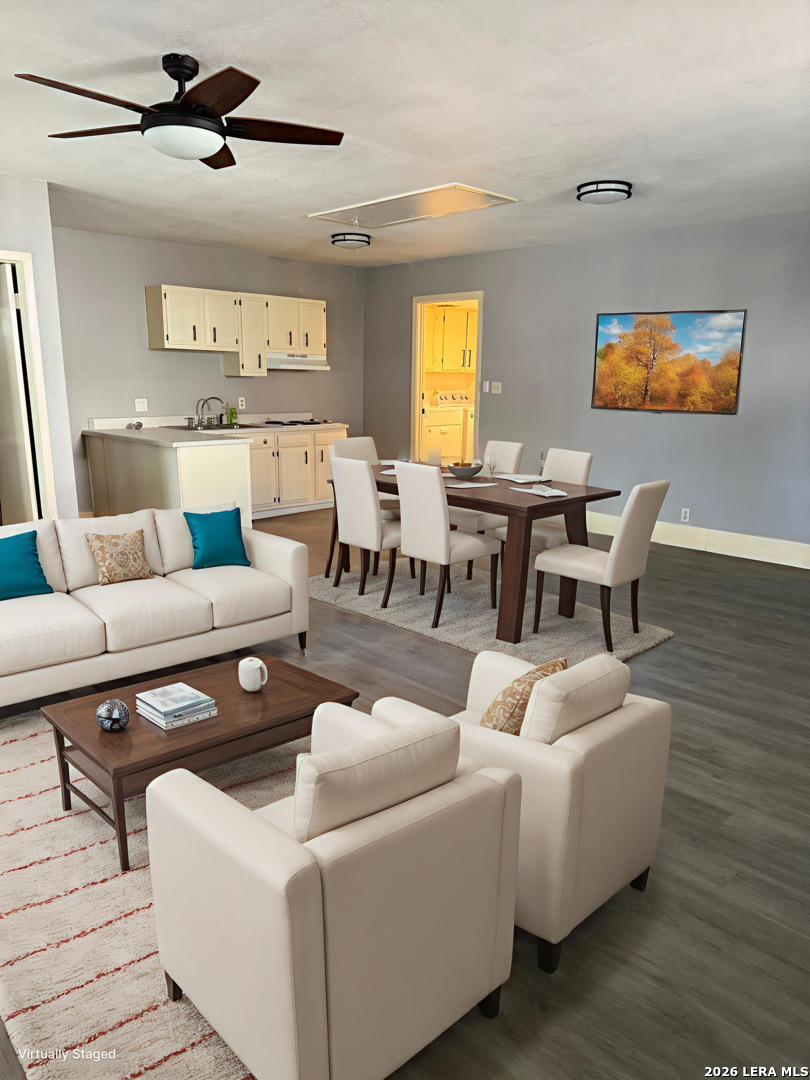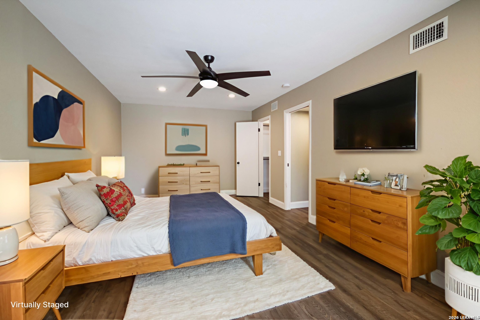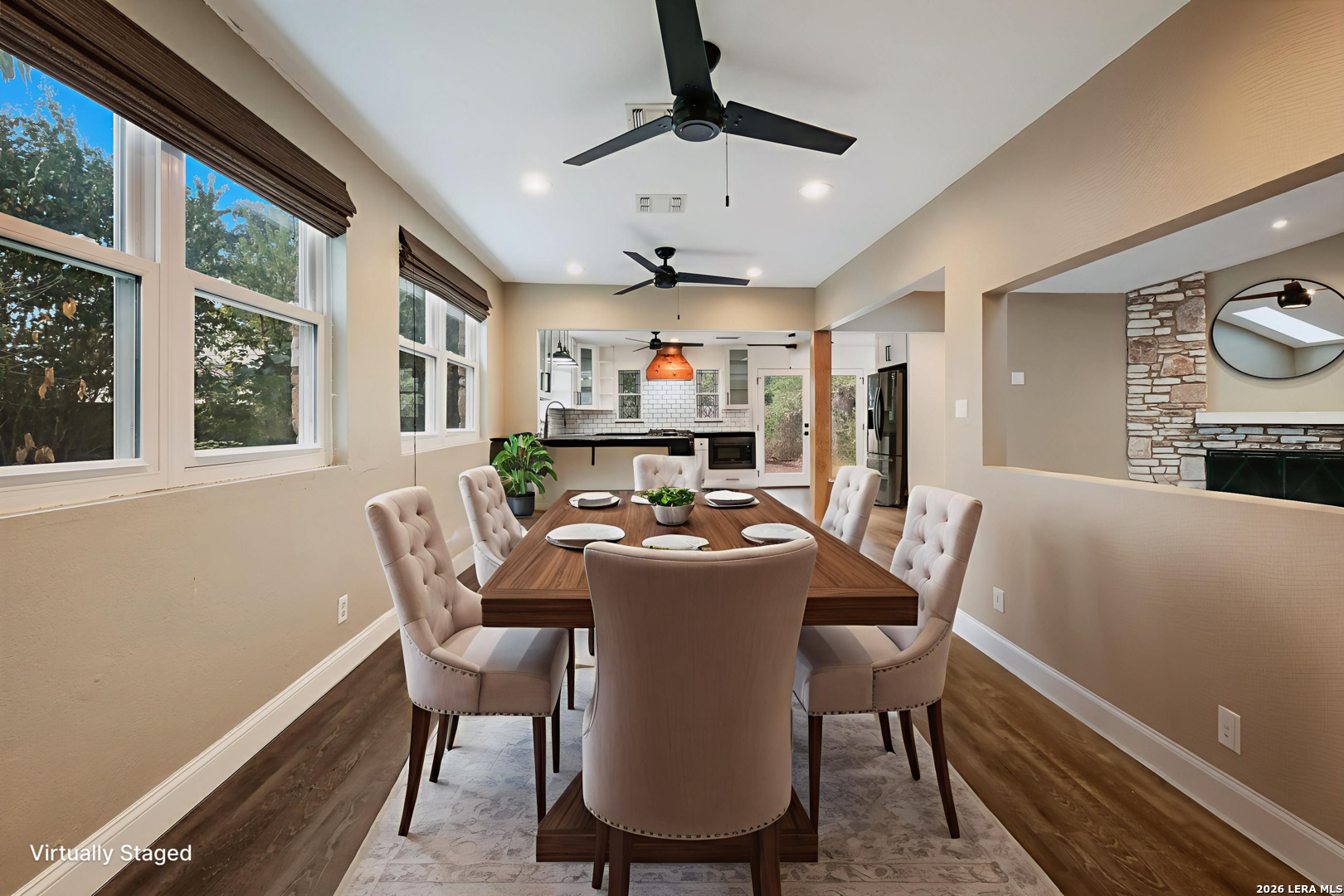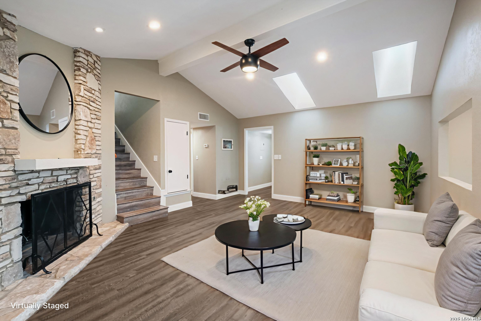 MULTI-GENERATIONAL HOME, Modern Industrial farmhouse with an Additional Private living area with its own entrance! Also equipped with its own kitchen and full bath. Perfect for Mother-in-Law, Parent, College Student, Guests, or Rental Income. This home offers modern living with luxury vinyl plank flooring throughout. The skylights allow natural light to bring out the beauty of this industrial home and custom kitchen featuring ceramic wood tile. It comes with matching SAMSUNG appliances, including the Refrigerator. Home also features antique lead glass windows from a prominent English designer, well known in the San Antonio Art Community. This home features an open, spacious floor plan, great for entertaining and Holiday gatherings. Recessed lighting and large ceiling fans throughout, leathered granite countertops, and vessel sinks in the bathrooms. Great Neighborhood with no HOA! Located in the Judson ISD! Easy access to IH-35 and just minutes from IKEA, The Forum, Randolph AFB, Fort Sam Houston, shopping, dining, and much, much more! This gem won't last long -schedule your showing today!