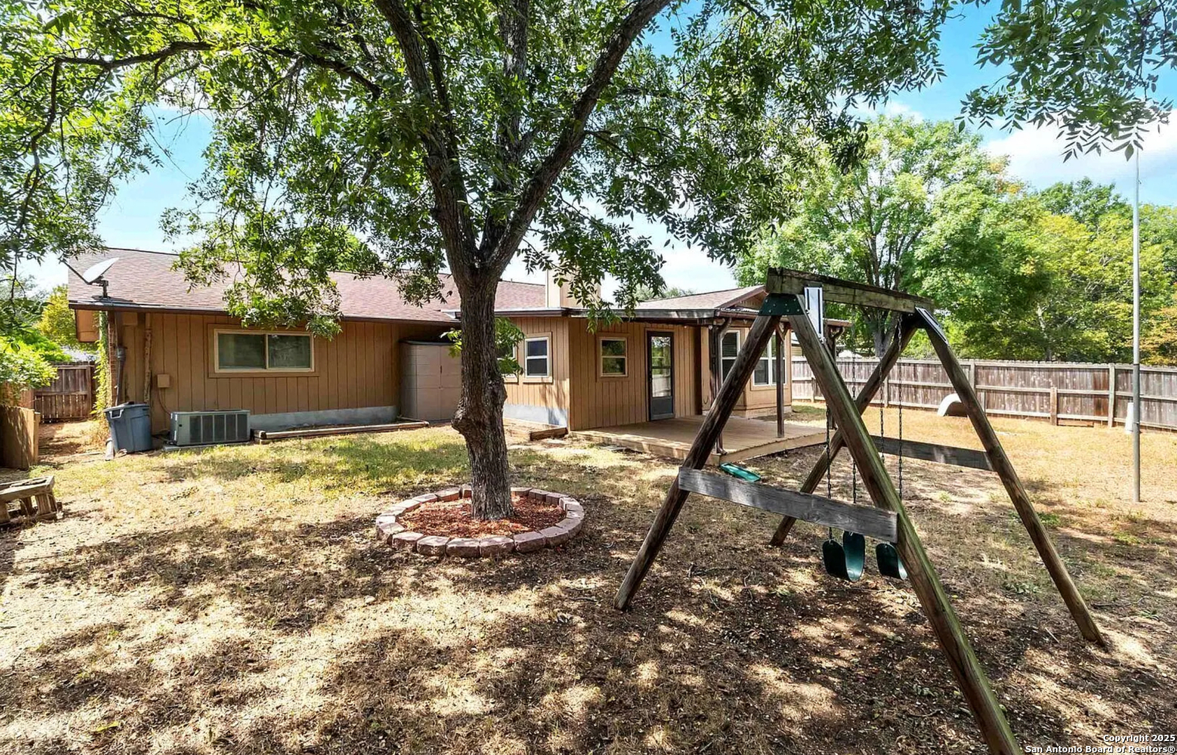 Nestled at the end of a quiet subdivision, this spacious 4-bedroom, 2-bath home offers comfort, privacy, and convenience. Featuring high ceilings, a large living area with a cozy fireplace, and generously sized closets throughout. The enclosed sunroom room is ideal for pets, hobbies, or a relaxing retreat. An oversized garage easily fits large vehicles. Enjoy no rear neighbors - the property backs to a greenbelt with direct backyard access to Leon Creek Park, featuring jogging and biking trails, a playground, and more. Fully fenced backyard with a covered patio makes outdoor living a breeze. Centrally located just minutes from shopping, dining, Medical Center, USAA, UTSA, and with easy access to Loop 410, 1604, and Hwy 16. Thanks for showing!