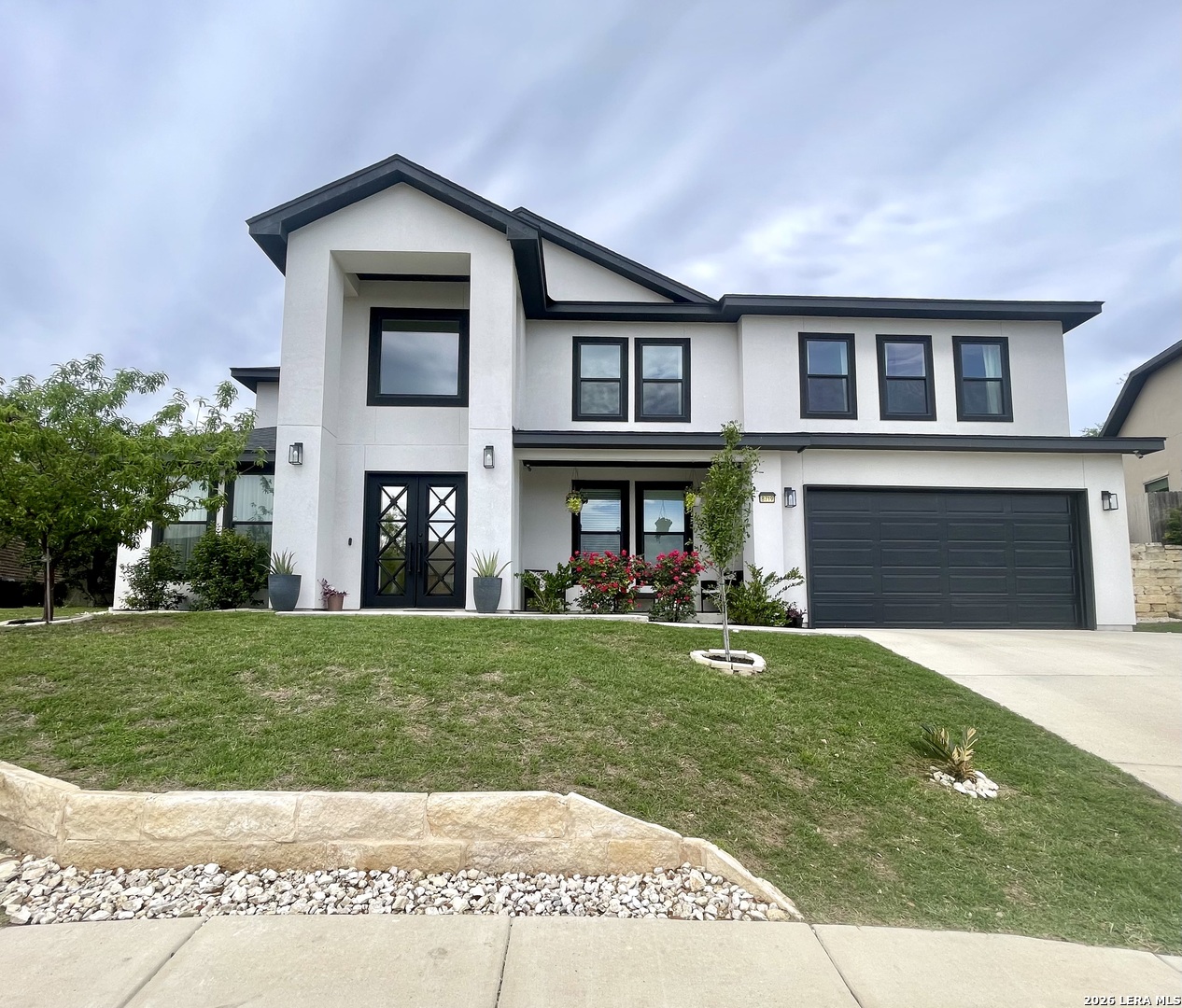 Welcome to this 1.5 story custom built french modern home just 2 years old in the gated Napa Oaks community. Tucked on a quiet cul-de-sac, wider lot, atop of a hill with views of Fair Oaks, this home is the ideal blend of functionality and style. The master room and a secondary bedroom with full bathroom situated on 1st level, and 2 other bedrooms with 2 full baths and an oversized family room for entertaining upstairs. The house has been insulated with blown in foam spray for reduced energy bills. The kitchen offers plenty of cabinets, quartz countertops and backsplash, a large built in pantry. The 2 story inviting foyer and living room with an electric fireplace and quartz surround, built in nooks and shelves, hardwire sconces throughout the house, engineered floors , electric car charger, security cameras with Mvr video recording and monitoring from the app. Beautiful landscape to relax and watch a dreamy sunset on the patio or sip a coffee on the front porch.Beautiful community pool. Acclaimed Boerne ISD. Located 12 min to La Cantera Mall/Rim.