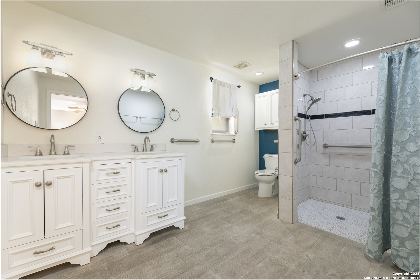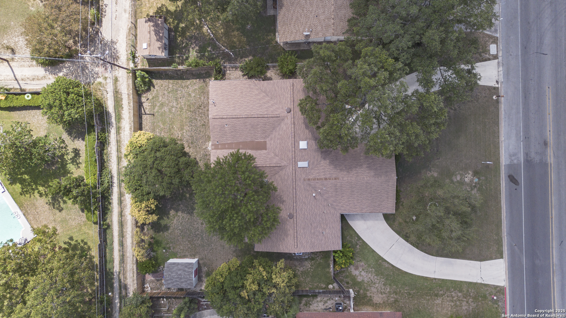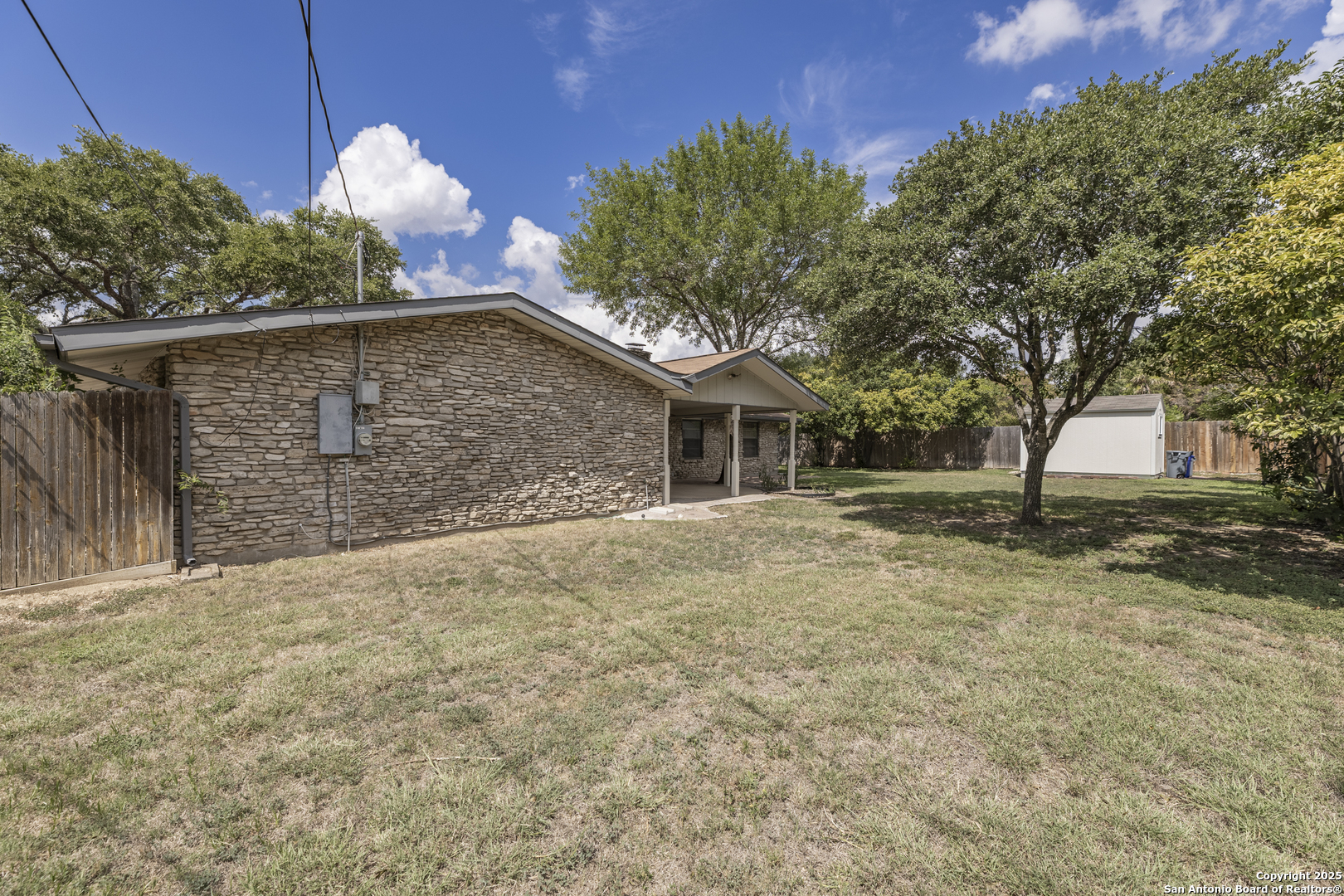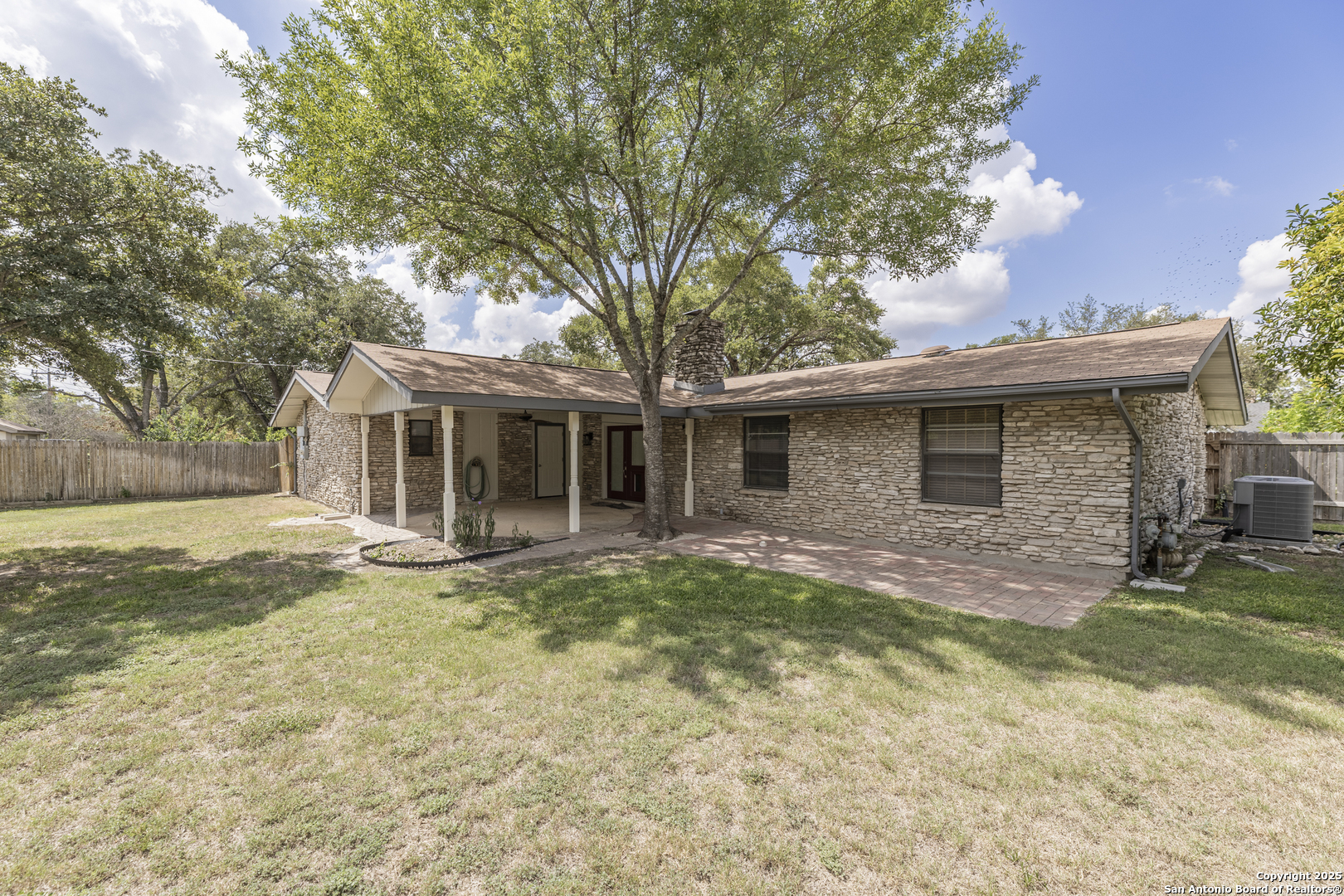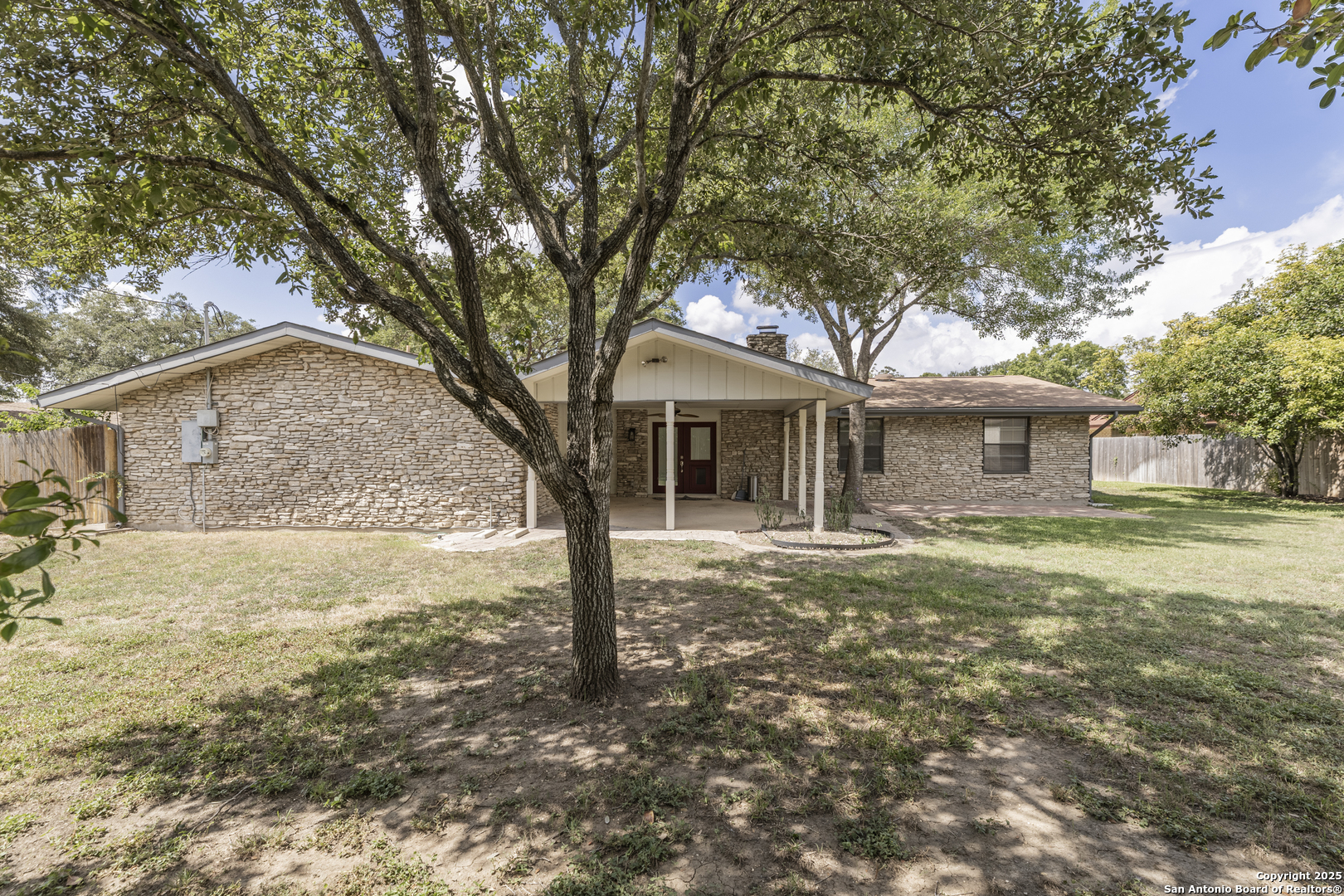 Spacious, immaculately maintained and upgraded 2400+sqft / 3bdrm, 2-bthrm residence offering new flooring and designer upgraded bathrooms. The remodel was done by the owners- not a flip house- it was done right with love and excellence over the last 7 yrs. It includes the whole house re-wiring which is an important safety concern for many older homes in Windcrest. Newer roof, HVAC, water heater- this is a clean, move in ready home! Has great ADA modifications in place for those who have mobility concerns. Just down the street from the elementary school in the highly sought-after Windcrest subdivision. Home sits on a generous .344-acre lot with great trees and combines timeless design with unique character. Low maintenance stone exterior and circular driveway are framed by mature trees create a welcoming first impression. A 3-car portico provides plenty of parking and convenience plus a new shed in back yard for additional storage and 2 additional outdoor accessed storage closets make this house incredibly functional. The covered patio out back is plumbed with gas for outdoor grill and perfect for hosting gatherings or simply enjoying the tranquil, shaded yard. The spacious living room with vaulted ceiling features a curved front gas plumbed fireplace as its centerpiece, enhanced by charming wood beams that extend into the kitchen, creates a cohesive Mid-Century Modern appeal. The kitchen is designed with both function and comfort in mind, offering ample space for preparing meals while staying connected to the heart of the home. Each bedroom offers generous proportions, with natural light filtering through the many windows. The expansive level lot provides plenty of room for play, gardening, or entertaining, making it a true retreat within the city. Windcrest is a community known for its beautiful tree-lined streets, parks, and a welcoming neighborhood atmosphere, this home offers not just a place to live, but a lifestyle. With easy access to shopping, dining, and major highways, convenience is always close by while still enjoying the peace and charm of an established neighborhood. Don't miss the opportunity to make this timeless property your own - schedule a same day private showing today!