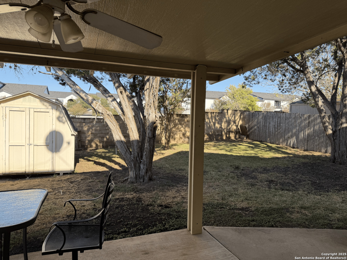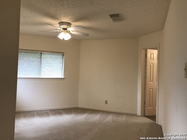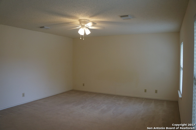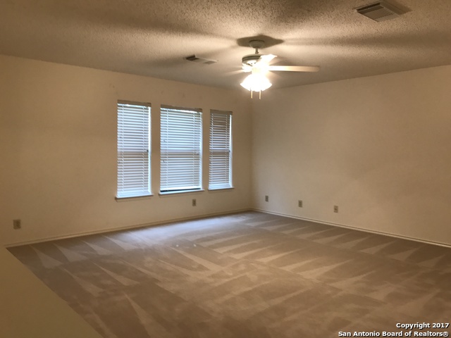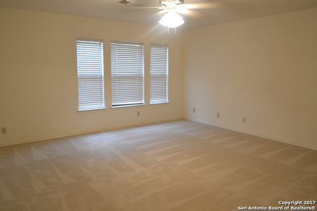 Awesome, spacious home in Park Olympia subdivision! Incredible location minutes from Randolph AFB, IKEA, and The Forum shopping center, and right across the street from the fire and police stations. Huge master suite is to-die-for; featuring sitting room, walk-in closet and full bath with two vanities. Ceiling fans in all rooms. Kitchen includes features plenty of counter space and a big pantry with washer/dryer connections. Back yard has covered patio and 10x15 storage shed. Vacant and ready to move in.