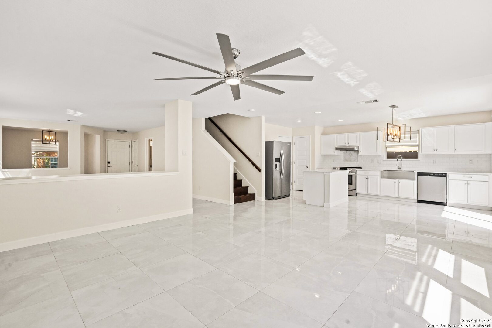 Recently updated home in the serene neighborhood of Bristol Place. This home offers a light and bright open floor plan with plenty of space for everyday living. The layout includes a formal living room and a large second living area that flows into the dining space and kitchen. The island kitchen features a farm sink, stainless steel appliances, quartz countertops, painted soft-close cabinets, a pantry, and outside access-making it both functional and stylish. All bedrooms are located on the second floor. The spacious primary suite includes a full bath, while additional bedrooms provide flexibility for family or guests. Updates made in 2020 include fresh interior paint, replaced doors, new flooring, remodeled bathrooms, and a redesigned kitchen with modern finishes. Outside, you'll find a patio and privacy fence. Conveniently located near a park, shopping, and quick access to I-35, 410, and more. Schedule your personal tour today!