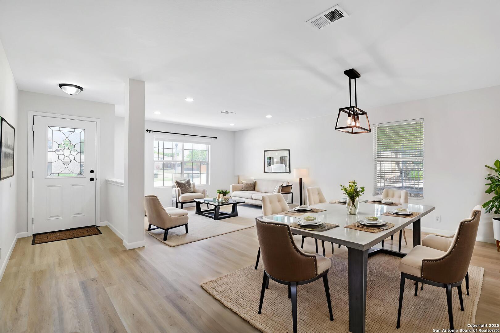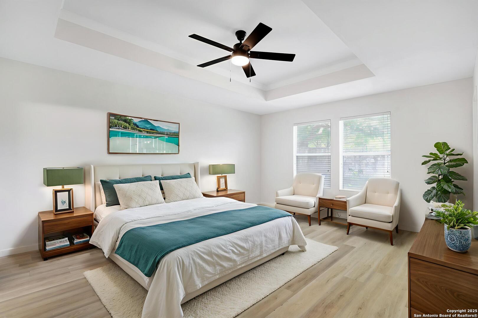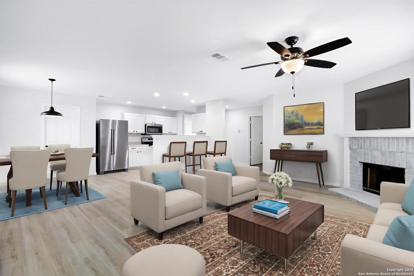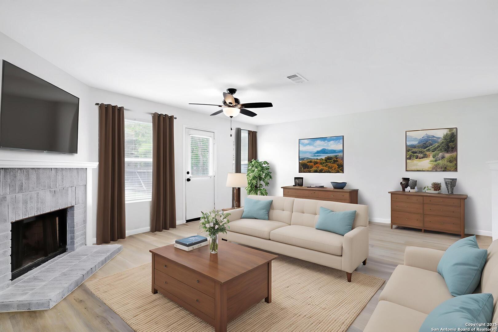 ***MOVE-IN SPECIAL: ONE WEEK FREE***Welcome to this stunning two-story home located in the exclusive, and gated, Oak Crest subdivision. This residence boasts 4 spacious bedrooms, 2.5 bathrooms, a versatile loft, and multiple dining and living areas. Recently remodeled, the home features luxury vinyl flooring throughout, new light fixtures, modern ceiling fans, and state-of-the-art appliances, among many other upgrades. The layout seamlessly blends open-concept living with thoughtfully designated spaces. Upon entry, you'll be greeted by a formal living area and an elegant dining room. The kitchen, which opens to a cozy living room and a charming breakfast nook, is perfect for both everyday living and entertaining. The primary suite, located on the main floor for optimal privacy, includes a luxurious en suite with a double vanity, glass-enclosed shower, and a soaking tub. Upstairs, a spacious loft provides additional living space, accompanied by three well-appointed and generously sized bedrooms. The private backyard is an oasis, featuring a patio slab, mature trees, and no rear neighbors, offering a serene outdoor retreat. This home perfectly combines modern amenities with classic design elements, making it a true gem in Oak Crest.