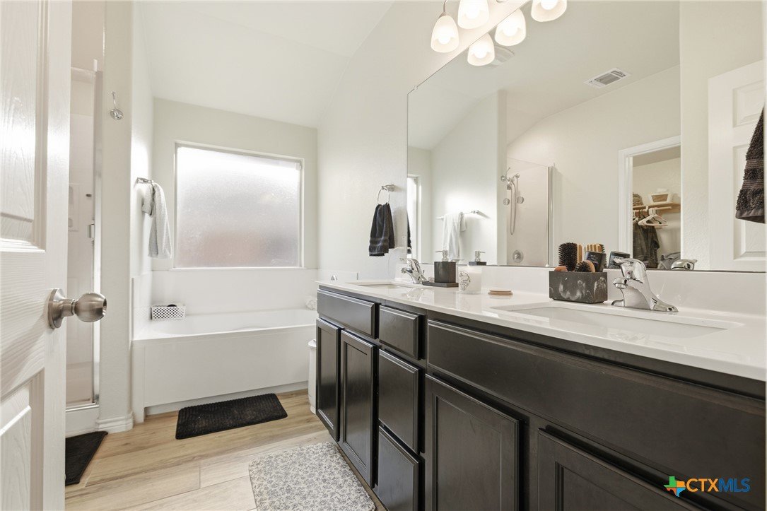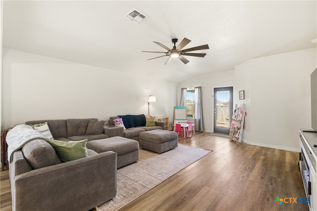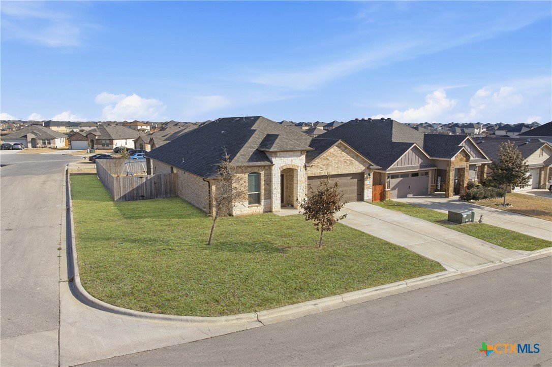 Location & Layout make this one stand out! Situated on a corner lot in Lake Pointe Terrace, 8816 Sky Crest has been beautifully maintained & upgraded. This split floor plan offers no wasted space and features updated vinyl plank flooring that gives the home a more custom feel than standard builder-grade options. The light-filled kitchen opens to the living and breakfast areas and includes granite countertops, an island with breakfast bar seating, and upgraded white cabinetry. The versatile open flex space near the secondary bedrooms is ideal for a game room, home office, gym, or homeschool area. The spacious primary suite features dual vanities, a garden tub, separate shower, and a large walk-in closet. Enjoy outdoor living with a covered back patio with extended privacy fencing perfect for pets, relaxing, & entertaining. Recent updates include a roof replacement to 30 year shingles, and residents enjoy access to a community pool and playground, all just minutes from West Temple shopping, BISD schools, Crossroads park, dining, and Belton Lake access. Move-in ready with upgrades that make it stand out from similar homes in the neighborhood.