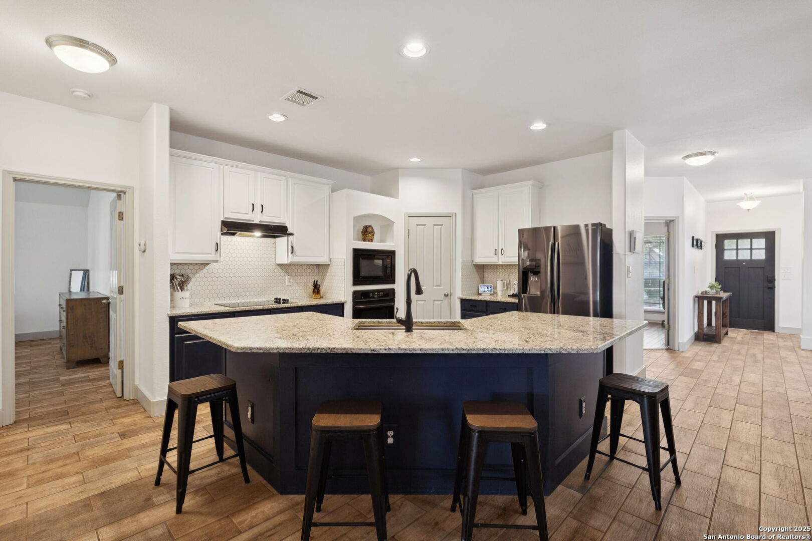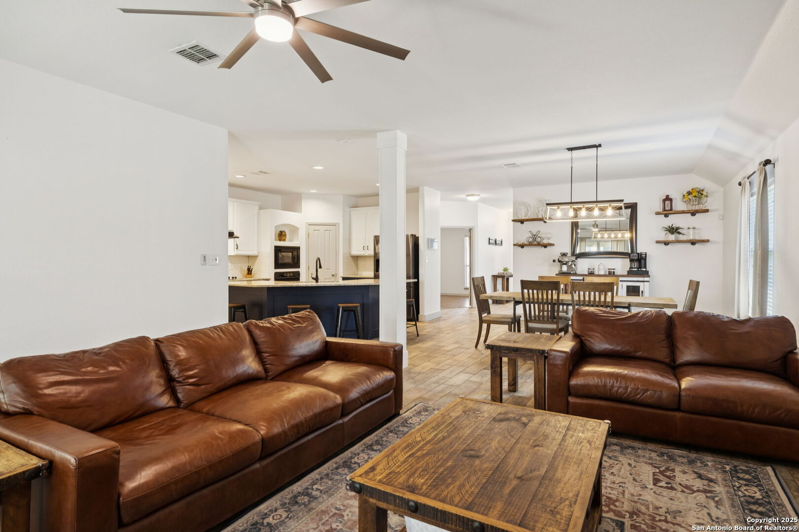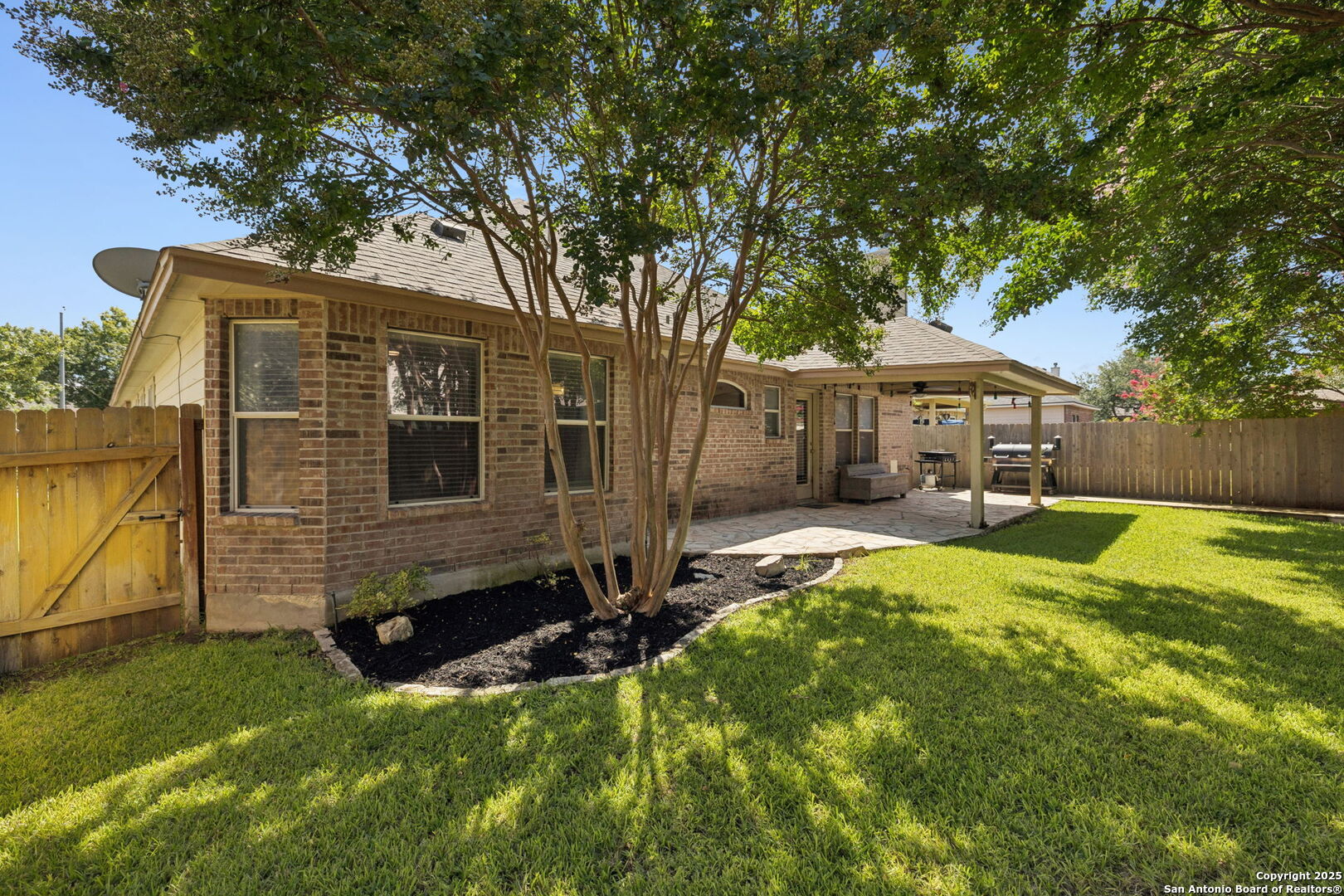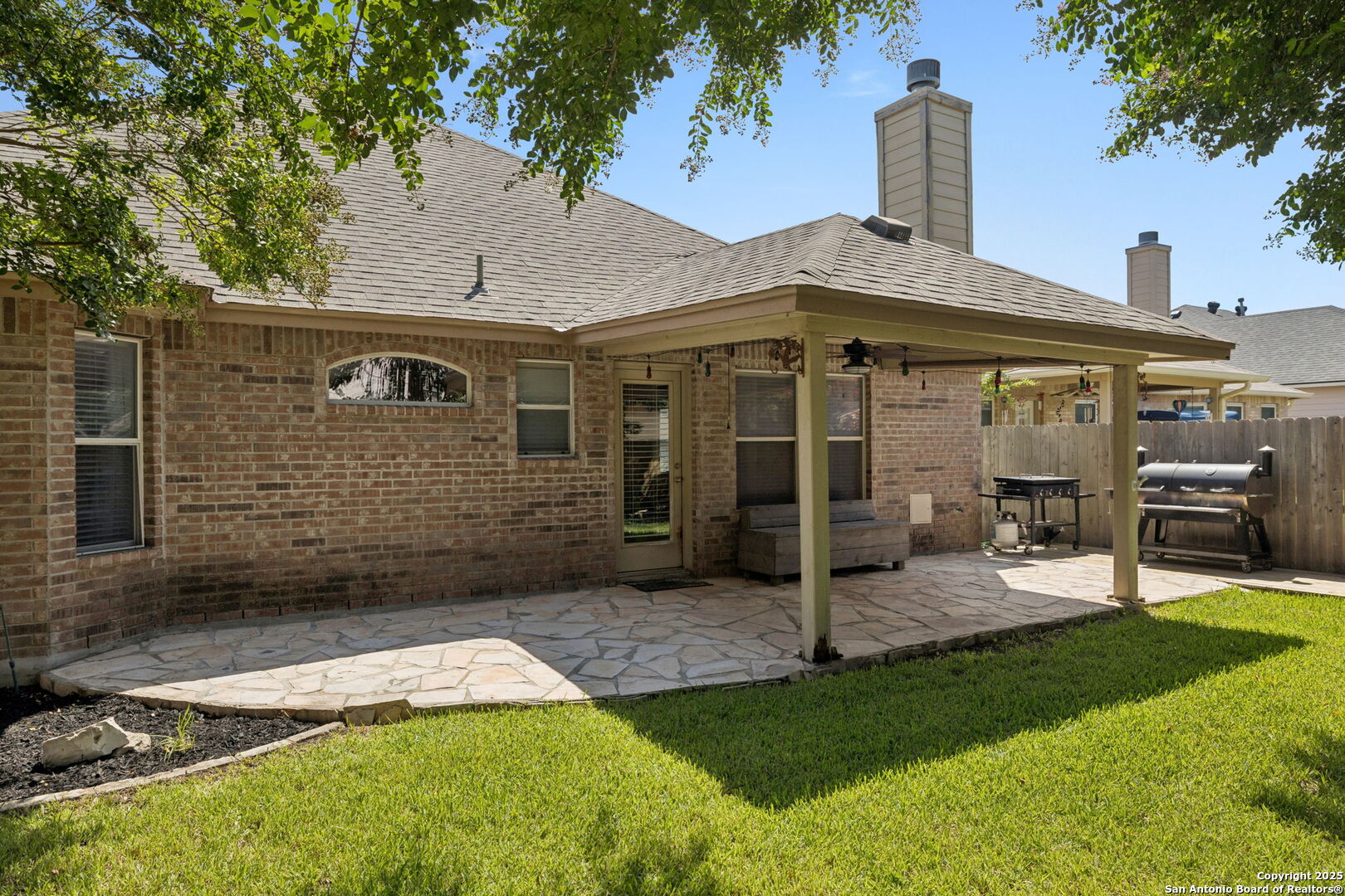 Nestled in the coveted Sonoma Ranch community, this beautifully updated single-story residence blends refined finishes with effortless everyday living. Step inside to a warm, light-filled interior where elegant ceramic tile flooring, soft designer tones, and updated lighting create a calm and inviting ambiance. The remodeled kitchen is the true heart of the home, featuring upgraded countertops, a stylish backsplash, expanded island, and painted cabinetry perfect for gathering with friends and family. A dedicated office offers quiet focus, while the primary suite invites relaxation with a spacious walk-in closet and a spa-inspired walk-in shower. Step onto the covered patio and unwind in a private, landscaped backyard designed for slow mornings and cozy evenings. With a new roof, water softener, water heater, and privacy fence, this home pairs modern comfort with timeless elegance. Ideally located near top-rated Northside ISD schools, premier shopping, and dining, and just minutes from the recent openings of the I-10 / 1604 interchange, providing exceptional access and a seamless commute to major destinations across San Antonio.