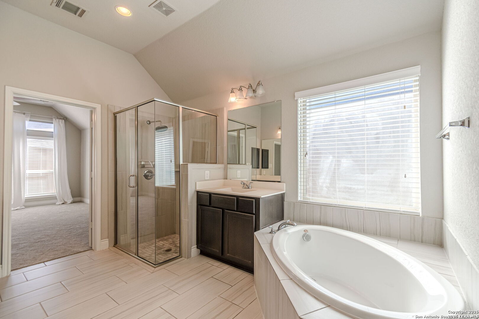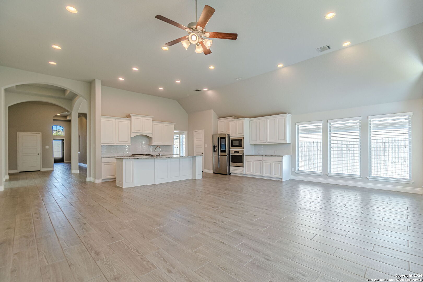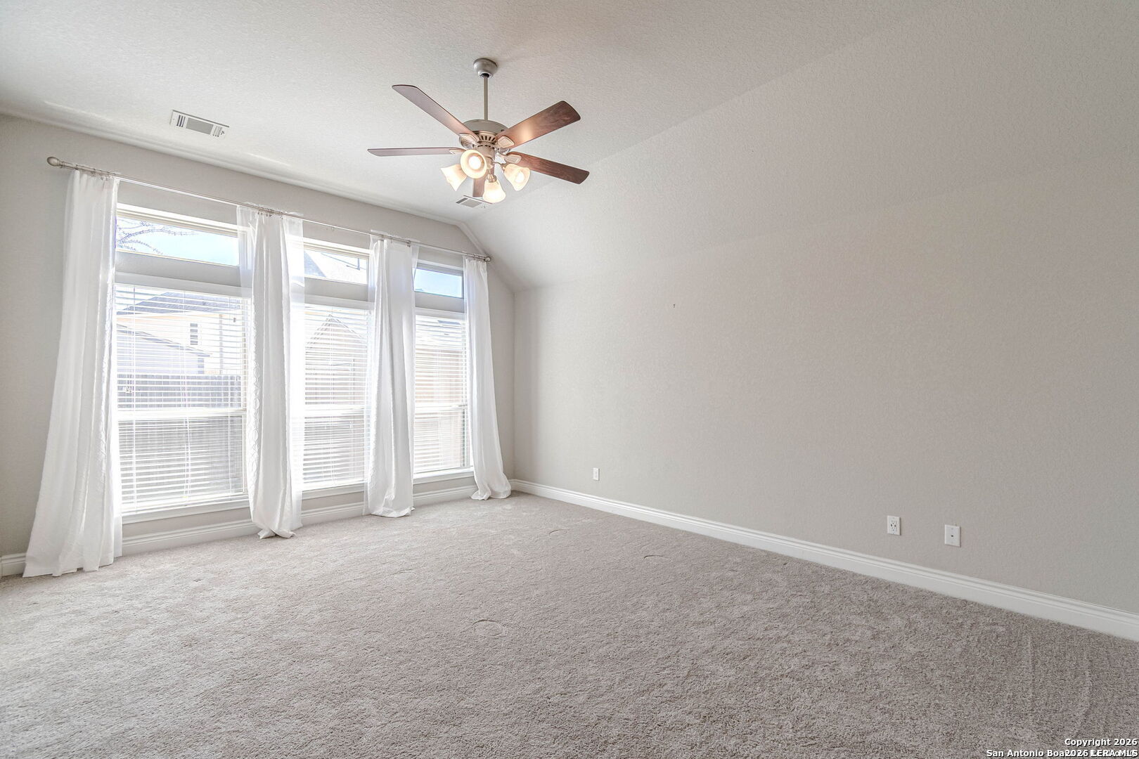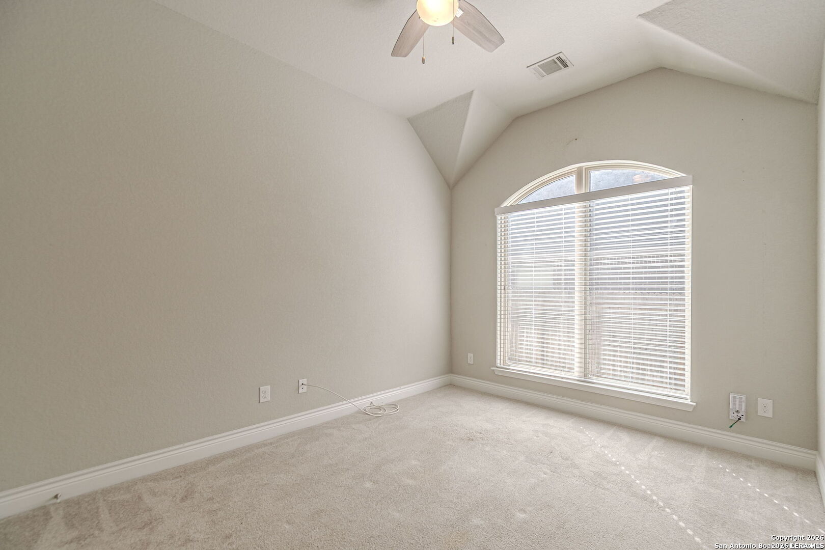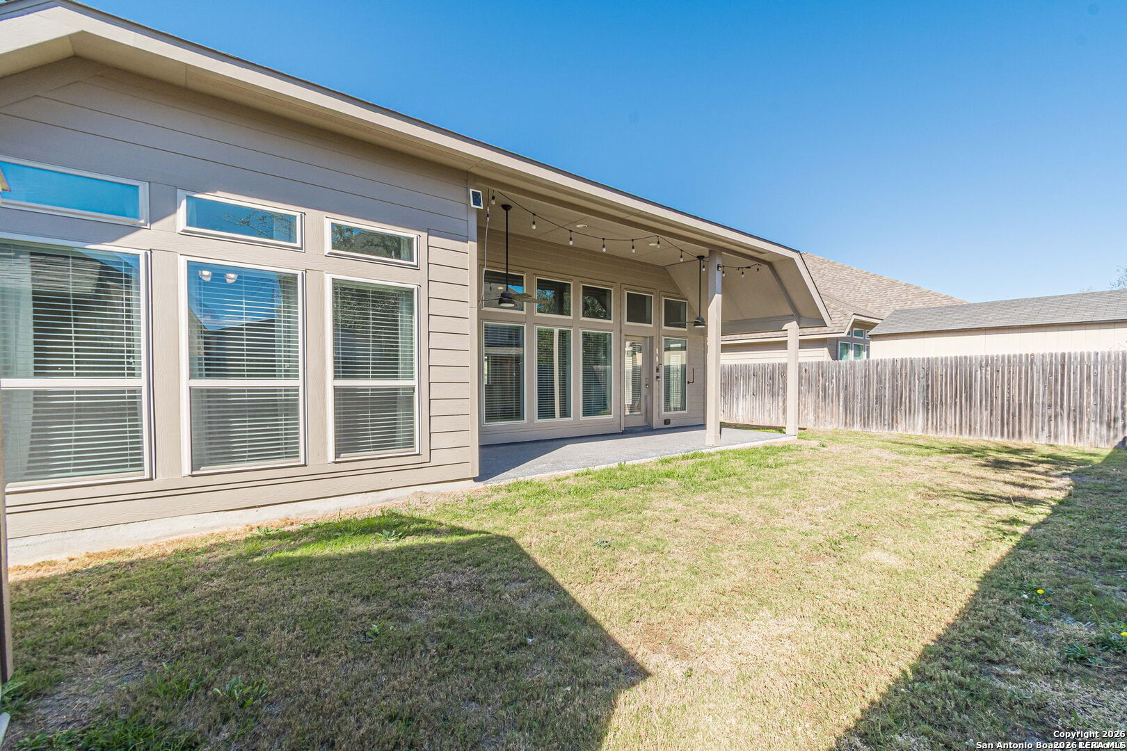 Welcome home to 8826 Haystack Rd, a beautifully maintained Perry Homes residence built in 2018, offering 4 bedrooms, 3 full bathrooms, and 2,709 sq ft of thoughtfully designed living space in one of Northwest San Antonio's most desirable communities. Just off the entry, a large private office with elegant French-style glass doors provides the perfect space for working from home, studying, or a quiet retreat-bright, stylish, and easily closed off for privacy. The home opens into a spacious living room featuring a dramatic wall of tall windows, filling the space with natural light and creating an inviting, open feel. The kitchen is the heart of the home, showcasing a large granite island, white cabinetry, stainless steel appliances, and an extended buffet-style counter, ideal for entertaining, hosting gatherings, or everyday living. The flexible floor plan offers generously sized bedrooms and ample storage throughout. Step outside to the backyard complete with a large storage shed, perfect for tools, hobbies, or outdoor equipment. Enjoy exceptional neighborhood amenities, including two community pools and a walking-distance catch-and-release fishing pond!!!! The location is unbeatable-less than a one-minute drive to H-E-B and Harlan High School, all within the highly sought-after Northside Independent School District. Adding even more value, this home features an assumable 5 interest rate, a rare opportunity in today's market. Spacious, light-filled, and ideally located-this home offers comfort, convenience, and long-term value in one incredible package. This is a nice one! You don't want to miss it!