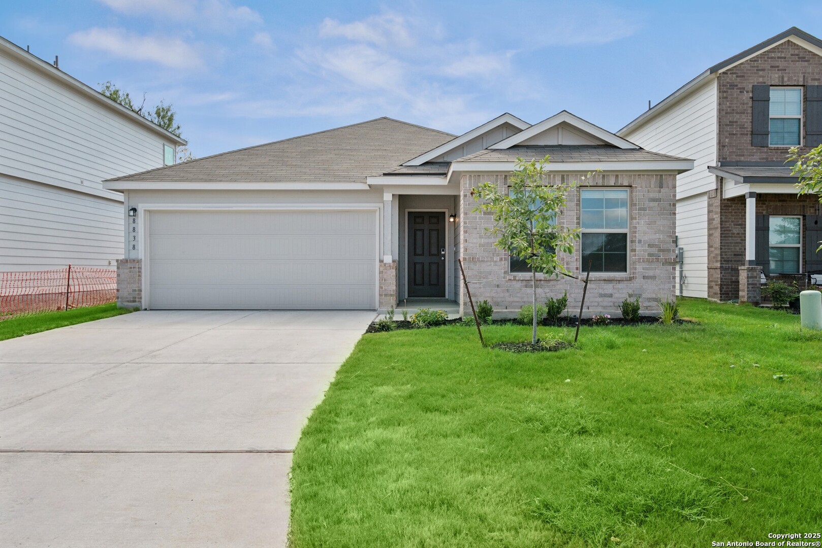 ***READY NOW***** Welcome to this charming 3-bedroom, 2-bathroom home located at 8838 Campacuas Trail in beautiful San Antonio, TX 78252. This home offers a fantastic opportunity for buyers seeking a cozy new construction home with modern amenities and a welcoming atmosphere. Your New Home Features Situated in a peaceful neighborhood, this 1-story house, built by M/I Homes, boasts a spacious 1,642 sqft layout that provides both comfort and functionality. Upon entering, you will be greeted by a well-designed open floorplan that seamlessly connects the kitchen, living area, and dining space, perfect for entertaining family and friends or simply relaxing after a long day. The kitchen in this home is a chef's dream, featuring sleek countertops, ample storage space, and high-quality appliances that make meal preparation a breeze. Whether you enjoy cooking gourmet meals or whipping up quick snacks, this kitchen has everything you need to unleash your culinary skills. Step outside to the covered patio and envision enjoying your morning coffee or evening drinks while taking in the fresh air and serene neighborhood views. The outdoor space offers a private retreat where you can unwind and create lasting memories with loved ones. With 3 cozy bedrooms, including a primary suite with an en-suite bathroom, this home provides a comfortable and inviting living environment for residents of all ages. The additional bathroom is conveniently located to serve the other bedrooms and guests, ensuring everyone's comfort and convenience. Parking will never be an issue with a 2-car garage. Whether you have multiple vehicles or enjoy hosting gatherings, this feature adds to the convenience and functionality of this property.