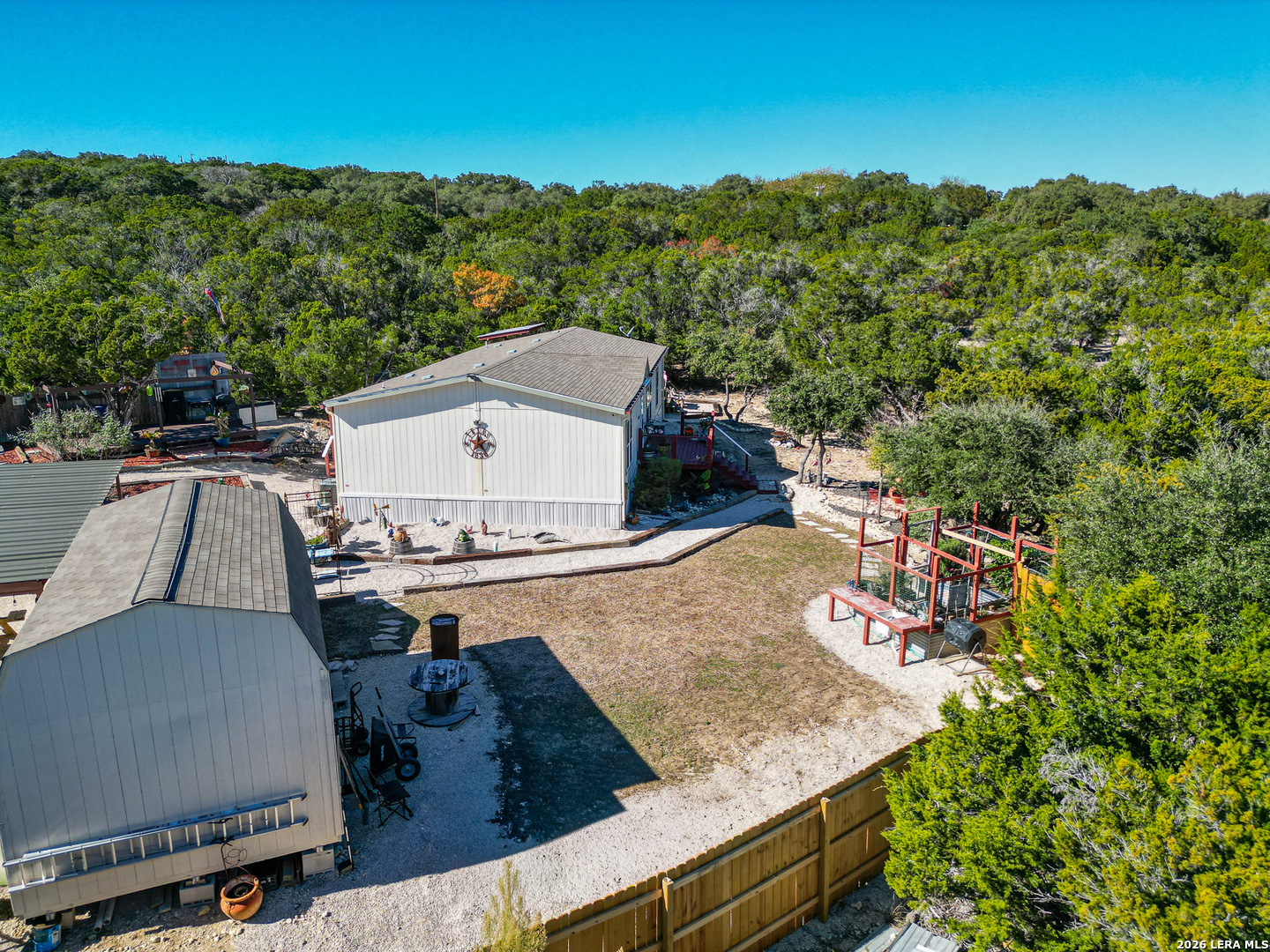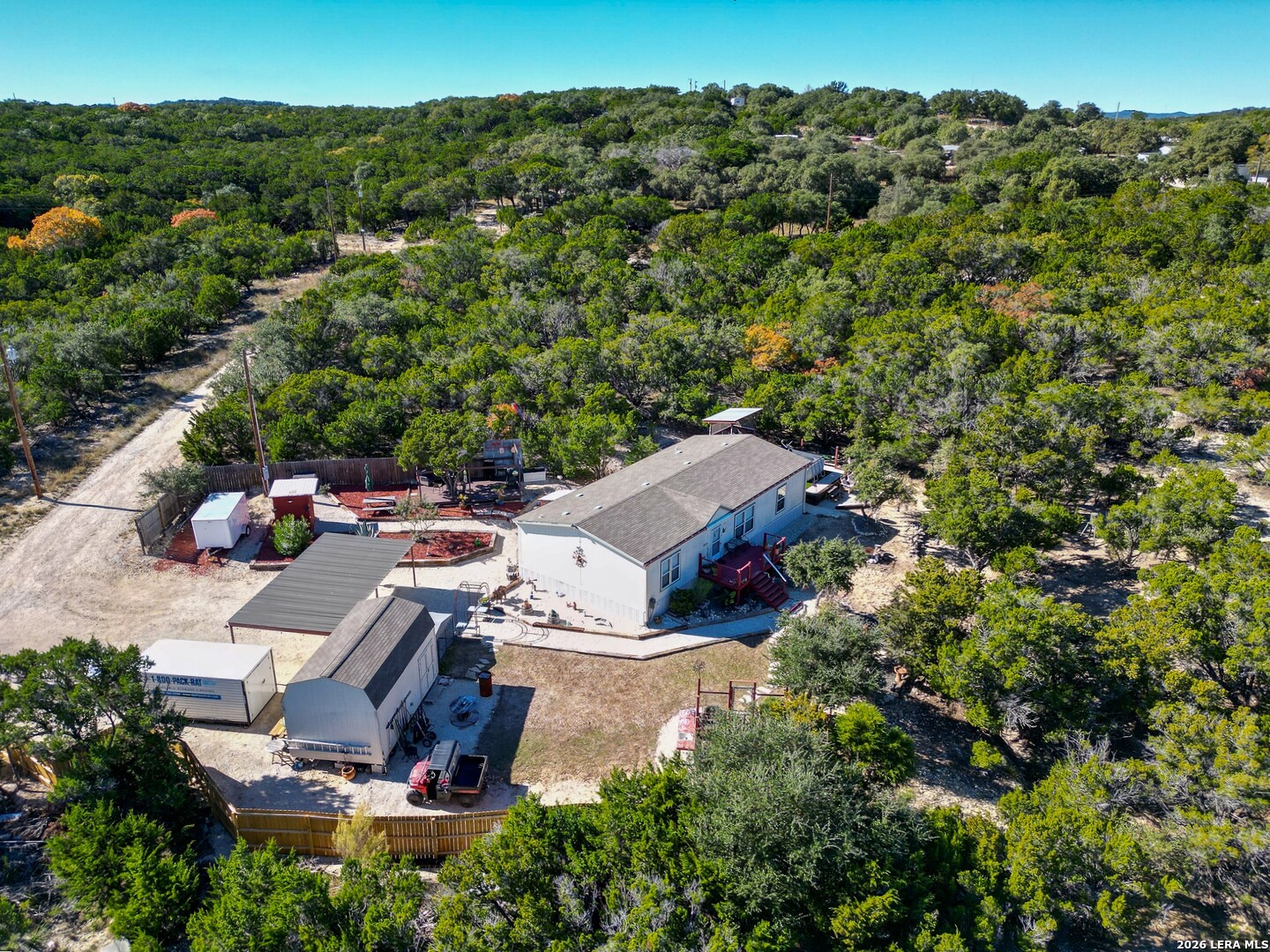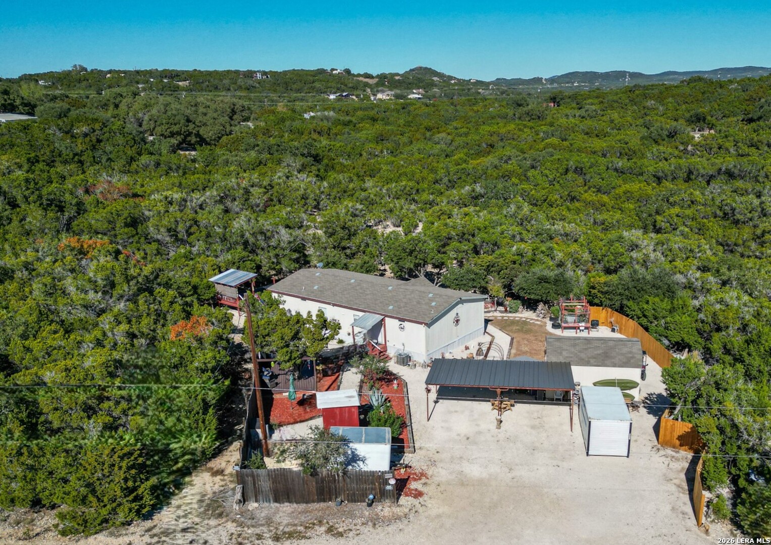 Where outdoor living meets Hill Country views-decks, pool, and room to entertain. This 3-bedroom, 2-bath 2020 Palm Harbor home on .36 acres is designed for enjoying the outdoors. Multiple decks and patios offer inviting spaces for sunrise coffee, sunset gatherings, outdoor dining, and watching local wildlife. The spacious entertaining deck is perfect for cookouts, and the summer pool provides a refreshing retreat on warm Texas days. Inside, the open floor plan connects the kitchen, dining, and living areas, filled with natural light and scenic hill views. A 320-sq-ft shop offers space for hobbies, projects, or storage. Fenced on two sides for privacy while remaining open to the surrounding scenery. Located in Lakehills, it's only 40 minutes to San Antonio, and there's easy access to Bandera, and Boerne. Opportunity knocks - motivated Seller! Don't miss out on this Hill Country gem.