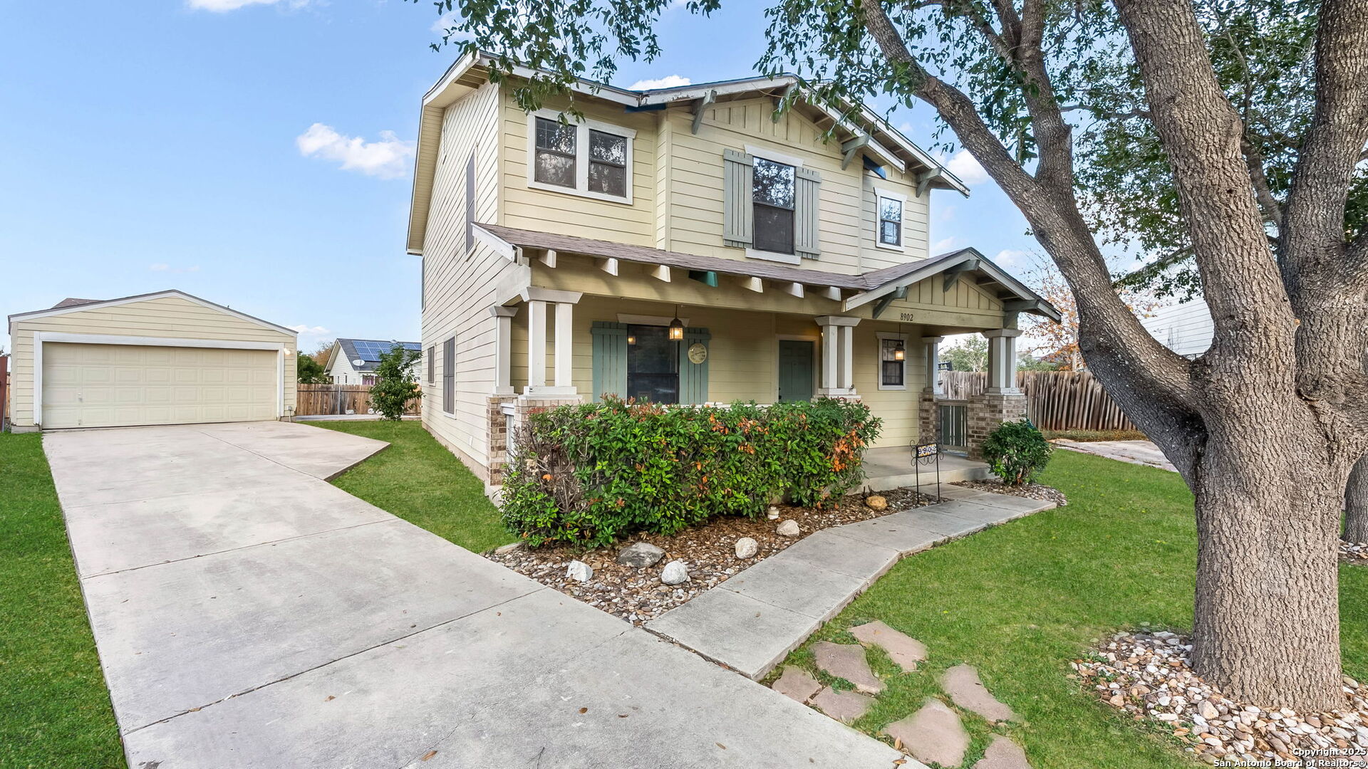 Cozy house ready for move in. Shows pride of ownership as soon as you drive up... This two-story 4-bedroom, 2.5-bathroom home conveniently located in San Antonio, features a detached 2-car garage with a very spacious backyard in a convenient cul-de-sac. The main level offers an open-concept layout, with a seamless flow between the kitchen and living areas, creating an ideal space for daily life and entertaining. Enjoy the convenience of a prime location with easy access to shopping at Walmart and H-E-B, and a short drive to Lackland Air Force Base. Schedule your showing today!!!
