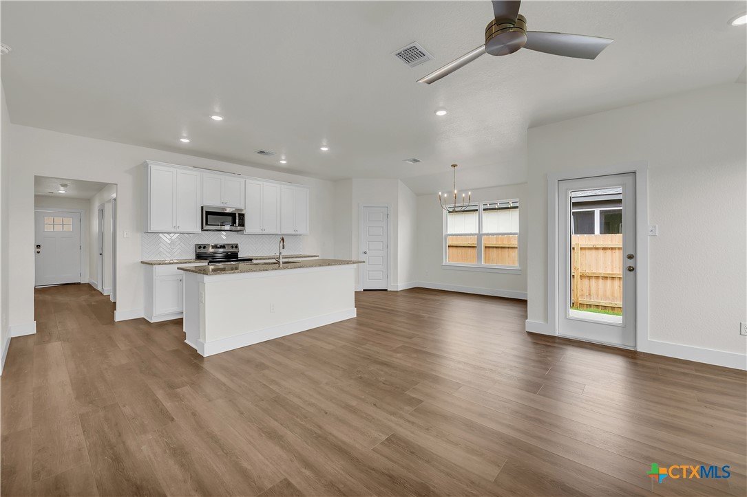 Situated in the highly sought-after Mesa Ridge subdivision, this charming home offers 4 bedrooms, 2 bathrooms, and a spacious 2-car garage. The popular Medina floor plan showcases a bright, open-concept layout with 1,666 square feet of comfortable living space. The kitchen is equipped with stainless steel appliances, granite countertops, and a walk-in pantry, perfect for any home chef. Each bedroom is generously sized and features cozy carpeting, while the main living areas are finished with stylish luxury vinyl plank flooring. Both bathrooms include granite countertops, with the primary suite boasting a walk-in shower and dual vanity. Outside, enjoy a covered patio, fully sodded yard with irrigation, and a 6-foot privacy fence—ideal for relaxing or entertaining. This home combines functionality and style, making it perfect for everyday living. Start Your 2026 Story With Us — where craftsmanship meets the moments that matter most. Now offering interest rates as low as 4.99% (5.775% APR)* Fixed Rate on select homes, making this a great opportunity to begin your buyer’s home search. Incentives available on select homes only and may vary by community and homesite with preferred lender. Restrictions apply. Contact the sales team for complete details.