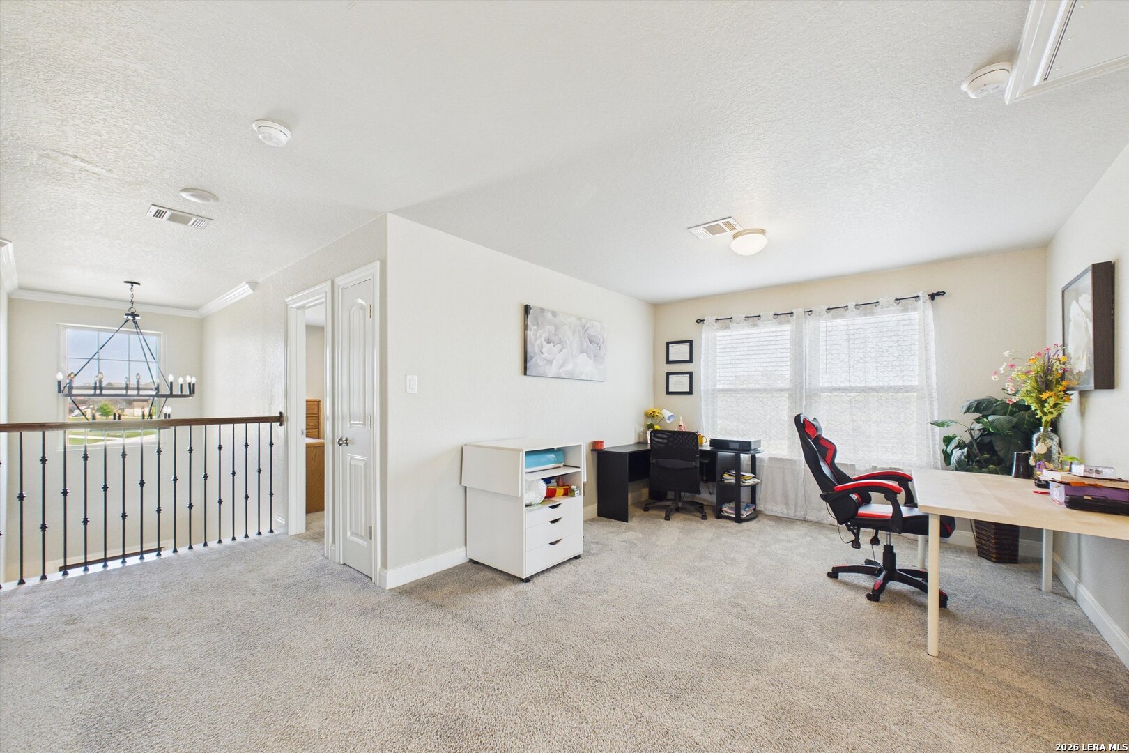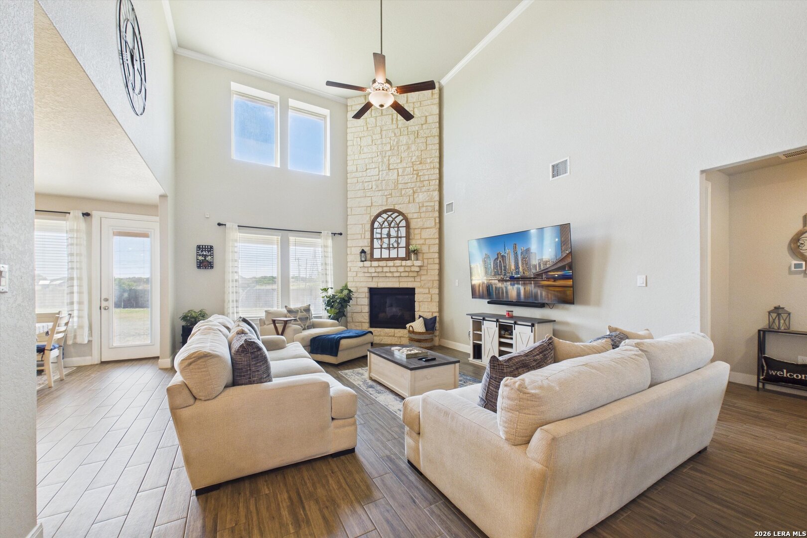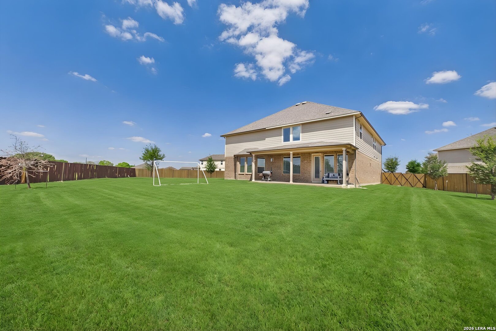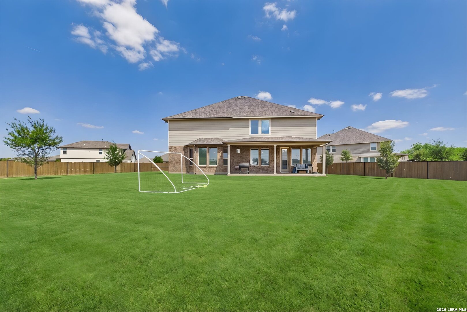 Welcome to this absolutely stunning, meticulously maintained home located in the East Central School District. Built just five years ago, this expansive 4-bedroom, 3 full bath, and 2 half bath residence offers luxury, space, and functionality at every turn. Situated on a generous half-acre lot, this property features a huge backyard and a covered patio-perfect for outdoor entertaining, relaxing evenings, or creating your own private retreat. From the moment you enter, you are greeted by soaring 23-foot ceilings and a grand living area featuring a beautiful electric stone fireplace. The thoughtfully designed floor plan includes a private study with French doors, a dedicated workout room, and two spacious dining areas-ideal for both everyday living and entertaining. The chef's kitchen is truly the heart of the home, complete with gas cooking, a pot filler, solid surface countertops, custom cabinetry, and a butler's pantry featuring a built-in wine rack. Just off the 3-car garage, you'll find a convenient mudroom entry. The primary suite is a true retreat, offering a spacious layout, spa-like bathroom with a separate shower, whirlpool garden tub, and oversized walk-in closet. Upstairs, a secondary primary suite provides added flexibility with its own private bathroom and walk-in closet. Entertainment options abound with a large game room and a fully furnished media room, complete with projector, screen, built-in surround sound, and seven reclining chairs with trays-all of which convey with the home. Additional features include walnut ceramic tile flooring, a tankless water heater, and a security system with doorbell and front and rear cameras. This home truly has it all-space, upgrades, and exceptional attention to detail, inside and out. Schedule your private showing today.