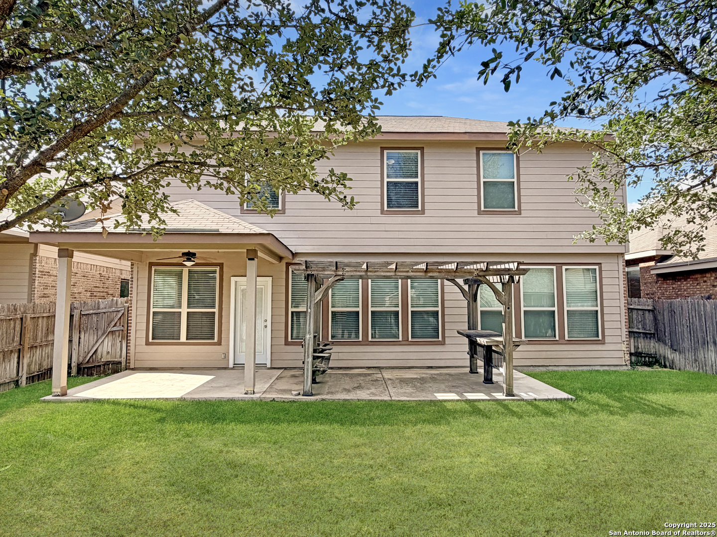 Welcome to this beautifully maintained four-bedroom, three-and-a-half-bath, two-story home located in the desirable Kallison Ranch subdivision-move-in ready and waiting for you! With a spacious, open floor plan, this elegant home offers two dining areas and an extended kitchen island, perfect for hosting friends and family. Step outside to a backyard built for entertaining, featuring a charming pergola with extra seating and a covered patio for year-round enjoymen