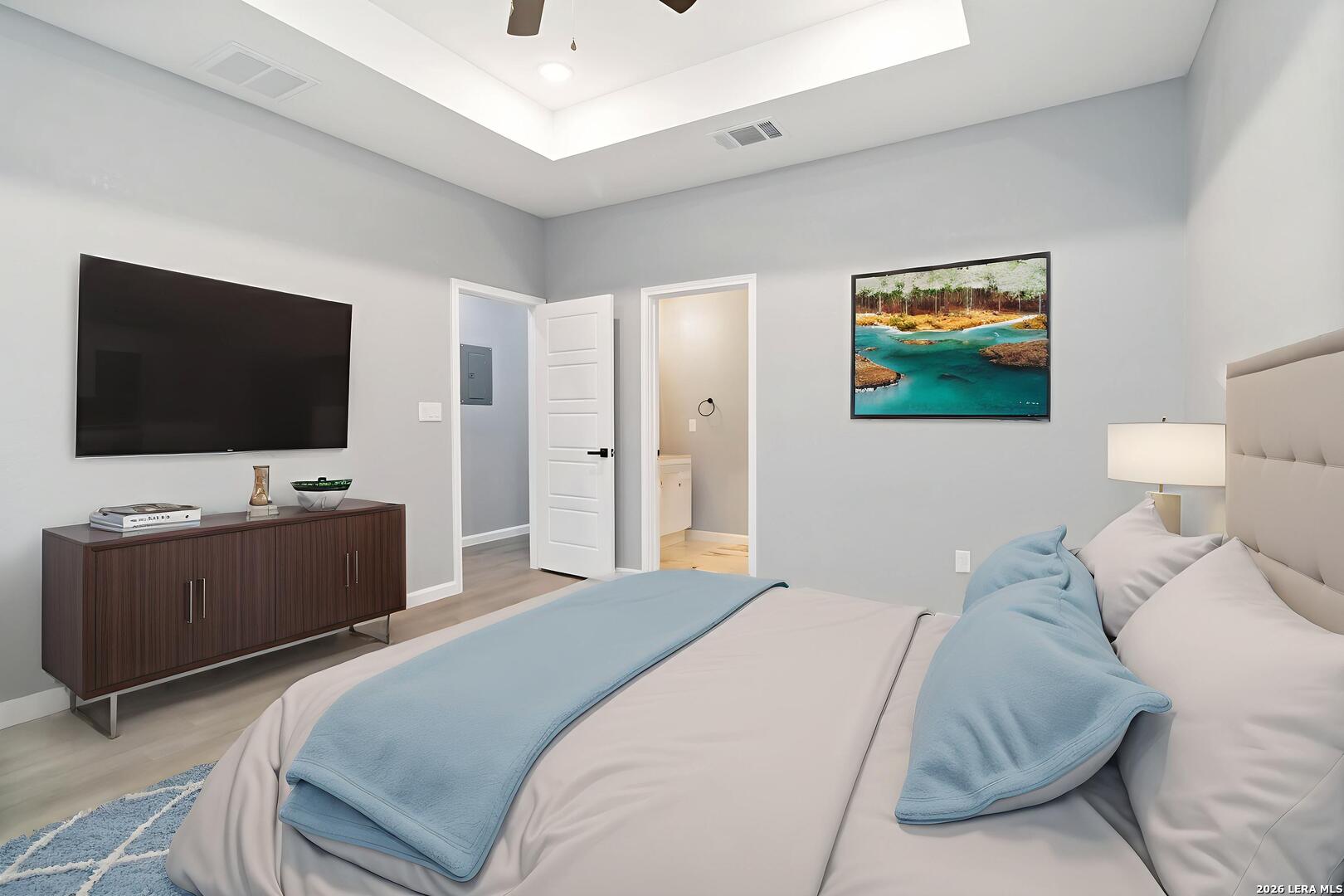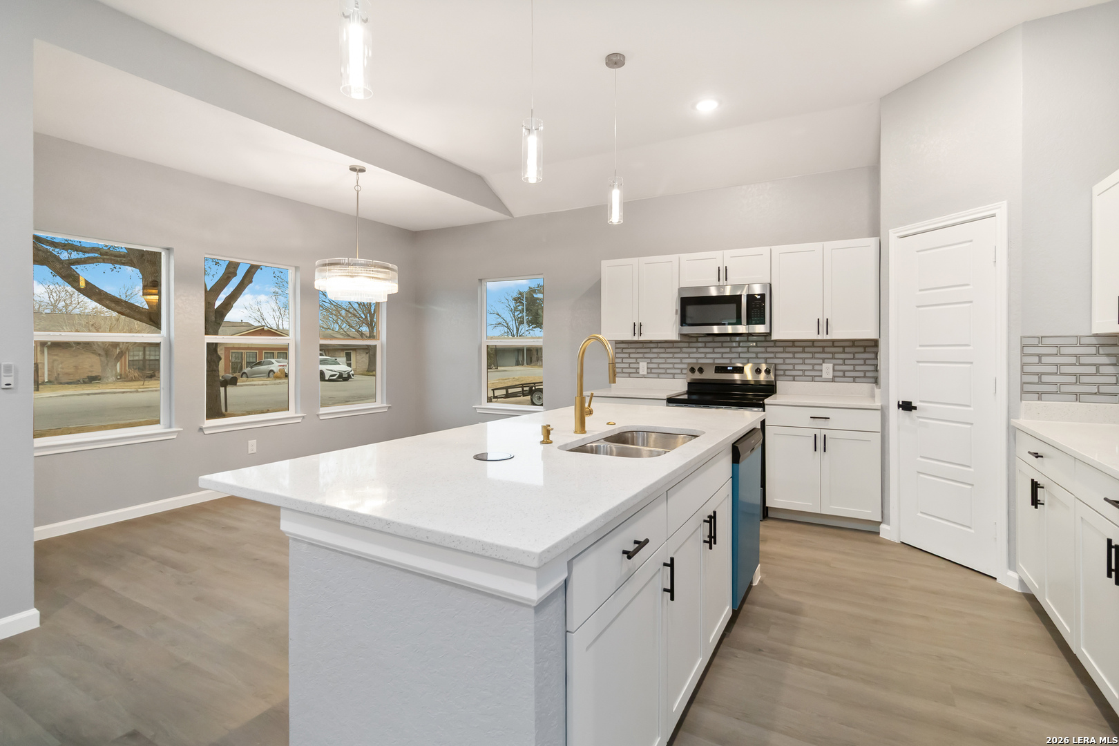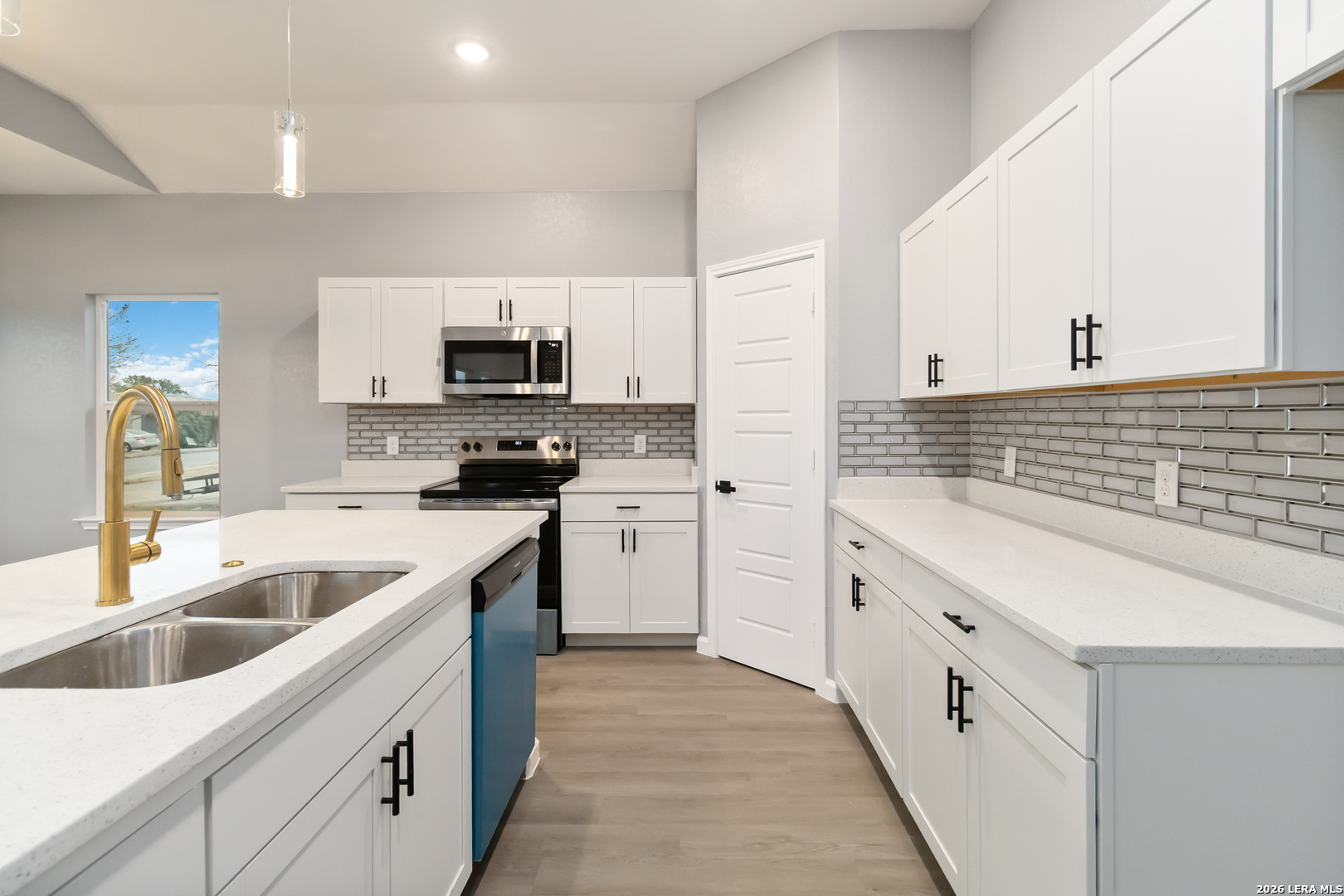 Welcome to this thoughtfully designed new construction home where high ceilings and spacious interiors create an inviting, upscale atmosphere. The open-concept floorplan seamlessly connects the living, dining, and kitchen areas, highlighted by a dramatic fireplace feature wall that adds both warmth and architectural interest. The kitchen is a true centerpiece, offering sleek countertops, modern cabinetry, contemporary lighting, and an oversized island perfect for hosting. Relax in large bedrooms featuring ample closet space, and enjoy beautifully finished bathrooms with high-end tile, modern fixtures, and a spa-inspired walk-in shower. With a functional laundry area and refined finishes throughout, this home perfectly balances style, space, and everyday practicality.