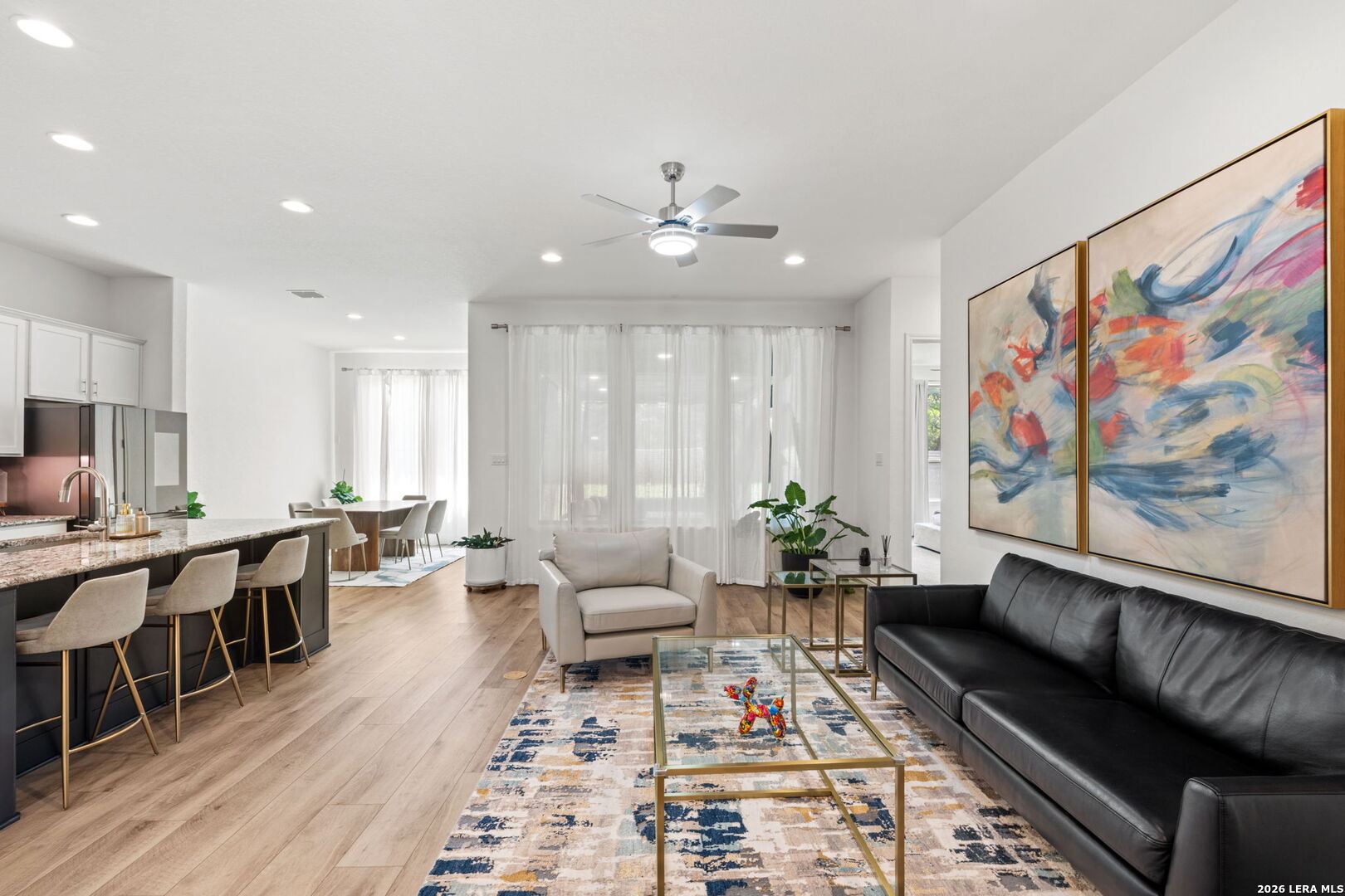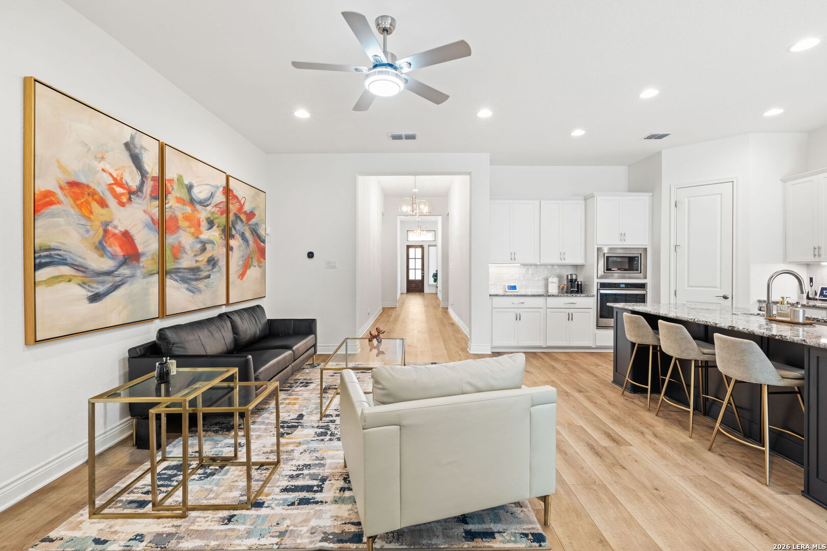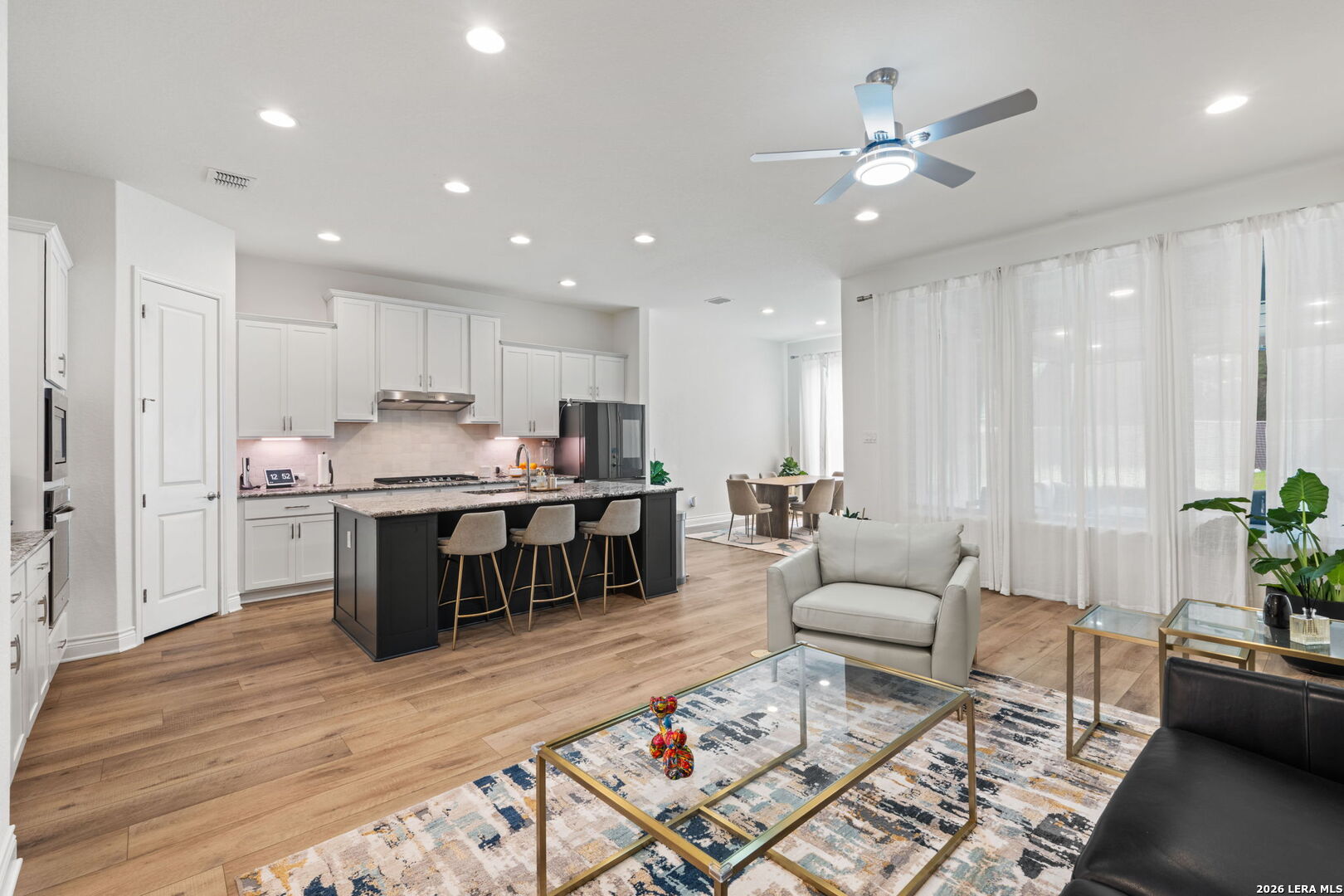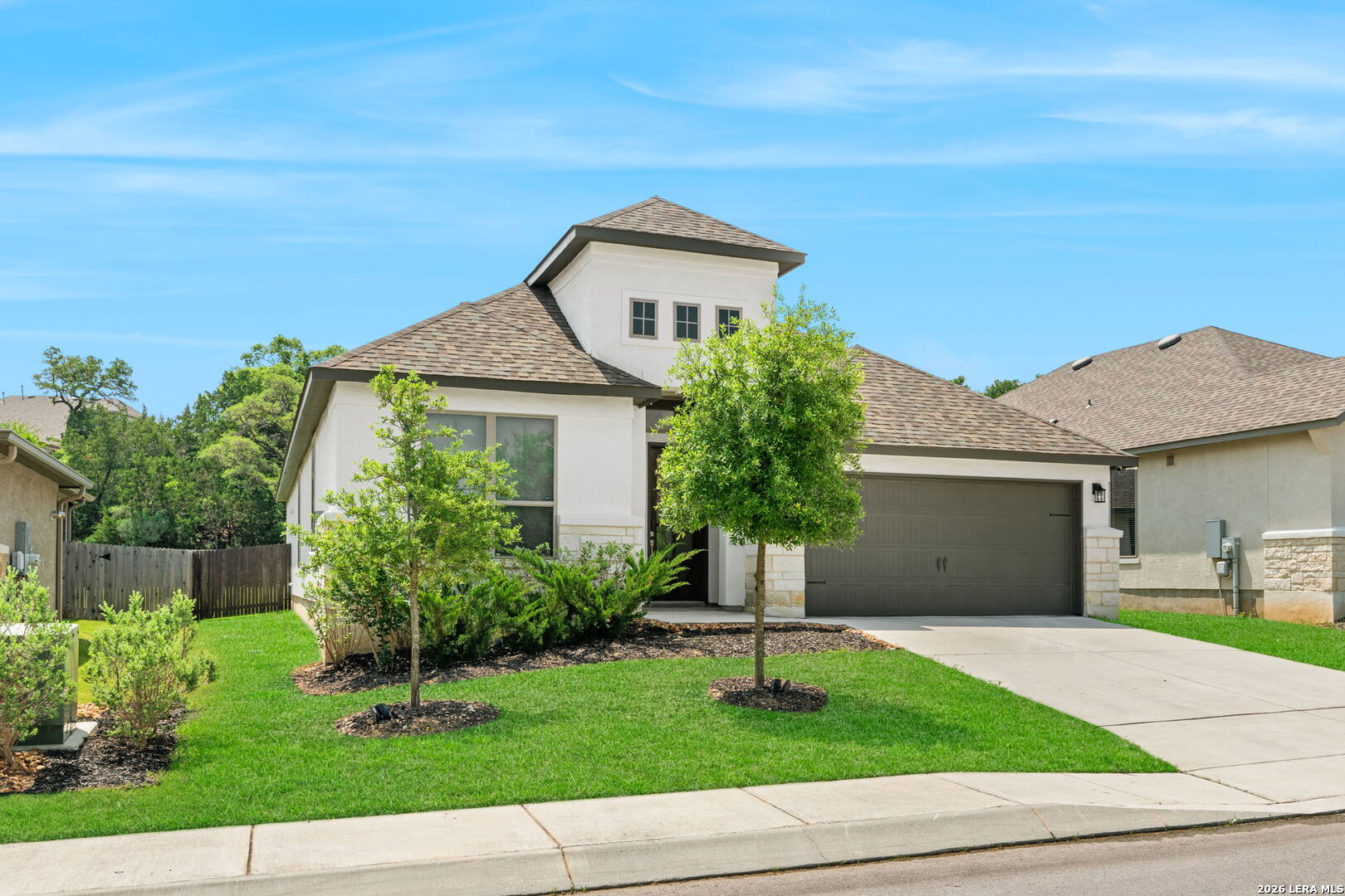 Located in the gated community of Fair Oaks Ranch, this beautifully designed Monticello home offers 4 bedrooms, 3 baths, and over 2,500 square feet of thoughtfully designed living space. The open-concept layout is filled with abundant natural light, soaring ceilings, and luxury flooring throughout. A spacious living area flows seamlessly into the oversized island kitchen featuring built-in stainless steel appliances, gas cooking, and generous prep and entertaining space. The private backyard is designed for both relaxation and entertaining, complete with an extended covered patio and plenty of room to enjoy the peaceful setting. Ideally situated just minutes from top-rated Boerne ISD schools, I-10, H-E-B, dining, and scenic walking trails, this home delivers elevated living in one of Fair Oaks Ranch's most desirable gated neighborhoods.