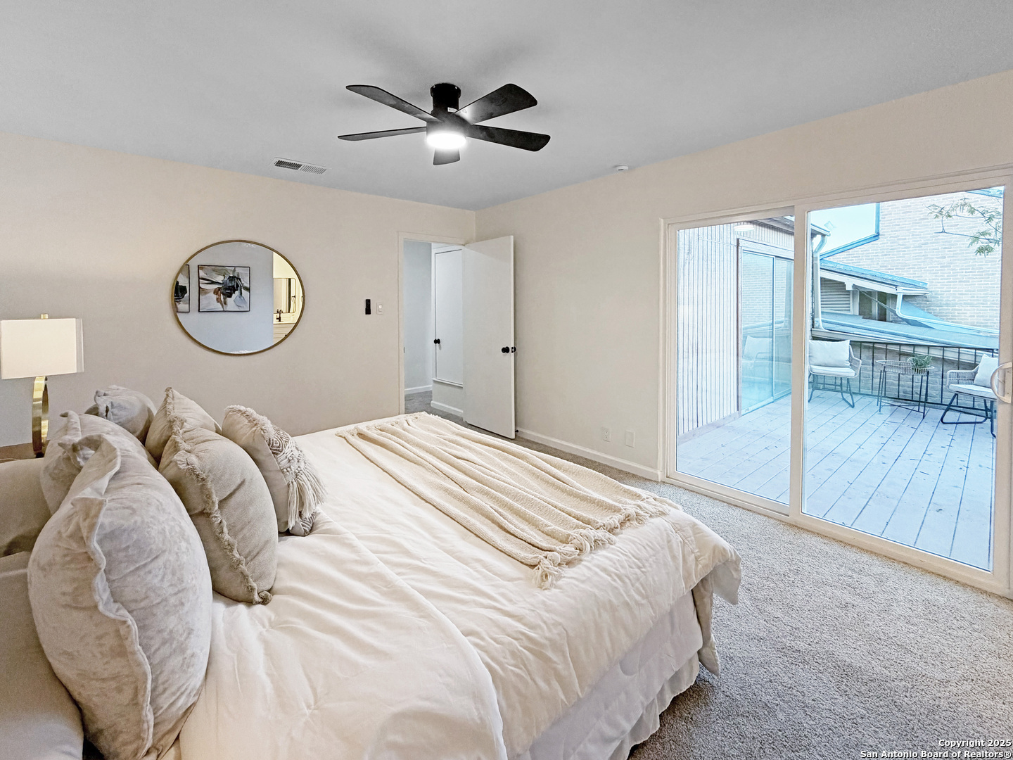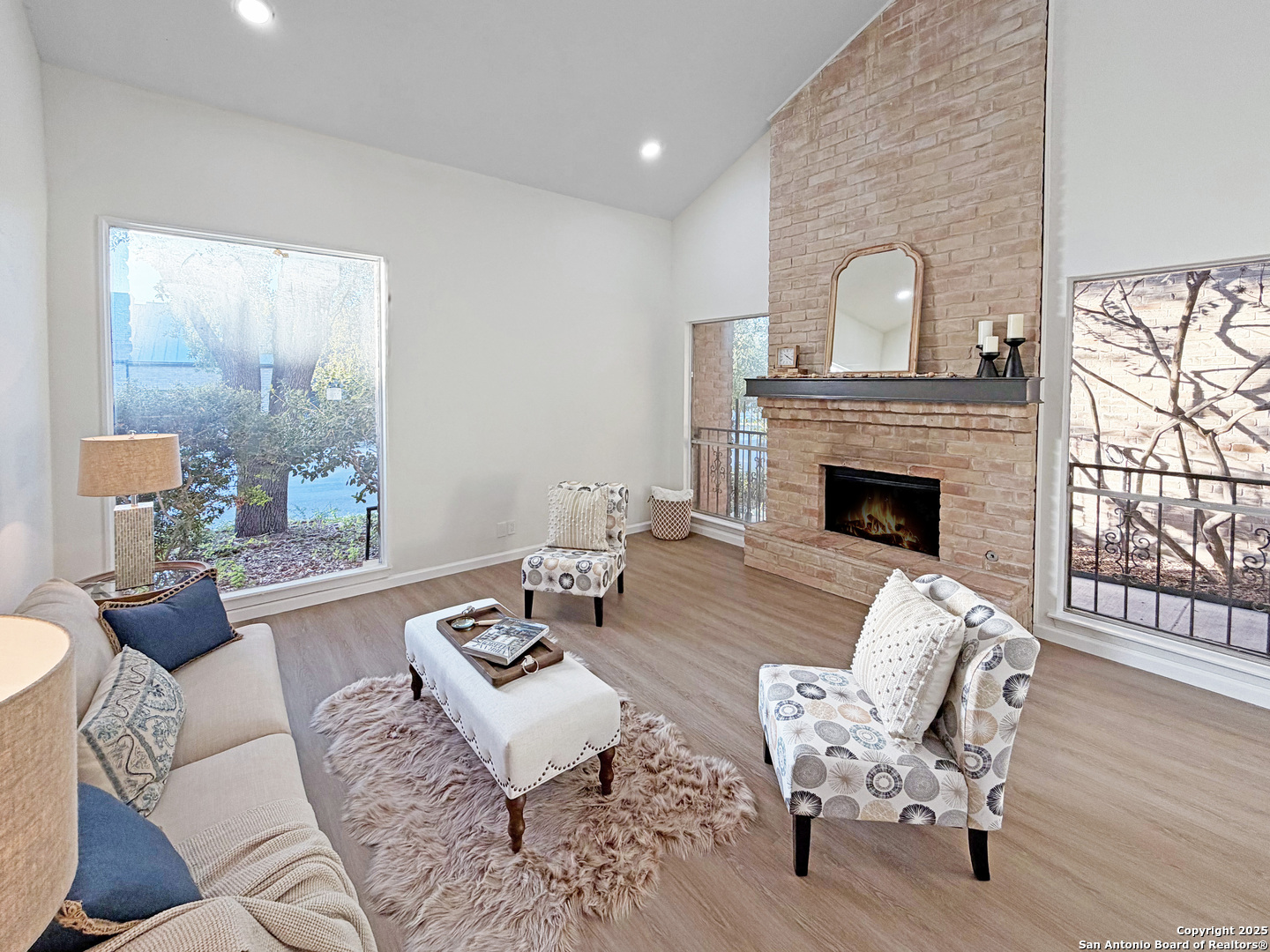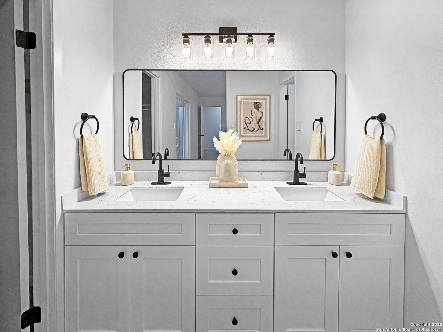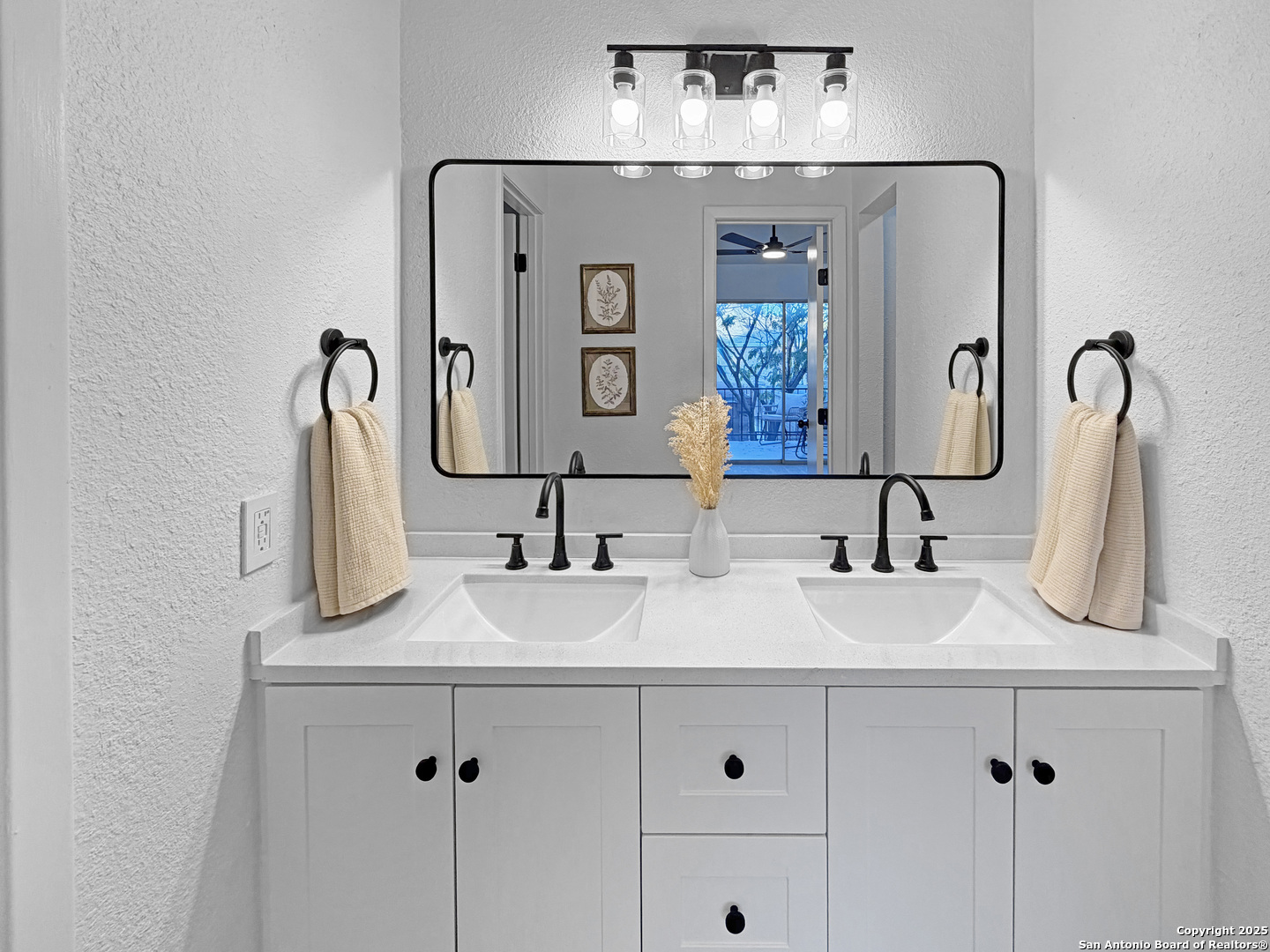 Capture the appeal of modern living in this beautifully renovated three bedroom two and a half bathroom home, a spacious 1883 square feet residence boasting immediate move-in readiness with a two car garage. This opportunity at 8938 Willmon Way provides premium features including all new luxury vinyl plank floors, sleek quartz countertops, and a full suite of new stainless steel appliances. Enjoy bright, airy rooms featuring large windows, a cozy living room fireplace, and ultimate relaxation with a second story patio area accessible from one of the home's two open porches. The primary bedroom and a secondary bedroom both feature elegant French doors, alongside new double sink vanities, tiled bathrooms to ceilings, and modern ceiling fans in every space, all maintained by central cooling and heating. This desirable Windcrest location provides exceptional convenience, minutes from Joint Base San Antonio Randolph and Fort Sam Houston, offering easy commuting via Interstate 35, Loop 410 and proximity to outdoor enjoyment at Morgan's Wonderland and Splashtown San Antonio, making it an irresistible choice for all buyers looking to live near every area amenity. Do not delay your chance to view this stunning property in person, schedule your private showing today.
