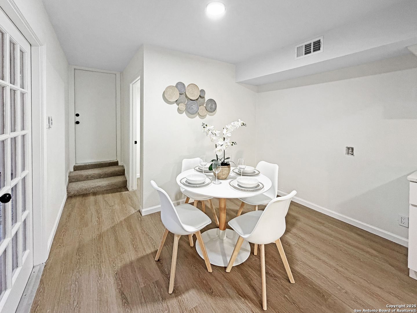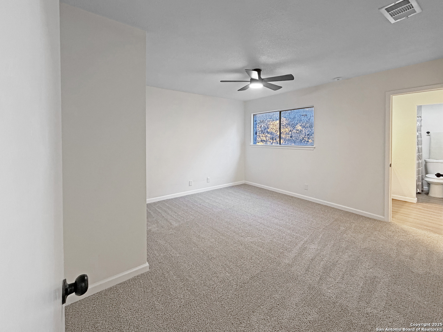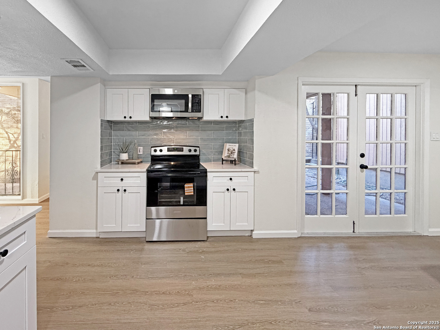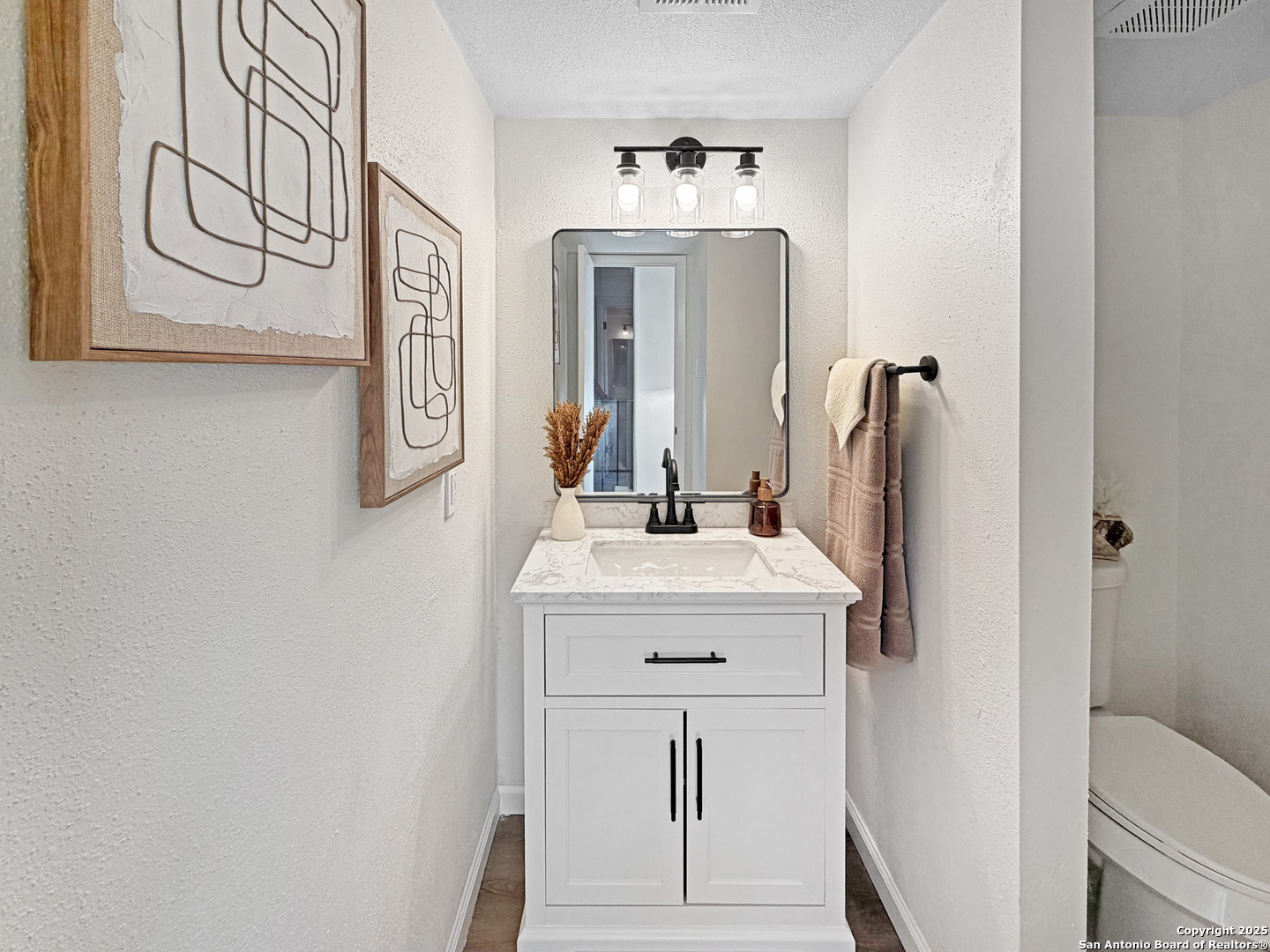Capture the appeal of modern living in this beautifully renovated three bedroom two and a half bathroom home, a spacious 1883 square feet residence boasting immediate move-in readiness with a two car garage. This opportunity at 8938 Willmon Way provides premium features including all new luxury vinyl plank floors, sleek quartz countertops, and a full suite of new stainless steel appliances. Enjoy bright, airy rooms featuring large windows, a cozy living room fireplace, and ultimate relaxation with a second story patio area accessible from one of the home's two open porches. The primary bedroom and a secondary bedroom both feature elegant French doors, alongside new double sink vanities, tiled bathrooms to ceilings, and modern ceiling fans in every space, all maintained by central cooling and heating. This desirable Windcrest location provides exceptional convenience, minutes from Joint Base San Antonio Randolph and Fort Sam Houston, offering easy commuting via Interstate 35, Loop 410 and proximity to outdoor enjoyment at Morgan's Wonderland and Splashtown San Antonio, making it an irresistible choice for all buyers looking to live near every area amenity. Do not delay your chance to view this stunning property in person, schedule your private showing today.