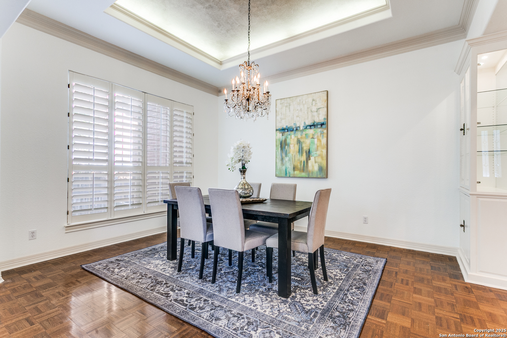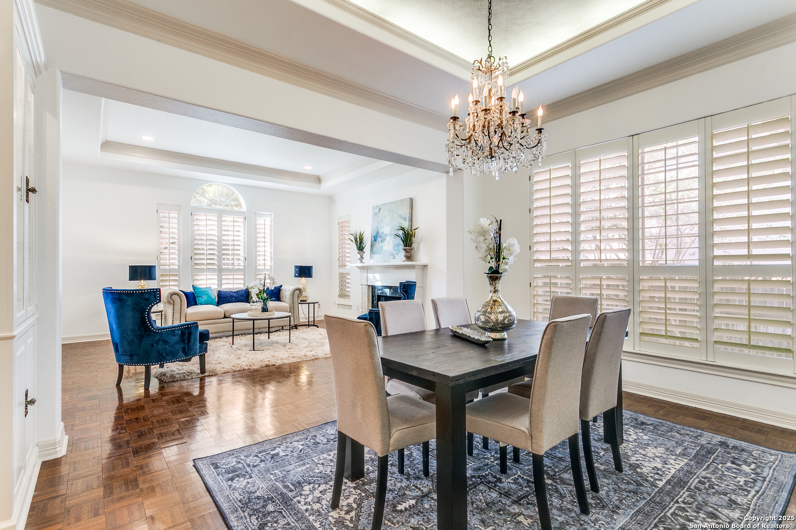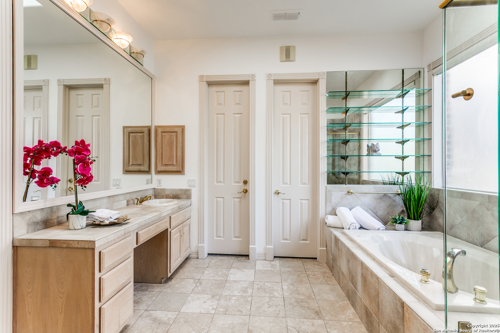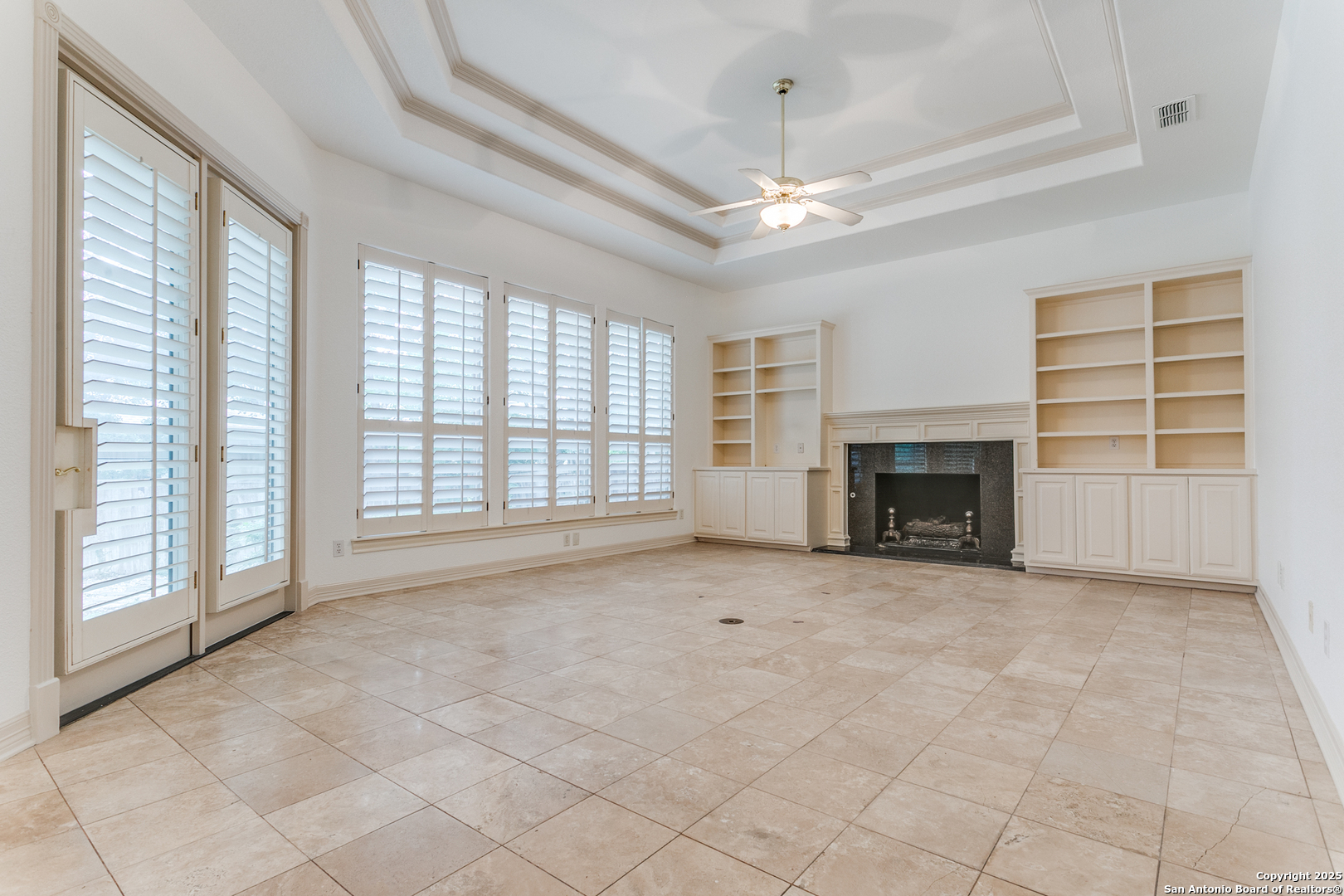 One story home in gated The Greens at Lincoln Heights in AHISD. Beautiful formal living room with parquet flooring, fireplace, two custom built in glass cabinets & wet bar. Separate dining room. Kitchen has great storage and pantry, opens to breakfast/family room. Family room has built-ins & fireplace. Enclosed patio looks out to nice size backyard. Two car attached garage with built-in storage with unique butterfly sliding doors. Plantation shutters and great storage throughout. New carpet in bedrooms. Third bedroom currently used as office has wood bookshelves.