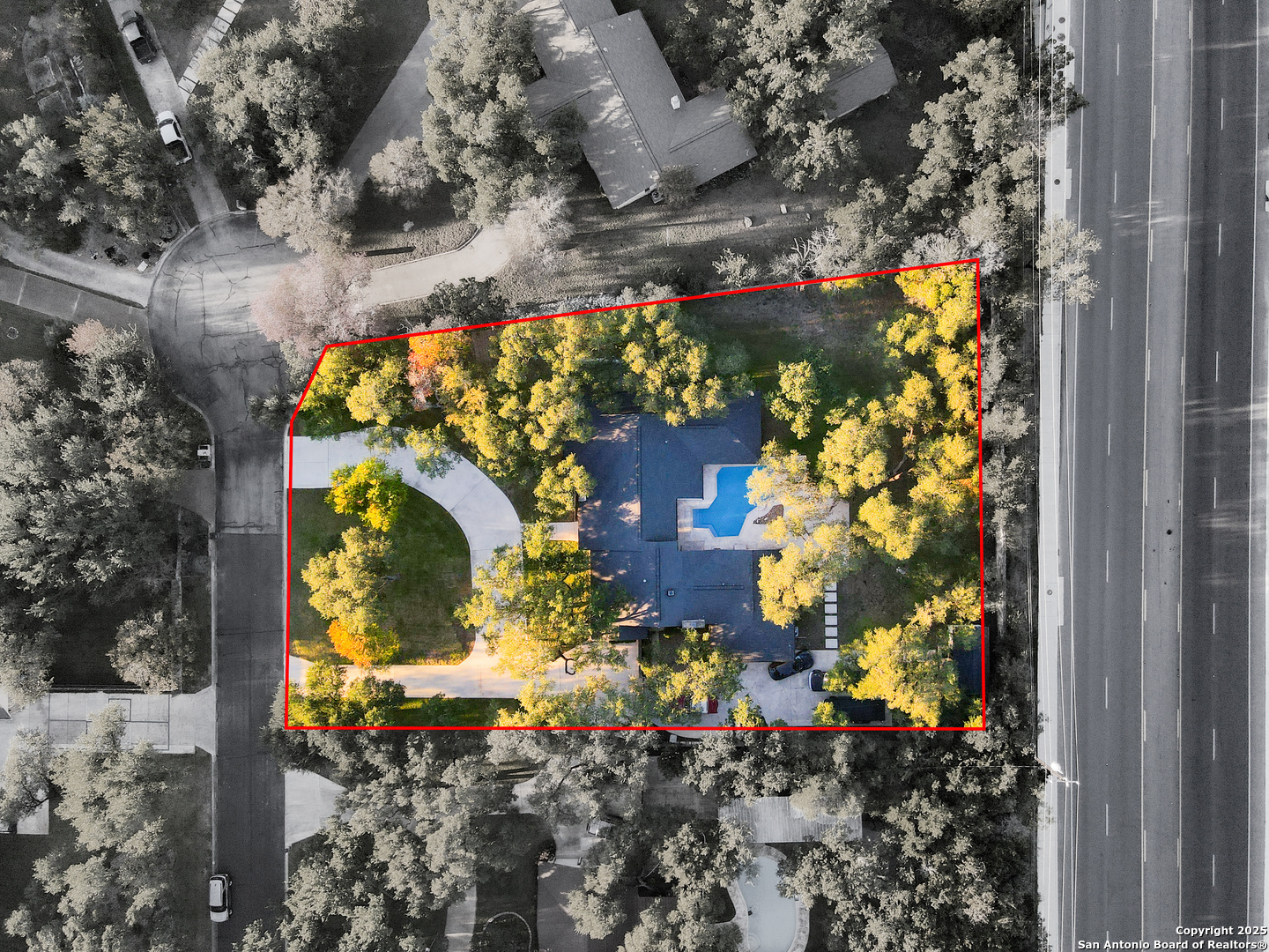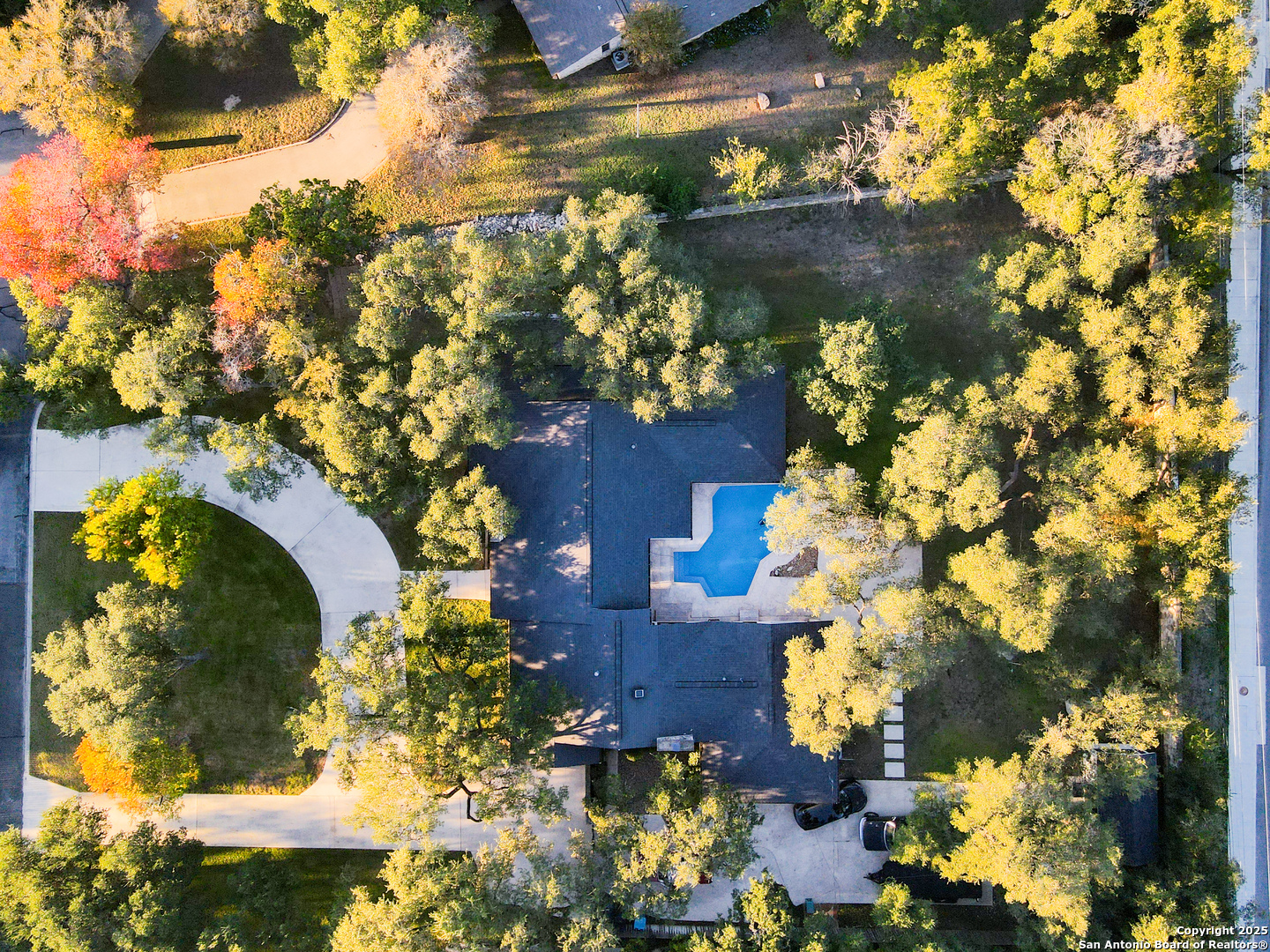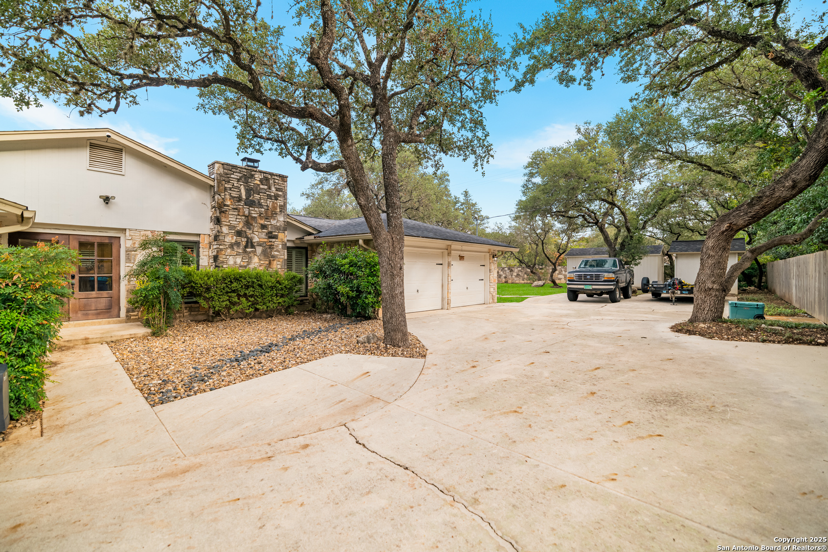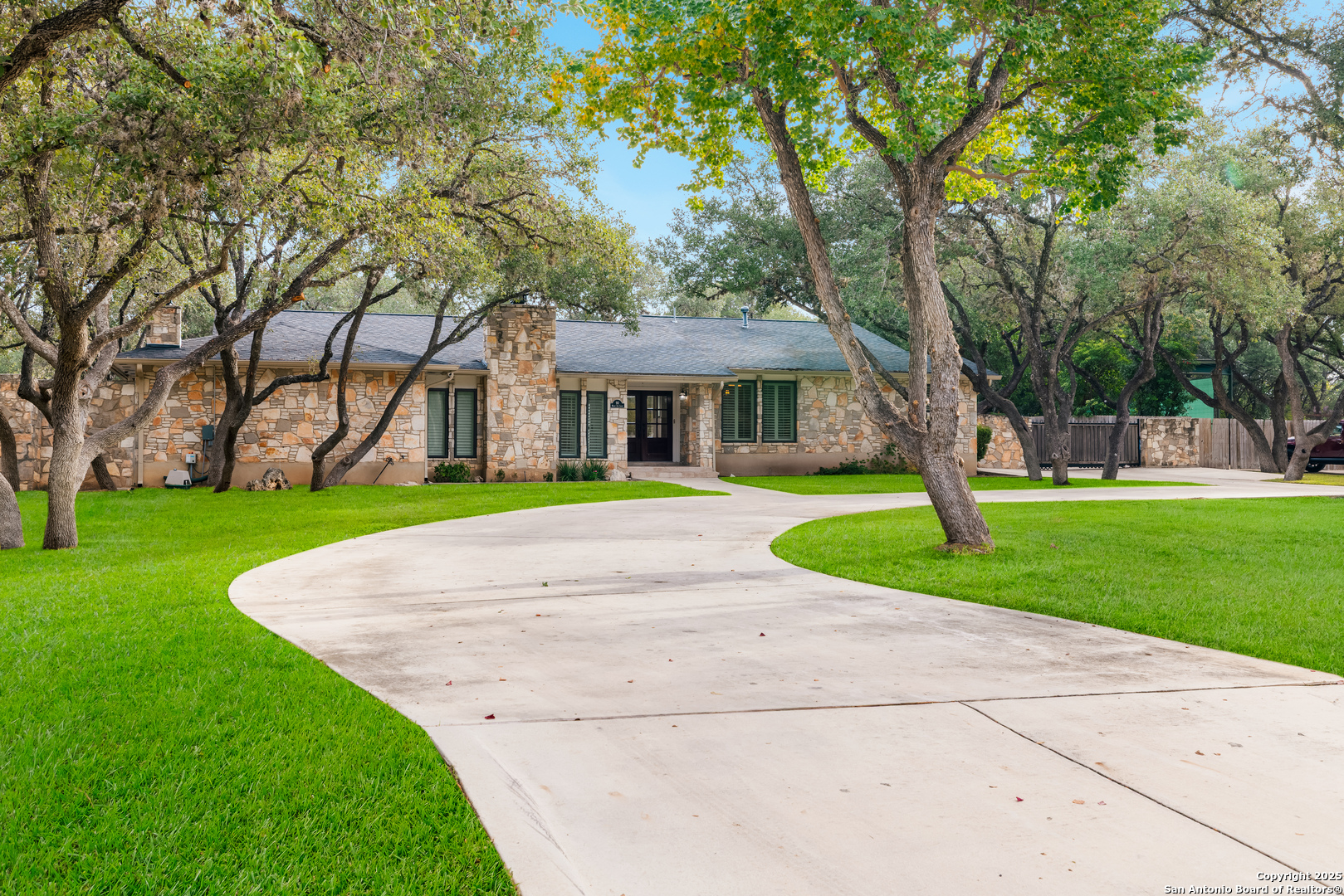 Discover a rare blend of luxury and seclusion in this beautifully appointed 4-bedroom, 3-bath residence offering 3,121 square feet of refined living space. Designed for both comfort and sophistication, the home features two elegant living areas, a dedicated study, and a custom bar that elevates everyday entertaining. The gourmet kitchen is a true showpiece with an oversized designer island, premium cabinetry, and top-tier appliances. The primary suite serves as a private sanctuary with its own fireplace and an intimate patio, perfect for quiet mornings or unwinding in the evening. A second and third fireplace in the main living areas also adds added warmth and architectural charm. Set on 0.75 acres, the property feels secluded while still being conveniently located within the city. The backyard offers a peaceful retreat with a uniquely contoured pool that is subtly reminiscent of the Texas outline, framed by mature trees that enhance privacy and ambiance. Two backyard structures add valuable flexibility, including one fully finished with mini-split HVAC, recessed lighting, and electricity, ideal for a personal studio, office, or high-end hobby space. A graceful U-shaped driveway provides elegant curb presence and easy guest parking, while a separate controlled-access gate allows for additional secure parking. An attached two-car garage and quiet cul-de-sac setting further elevate the sense of exclusivity and comfort this property provides.